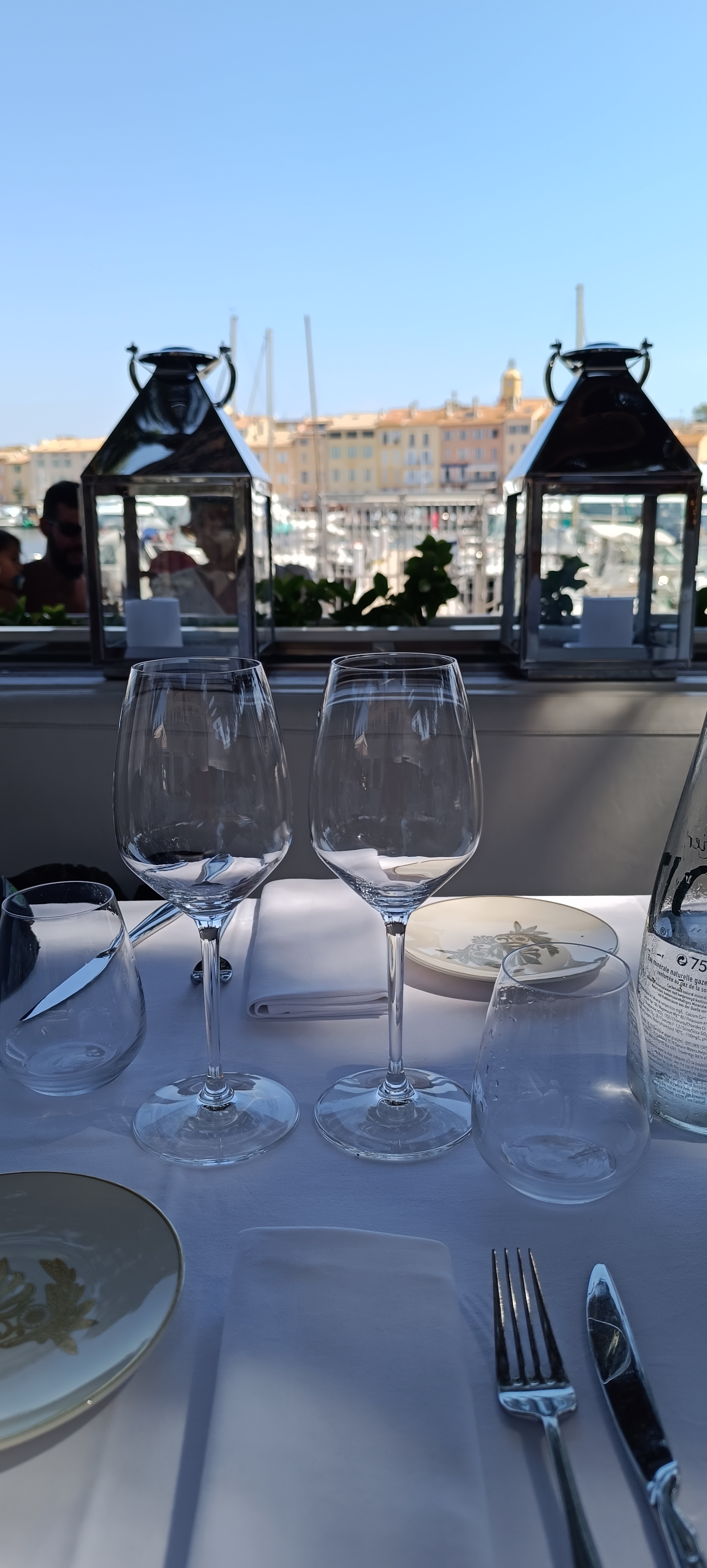 Restaurant au bord du port de ST Tropez. Décoration très classe et féerique. Les tarifs sont élevés mais on peut trouver des plats très bons et abordables (plat du jour). In ne force pas à la consommation. Personnel à l écoute et avenant. Belle adresse
