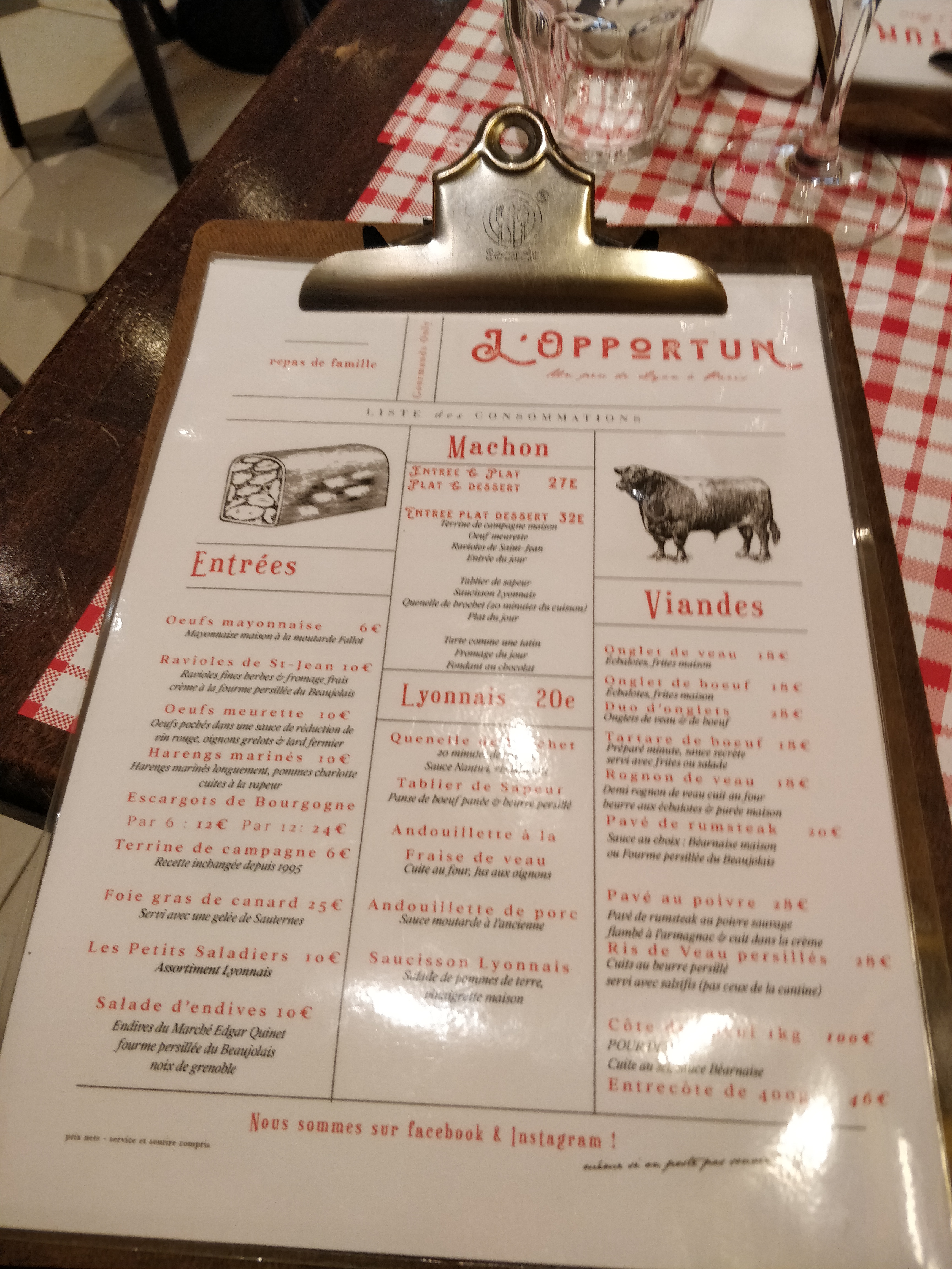Un bouchon lyonnais au cœur de Paris. L'Opportun est un lieu à visiter pour sa cuisine et son service impeccable pas de serviettes en papier dans ce temple gastronomique mais pas que c'est parcours initiatique pour celui qui sais frapper à sa porte.
