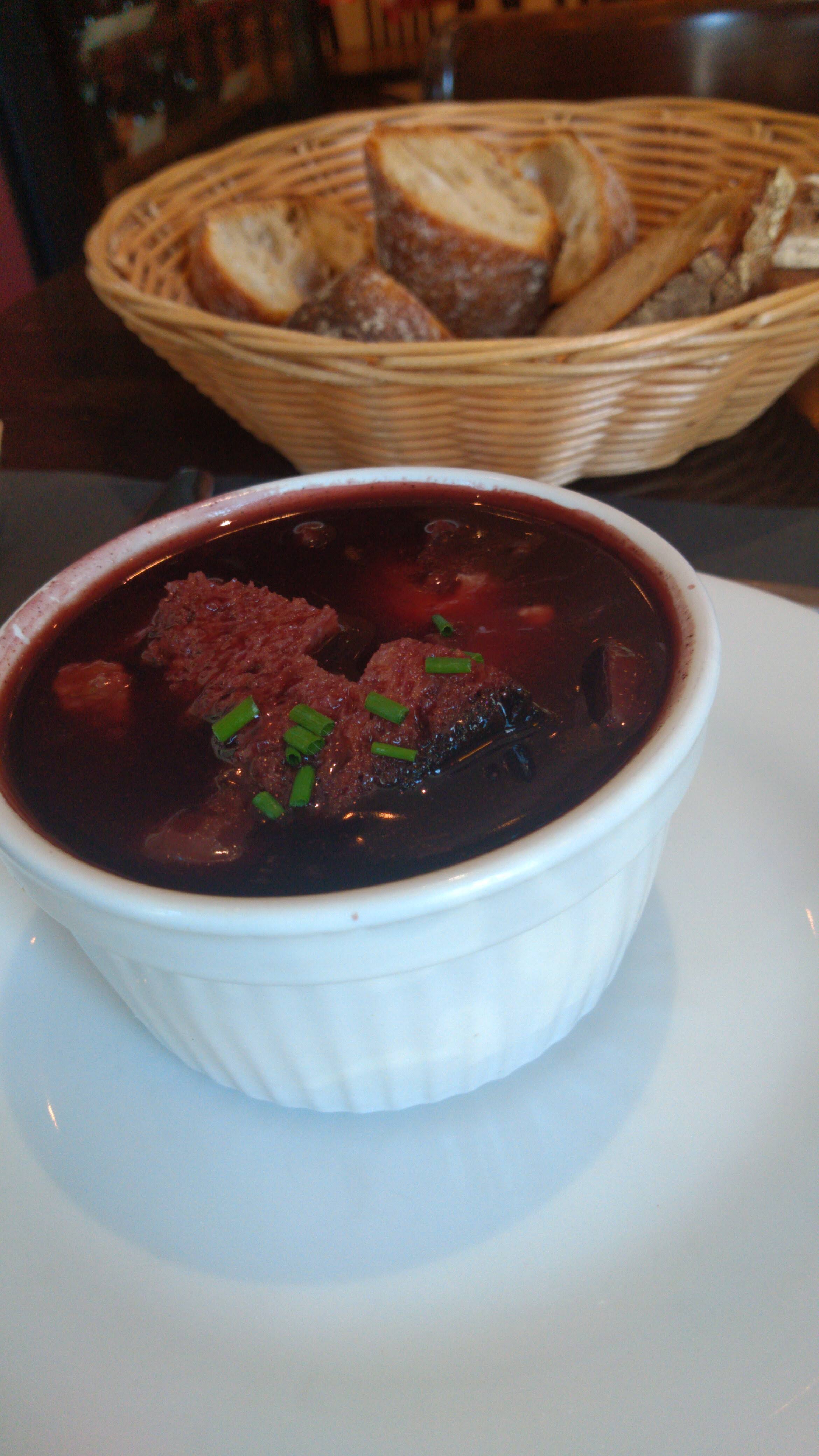 Entrée du marché : genre gaspacho du Monoprix d’en face, purée froide avec l’andouillette, salade quelconque. Inspiration lyonnaise mais déception typiquement parisienne.