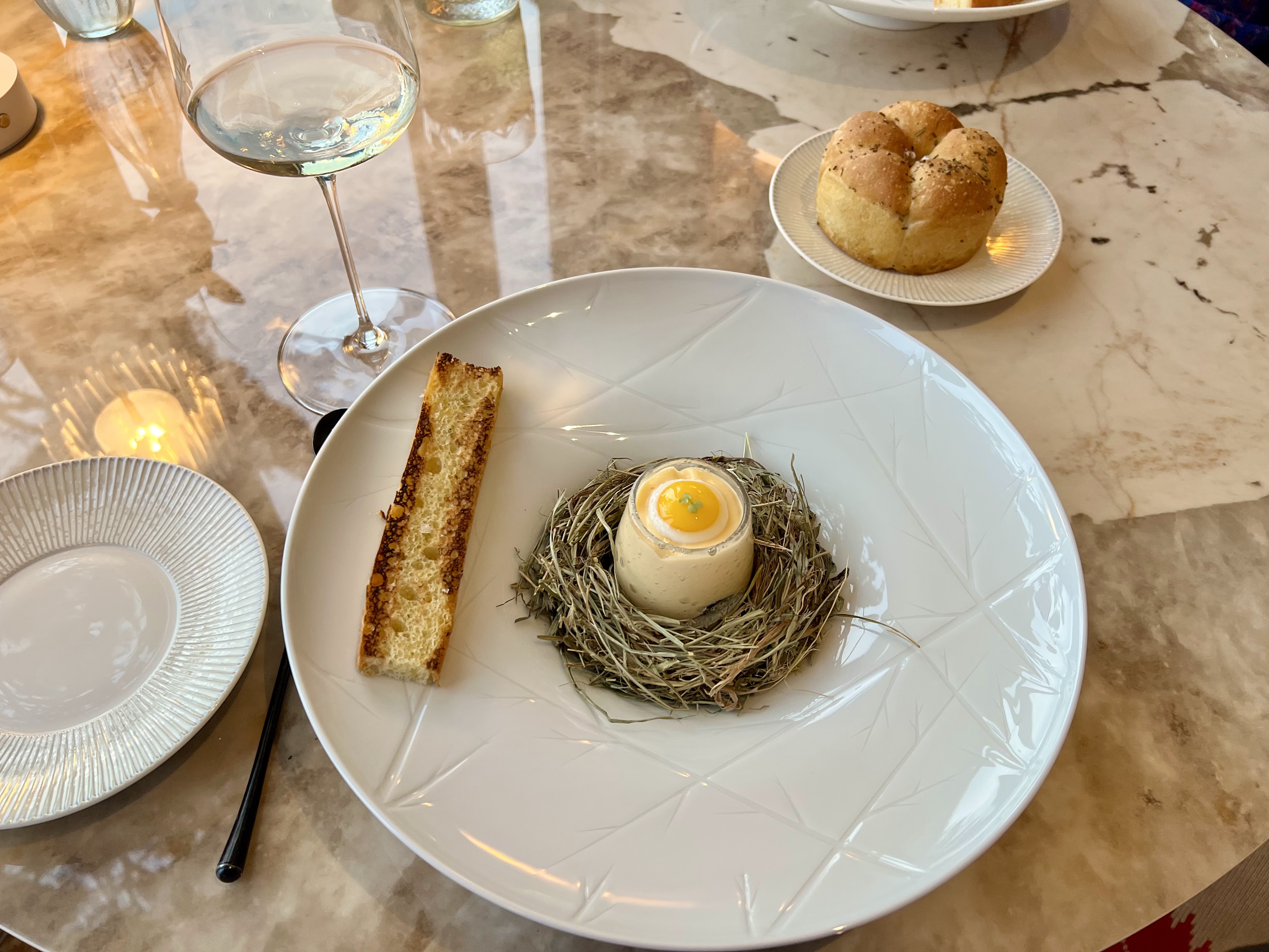 Globalement bonne expérience mais entrées sorties du frigo trop froides ce qui a totalement gâché la dégustation. Plat principal poisson avec émulsion café à l'accord goût plutôt difficile, bon desserts à l'assemblage magnifique ainsi que excellent œuf (spécialité). Service légèrement décevant (du demander de l'eau plusieurs fois personnel s'accoudent à l'ilot central en nous tournant le dos ) car nous étions placée dans l'arrière salle.