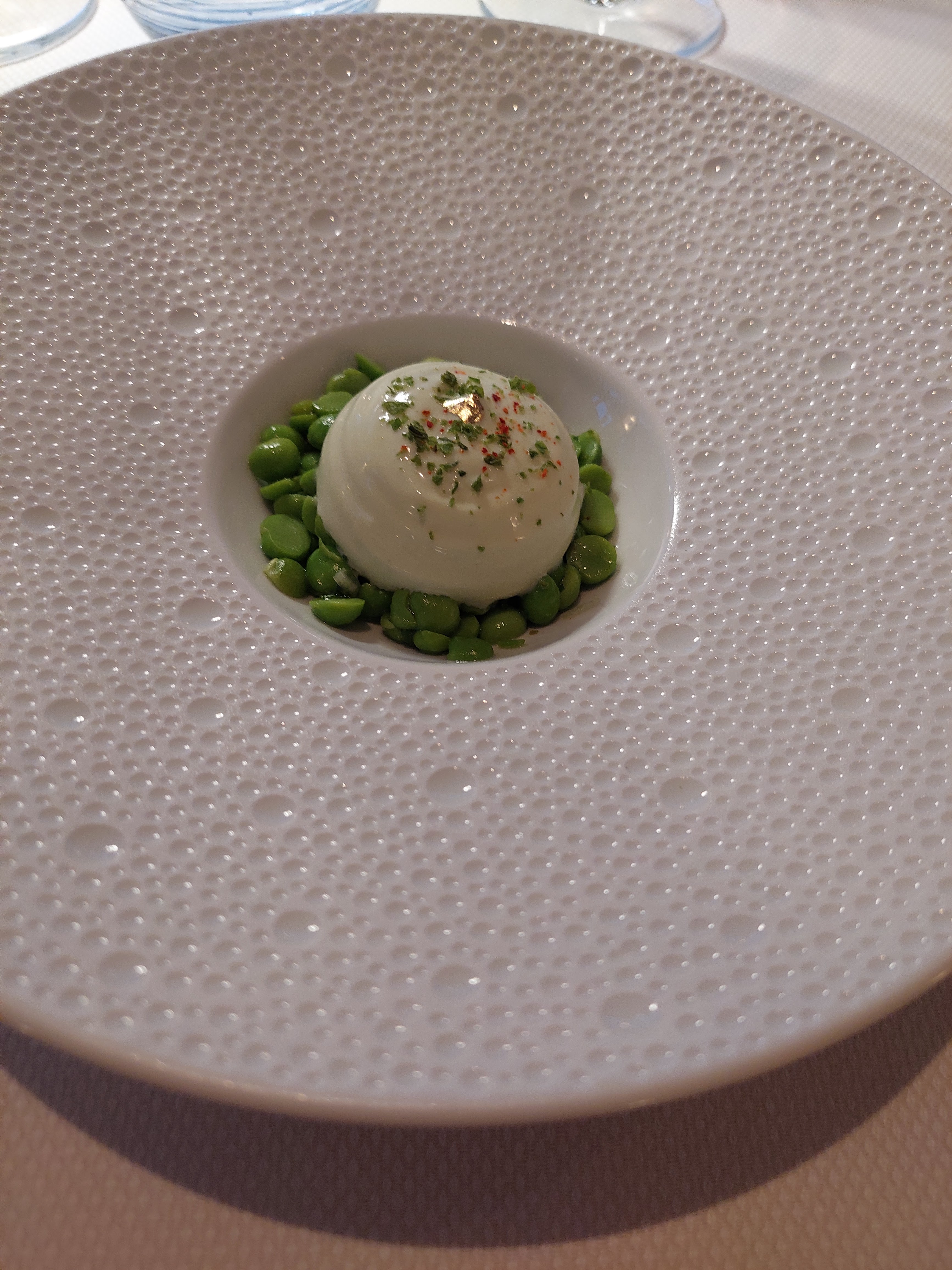 Accueil très guindé, pas de sourire, pas de voiturier , pas d’ambiance Ouverture de la terrasse très compliquée Rapport qualité / prix/quantité par plat irrationnel Seule compétence reconnue , celle du sommelier 🍾 Sur notre addition vérifiée un peu trop tard on nous a facturé deux jus de tomates pour un consommé pour plus de deux cent euros par personne avec un bon vin mais à 80€ seulement et qui n’a pas tué l’addition… C’était un anniversaire un peu triste Je ne conseille bien sûr pas ce restaurant étoilé🤔🤔🤔