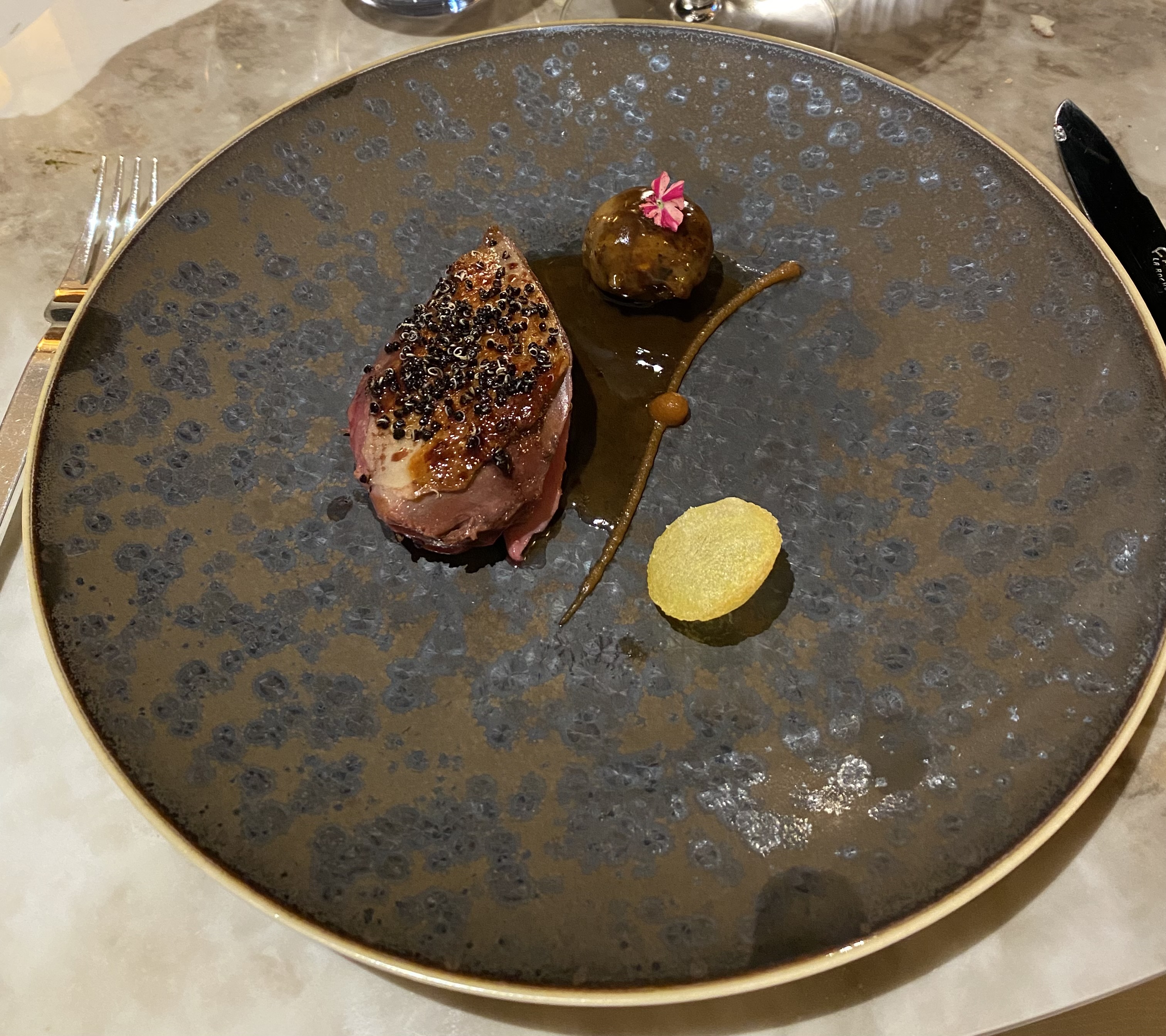 C’était une première pour ma femme qui mangeait dans un restaurant étoilé. Elle s’est régalée, de plats en plats de surprise en surprise et apprécié les conseils avisés de Benoît le sommelier tout était en accord.