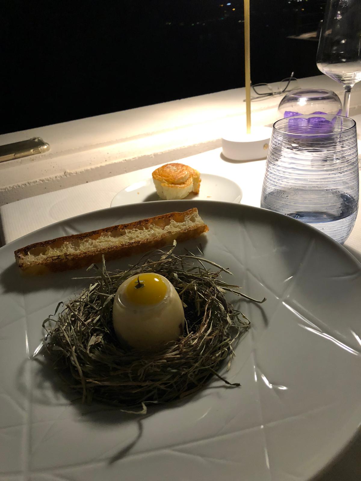 Nourriture savoureuse mais pas aussi innovante que nous l'espérions. Le sommelier était un peu pressé et désordonné en versant le vin. La vue depuis la terrasse est incroyable !