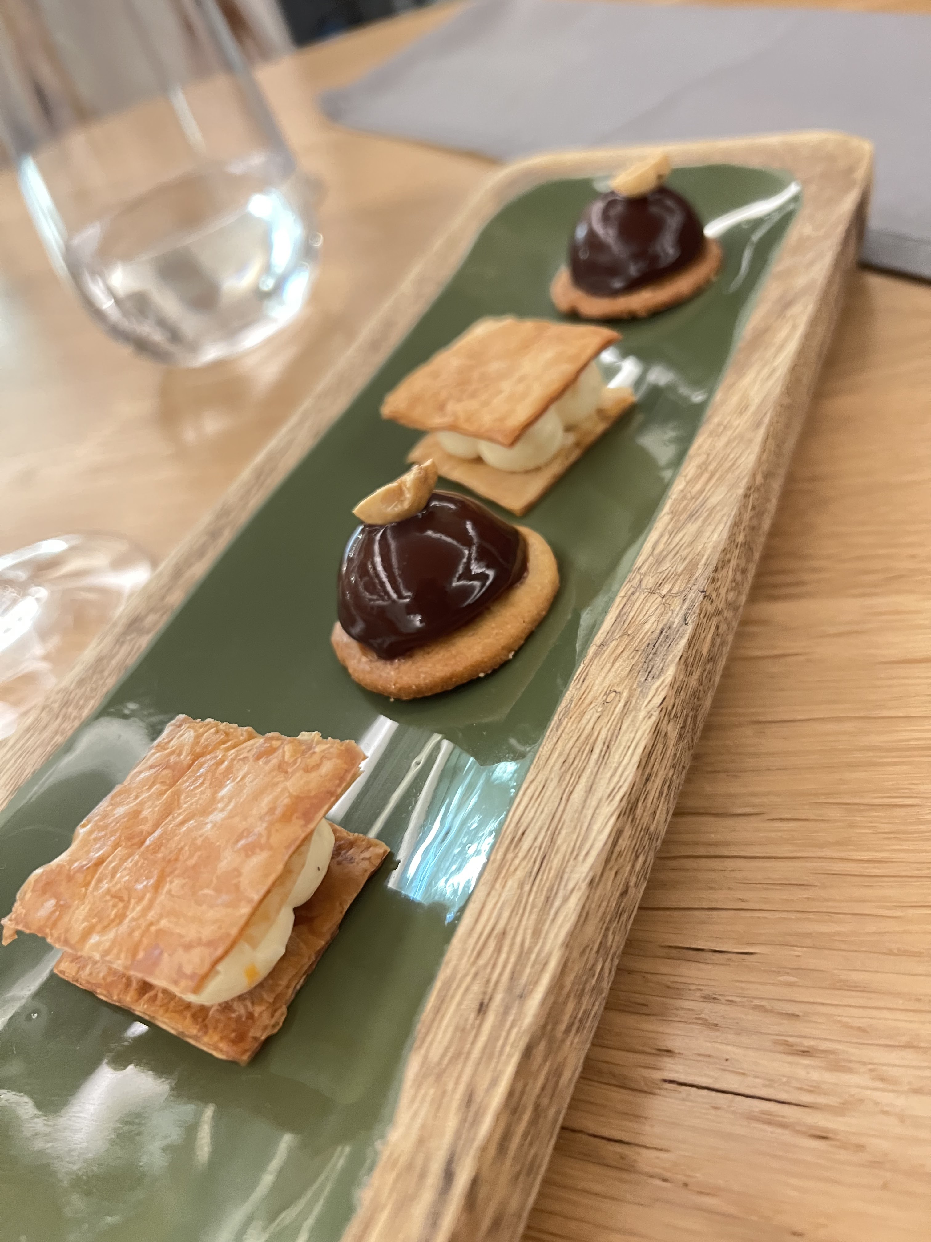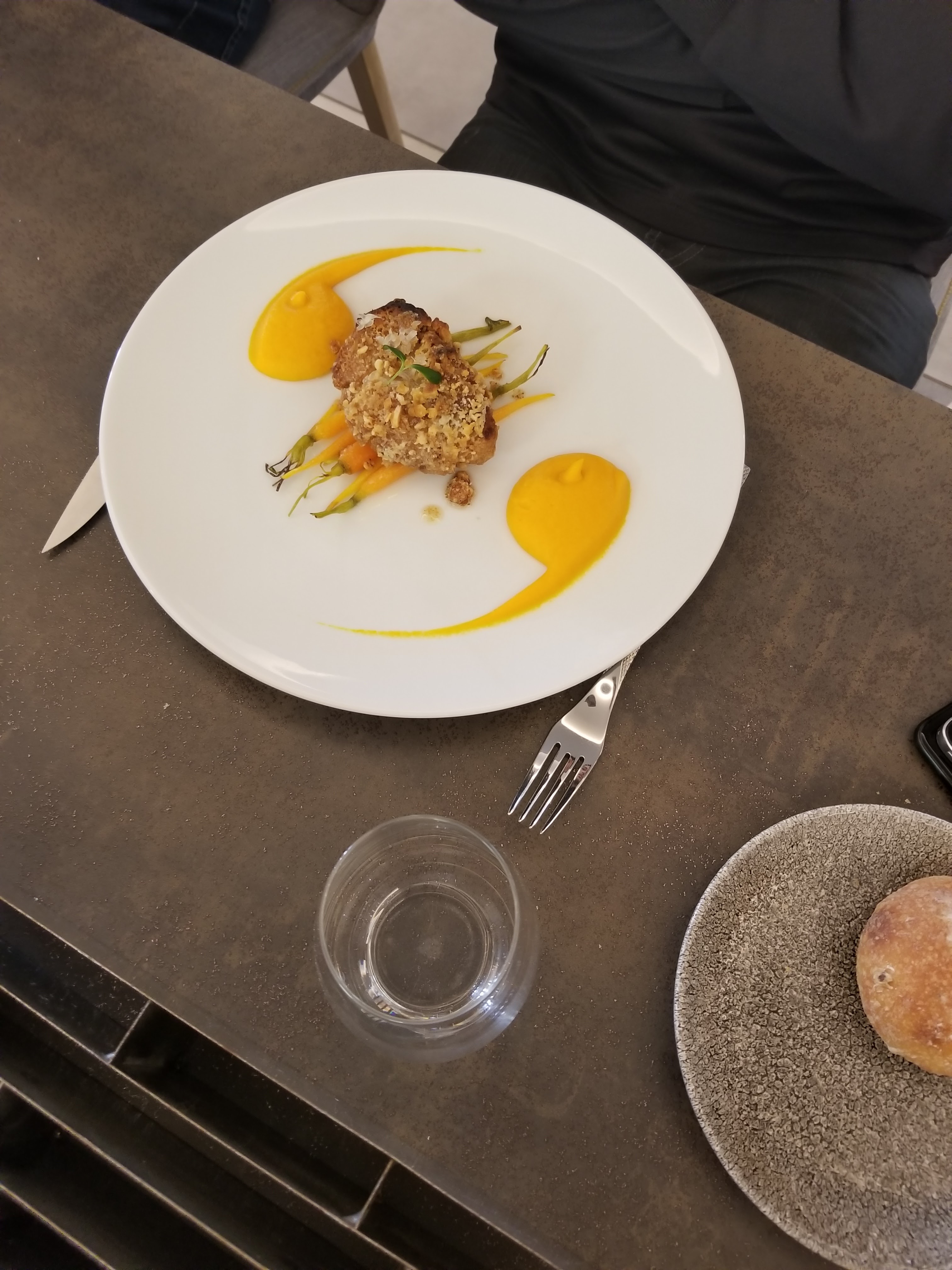 Tout est parfait! Du l'accueil jusqu'au départ ! Les plats sont tous divins, les vins etaient exeptionnels et le servives aux petits soins! Merci à la cheffe d'etre passé nous voir.! C'était agreable! Une mention special sur le plat de veau au champignon avec la sauce foie gras et le dessert sublime à la cacahuette ! Le sans gluten a été respecté à la lettre et c'etait parfait de manger autant que mon maris. Soirée mémorable 🙂