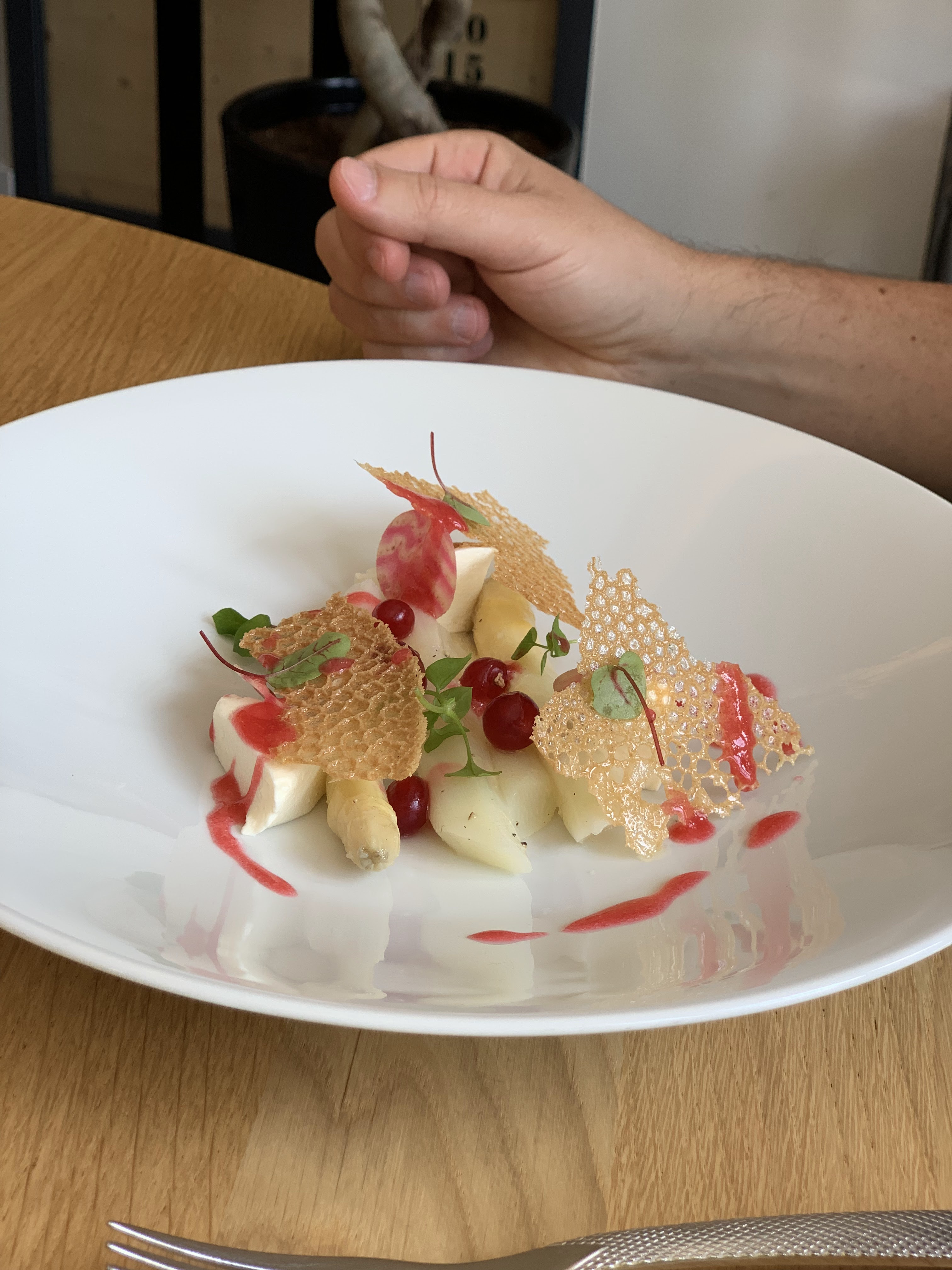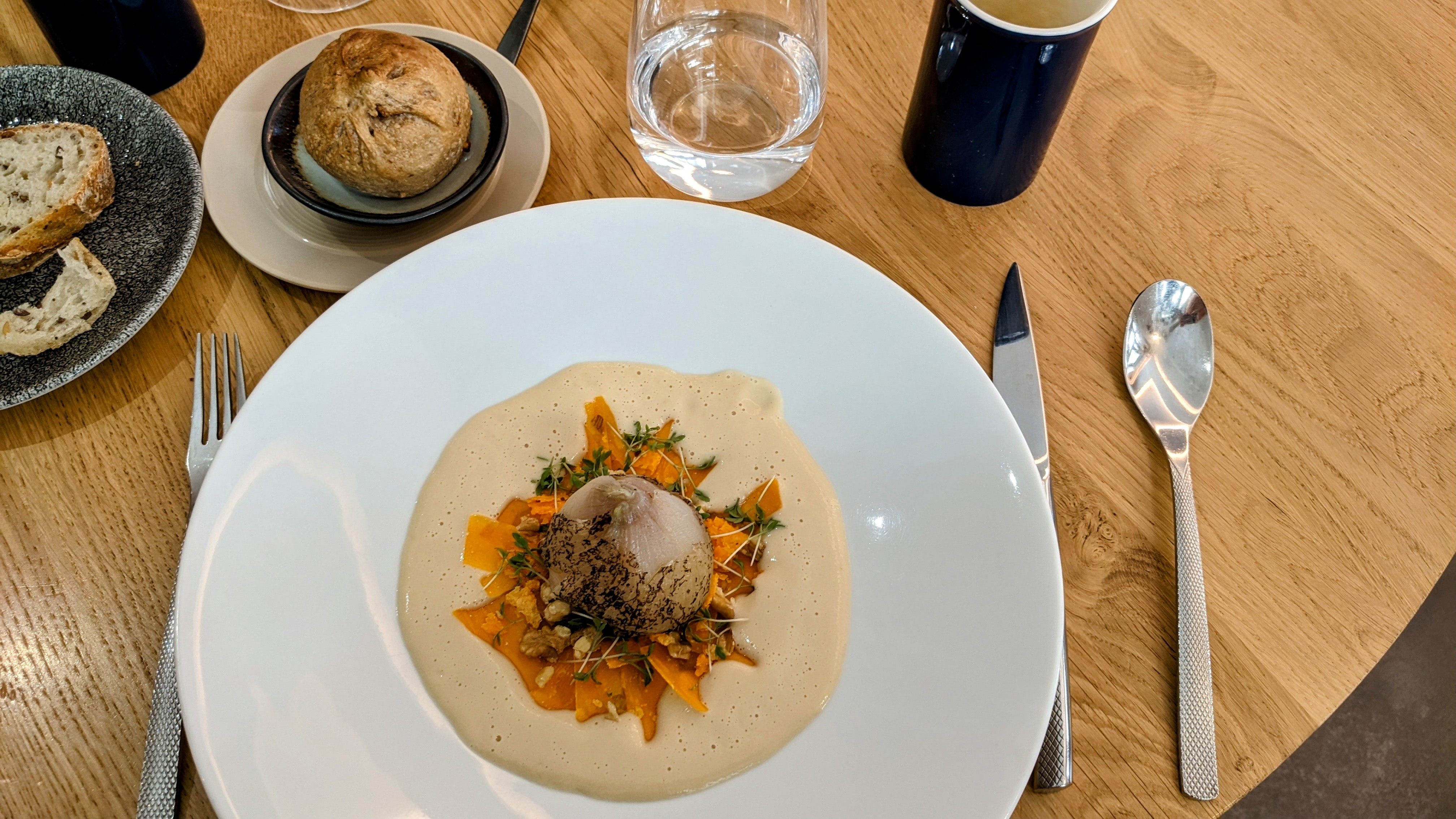 Le service est impeccablement orchestré mais tendu, manquant de convivialité, mis à part le propriétaire. Nous étions à une grande table ronde à 2 donc assis l’un à côté de l’autre, pas super romantique! La salle est très belle . Nous avons choisi le menu découverte. Pas déçus car tous les plats sont très intéressants et fins mais pas éblouis. Nous y reviendrons peut être en été pour la terrasse qui est très belle et découvrir un peu plus l’univers de la cheffe. Compliqué pour se garer.