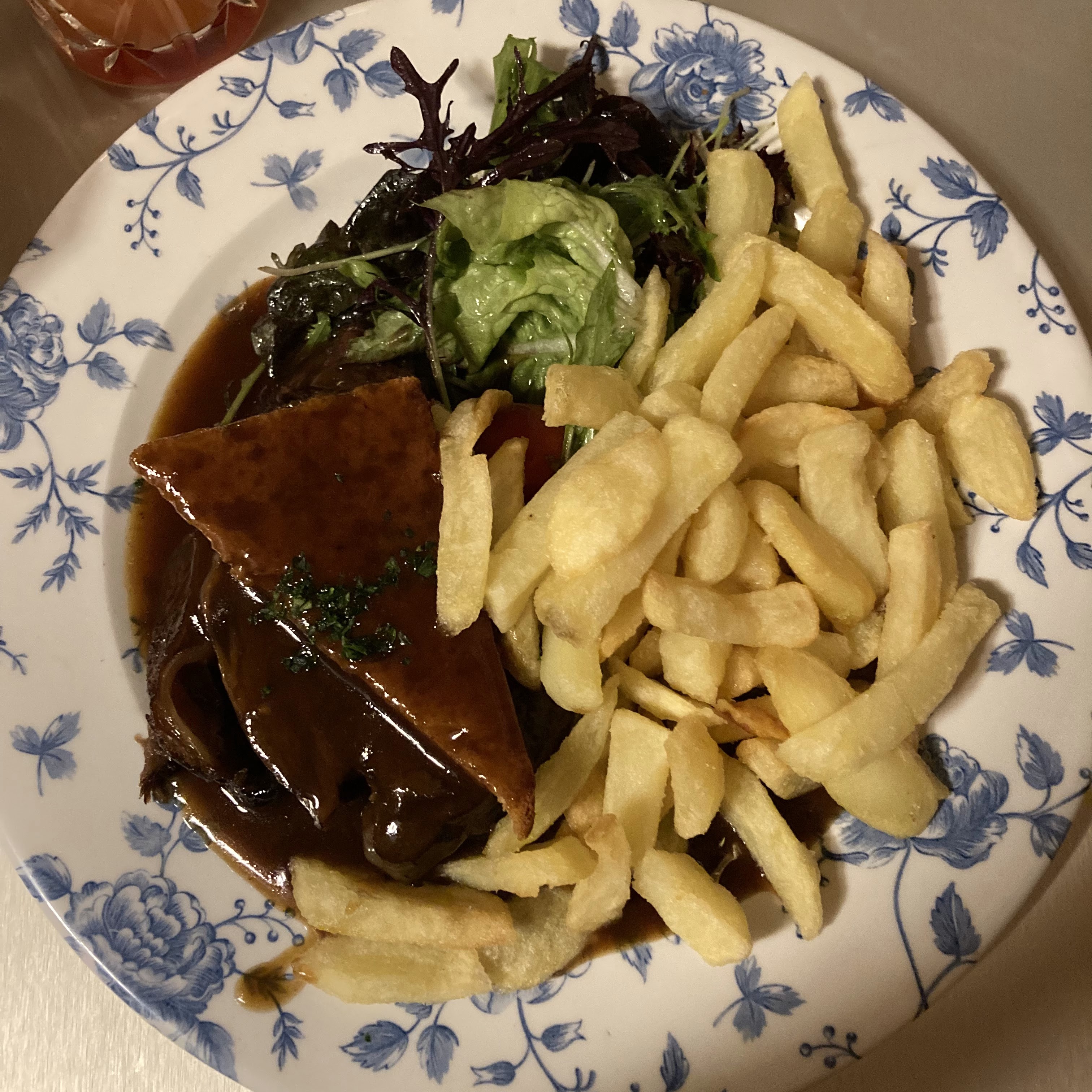 Accueil moyennement agréable ; j’ai commandé un américain qui devait être servi avec des frites. Sans rien me dire on me l’a servi avec des pommes de terre. Je fais la remarque, on me dit qu’il n’y a plus de frites. 5 minutes après je vois que d’autres tables ont des frites. Je fais la remarque on me dit qu’ils en ont retrouvés… De plus le choix du vin au verre est limité