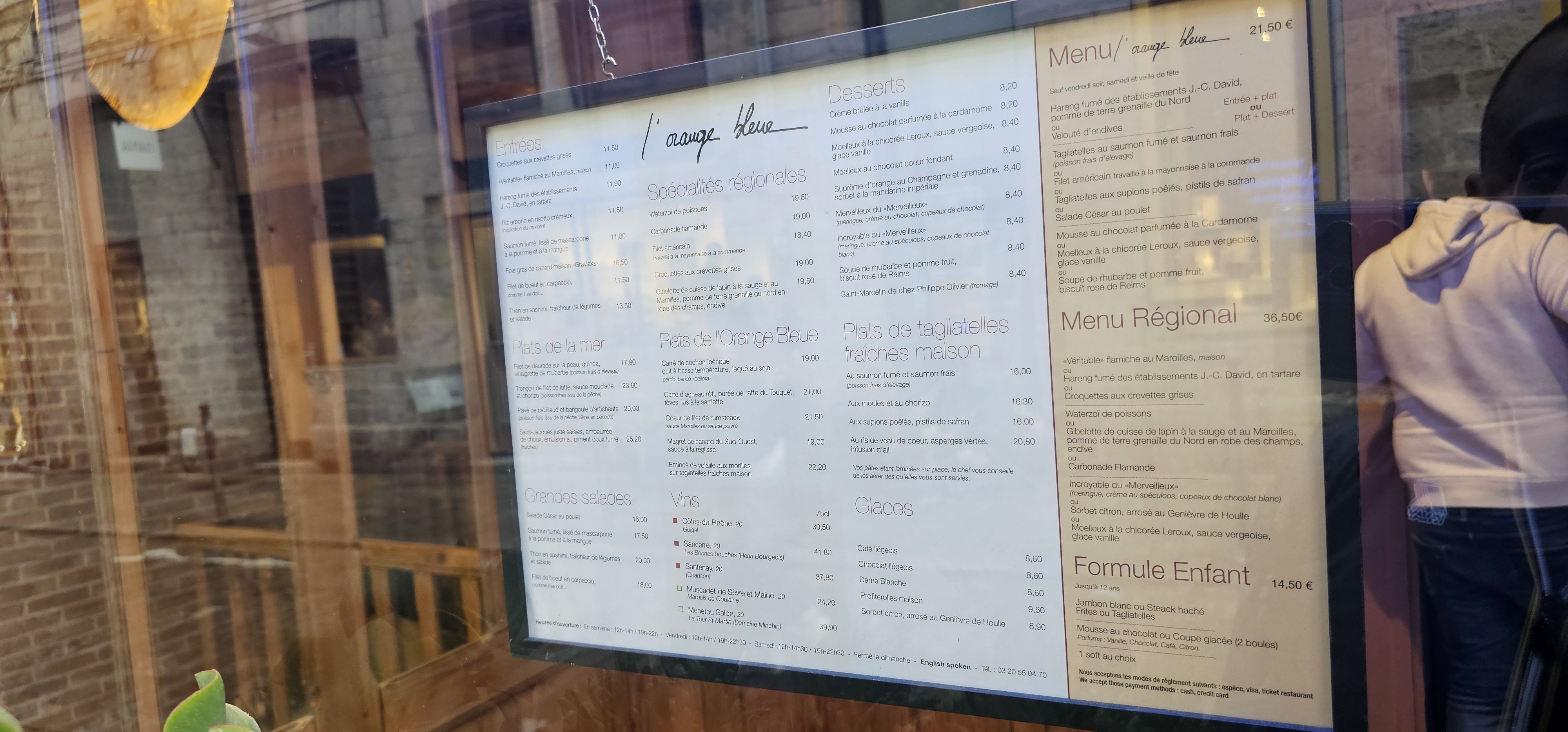 De passage à Lille pour le week-end (venant des Vosges) j ai goûté au menu régional..ça va de soi .. cuisine délicieuse..dessert au top ..un accueil très chaleureux..des serveurs +++ une formidable ambiance dont je me souviendrai.