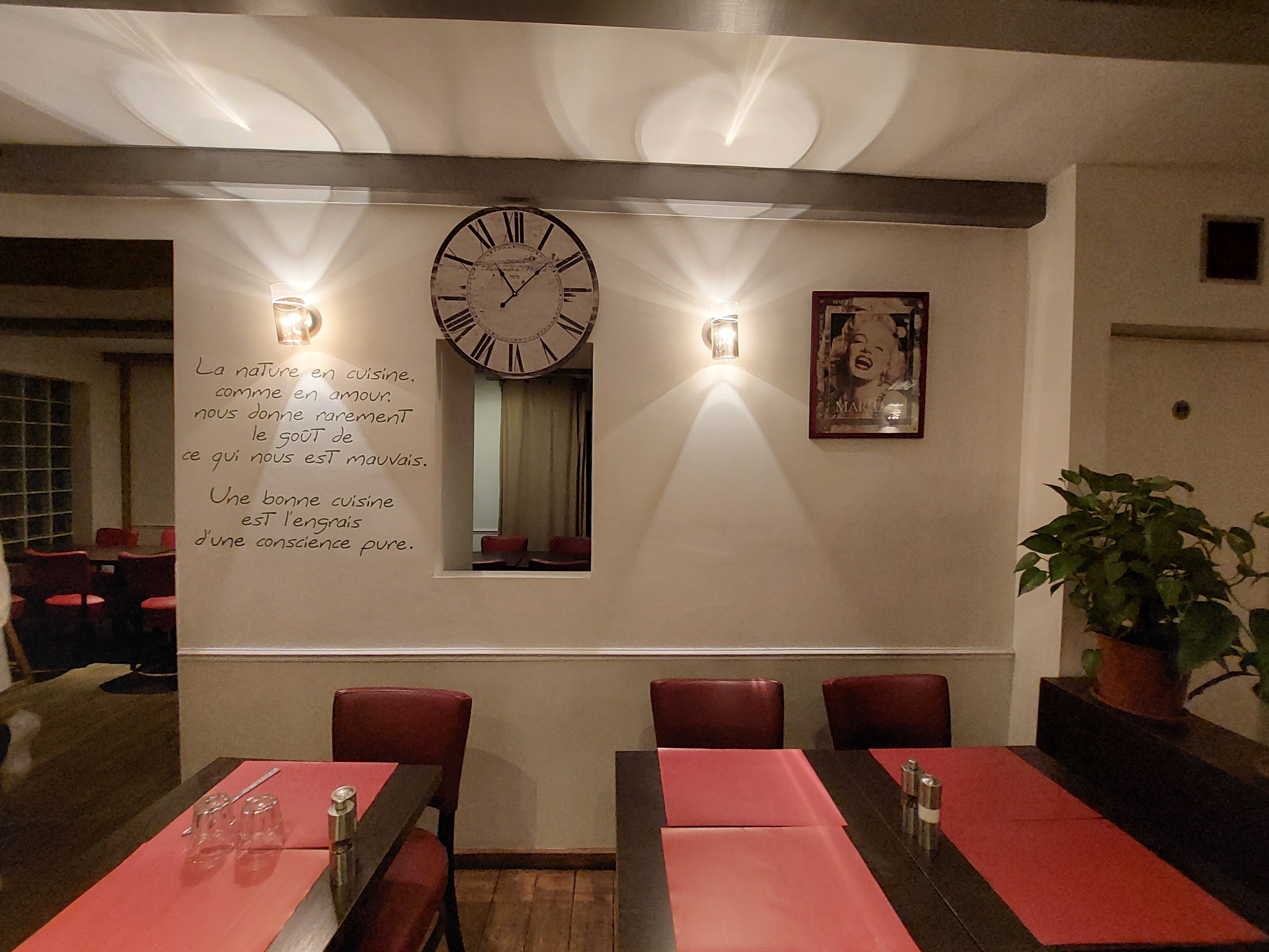 Un très bon restaurant moderne où l'on se sent immédiatement chez soi. Le chef de maison se sert lui-même et, en plus d'un menu très attractif, montre également une planche avec les plats du jour. J'ai séjourné ici deux fois au cours d'un séjour de quatre jours car j'ai été immédiatement impressionné par la qualité. Quiconque aime manger un peu plus sera également impressionné par la quantité. Un plat restera longtemps dans ma mémoire car il n'y avait absolument rien à redire, la préparation était tellement délicieuse : il y avait d'abord un Croquant de homard, un plat semblable à un rouleau de printemps dans une sauce crémeuse de crustacés, puis un Dos de cabillaud sur des légumes croquants du marché puis un superbe Soufflé à l'orange au Grand Marnier. Tout le meilleur de l'art du maître de cuisine, comme c'est souvent le cas, sans aucune étoile.