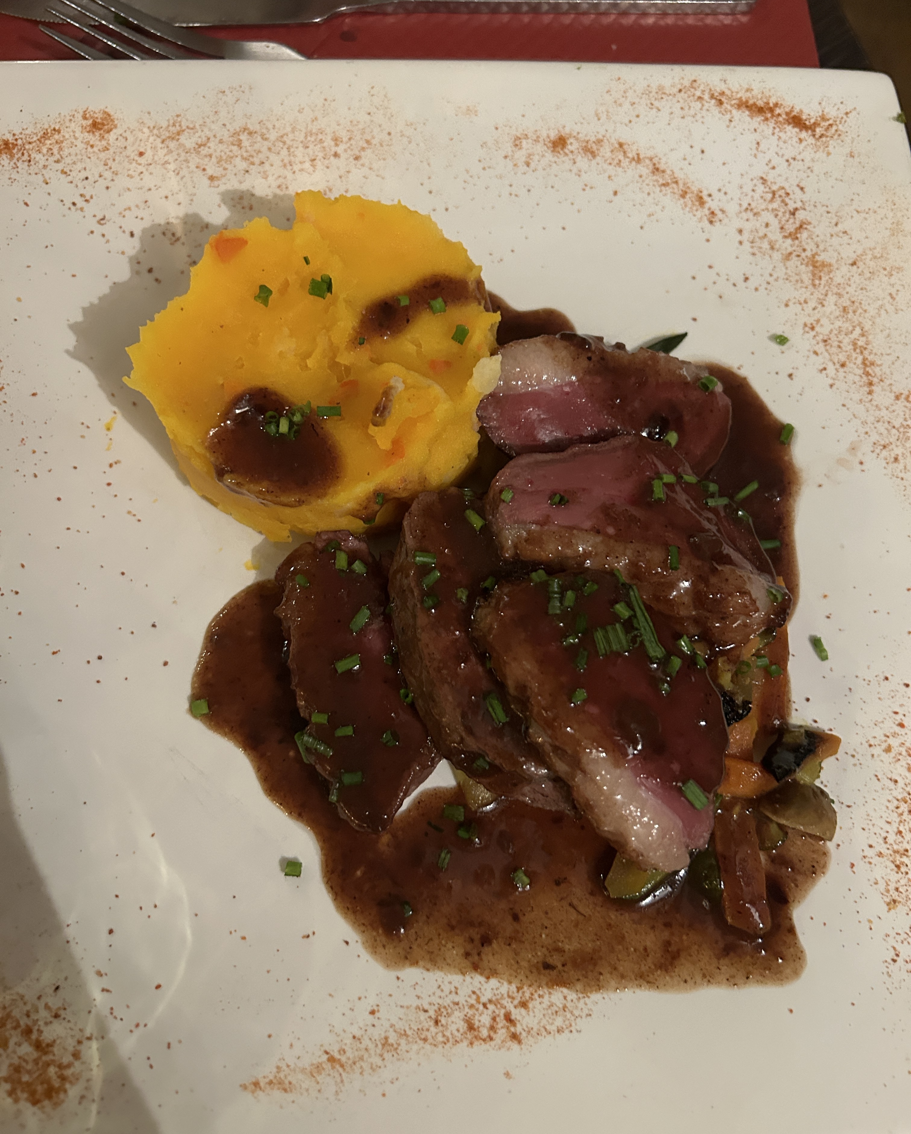Ce restaurant était une merveilleuse trouvaille. Nous avons dîné un dimanche soir et avions l'endroit pour nous seuls. Le service est certes un peu lent, mais c'est parce qu'il est géré par une famille et qu'ils mettent vraiment soin et amour dans votre repas. Les propriétaires étaient incroyablement sympathiques et reconnaissants pour notre venue et pour notre entreprise. La nourriture était absolument délicieuse, très chaude, belle présentation et dans l'ensemble, une super expérience. Je recommande fortement de soutenir ce restaurant! Nous avons eu l'agneau, le poisson et le canard. Je les recommande vivement tous.
