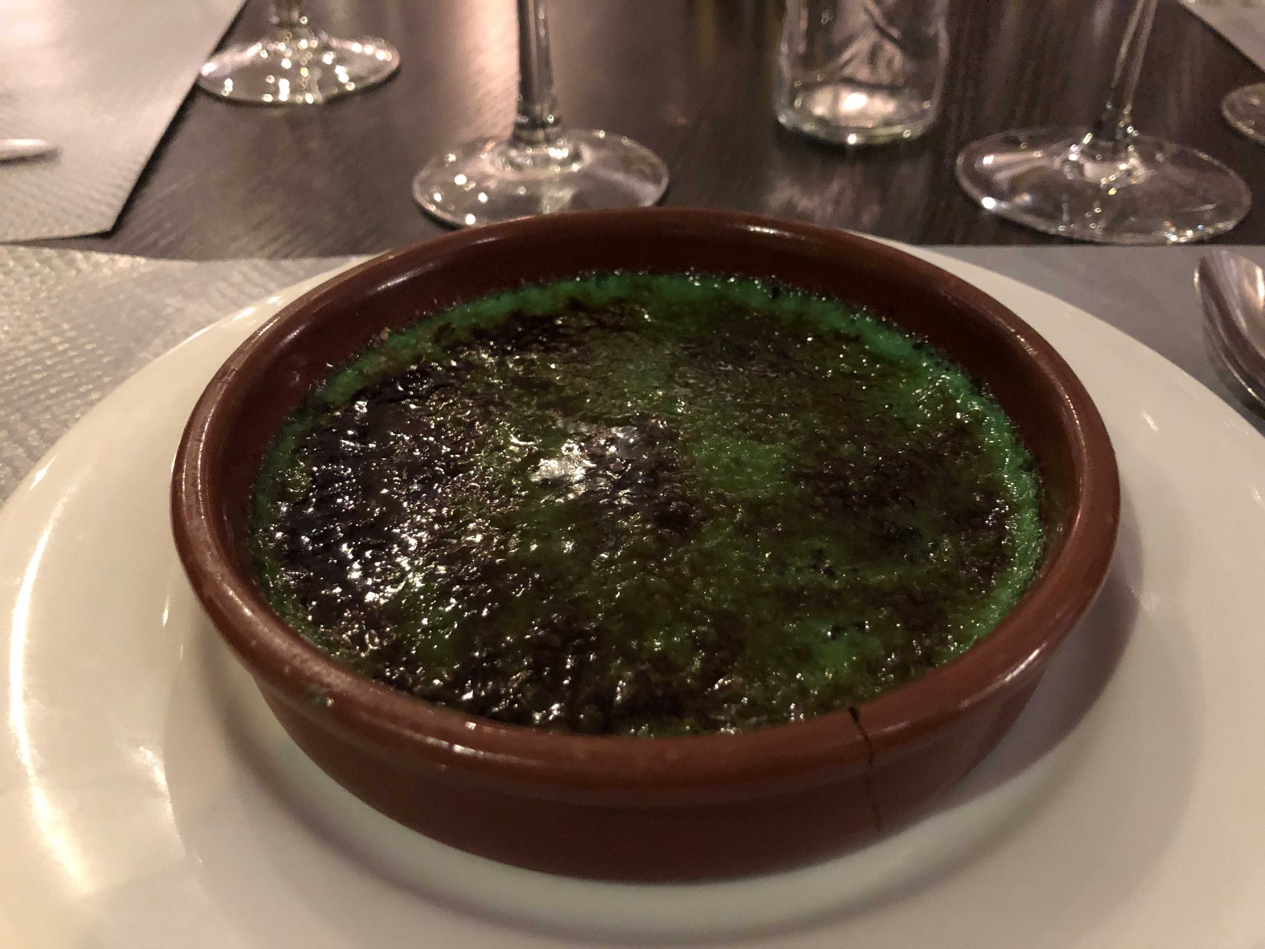 Je ne voulais pas quitter Paris sans avoir d'abord goûté une crème brûlée alors je suis allée dans ce restaurant tout près de mon hôtel. Il s'est avéré que c'était une crème à la pistache ! C'était très délicieux bien qu'un peu froid ! Avec sa couche croustillante et ses morceaux de pistaches ! J'aime Paris!