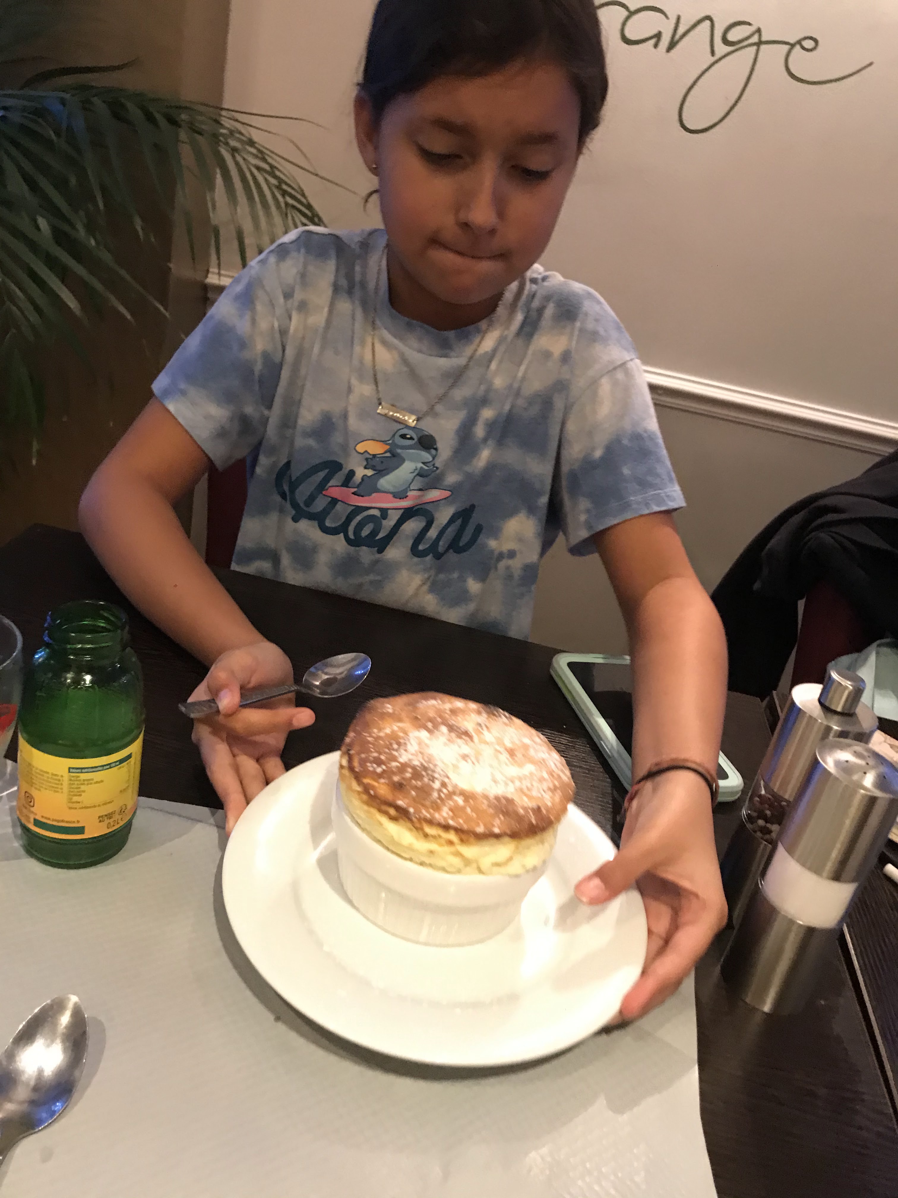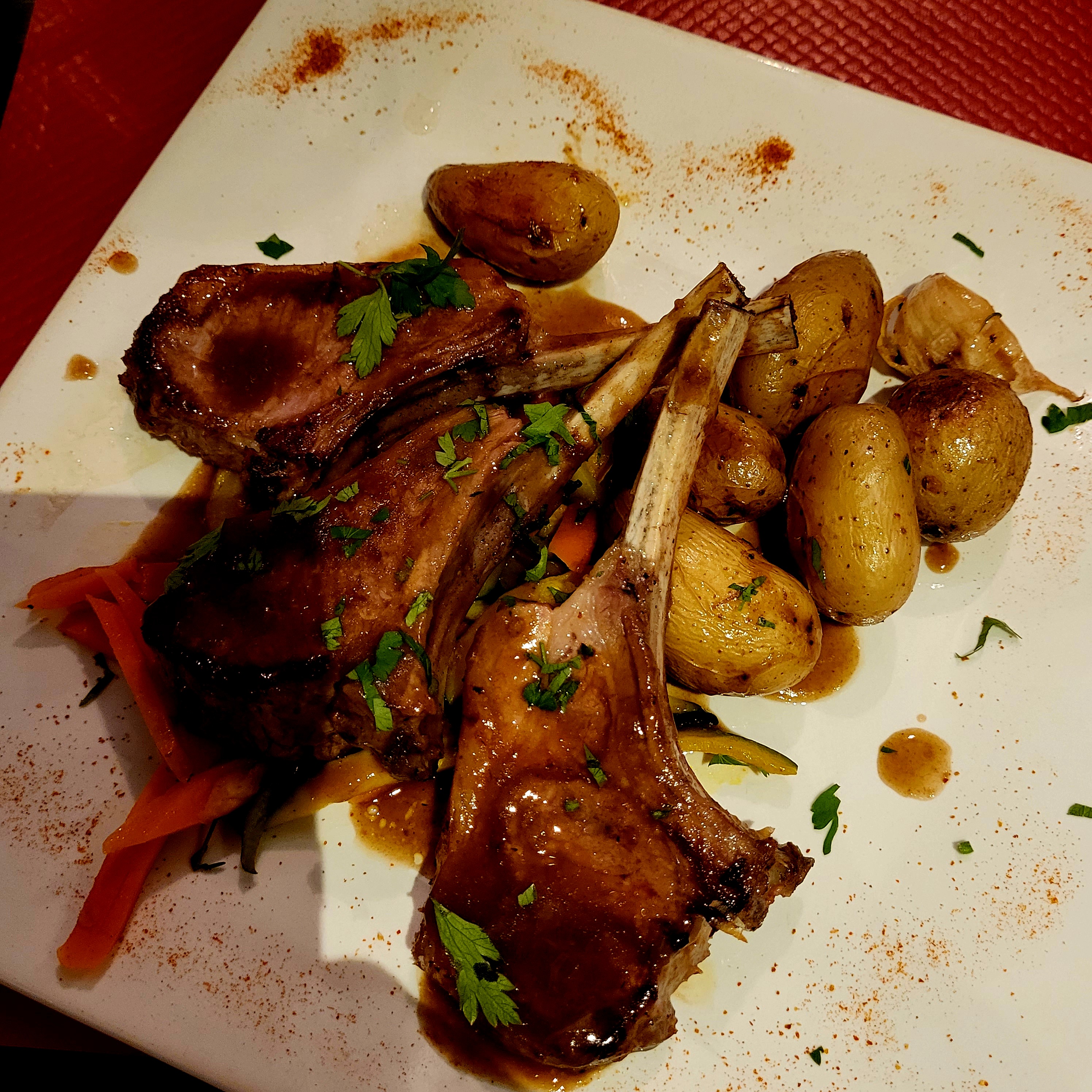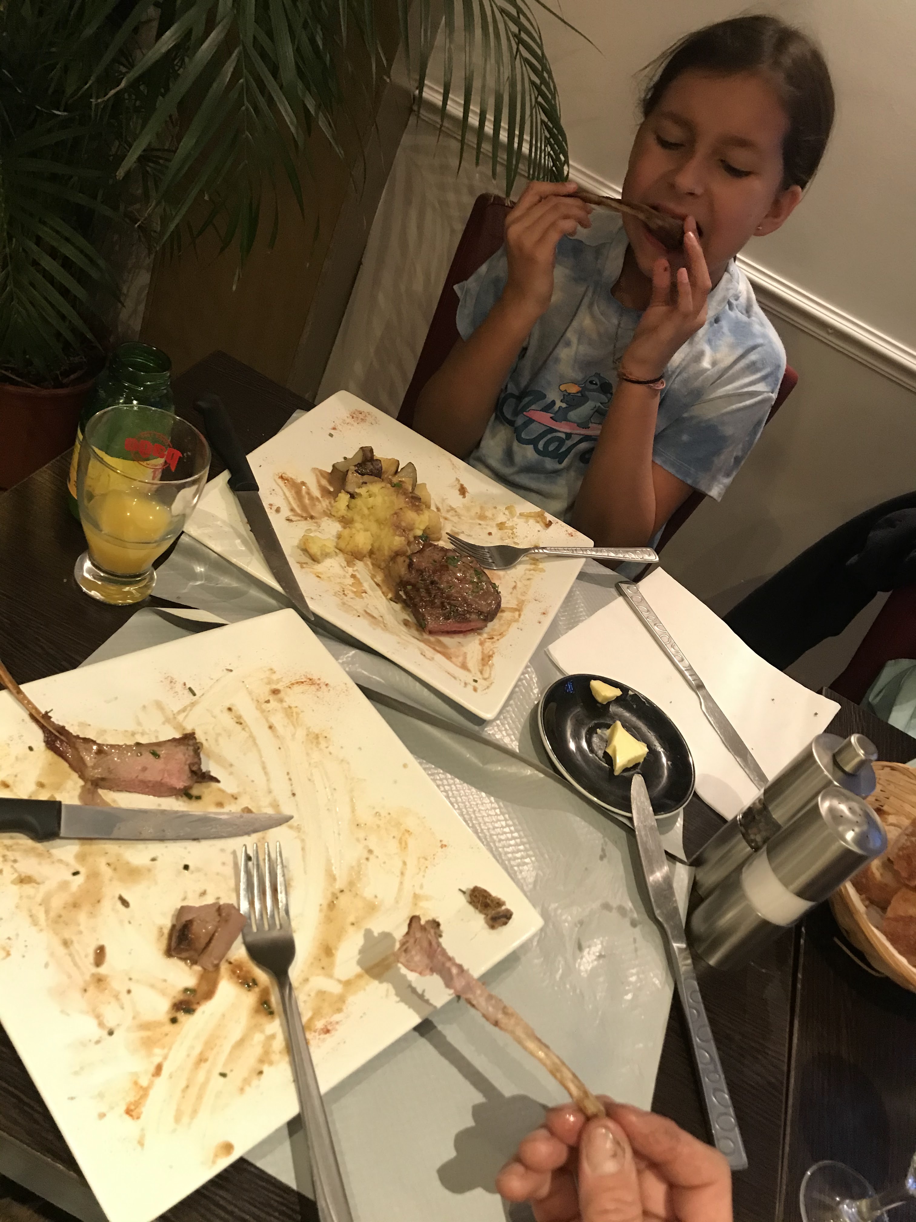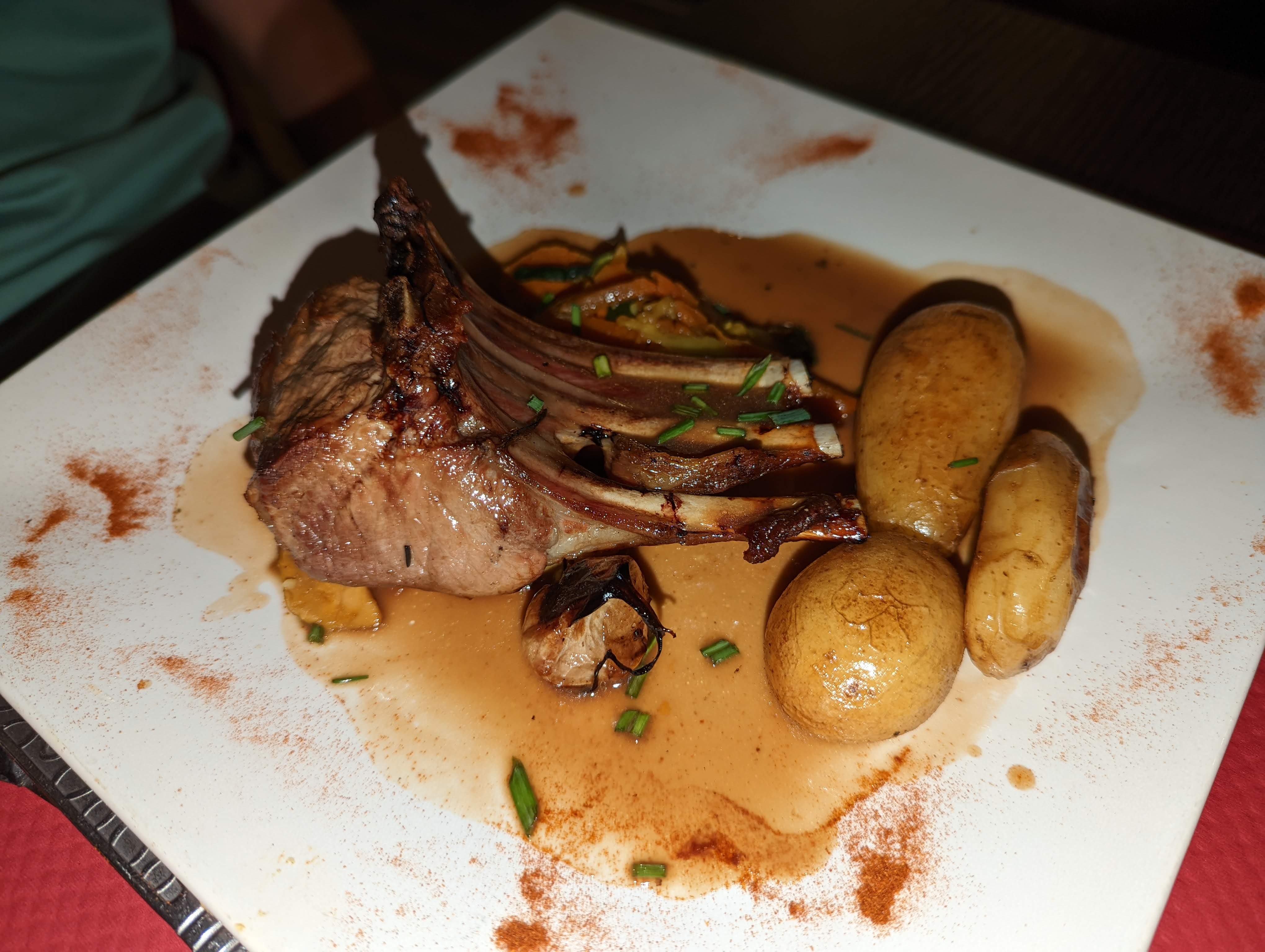 Ma fille de 10 ans a adoré ce repas, elle a pris mon agneau jusqu'à l'os, elle m'a volé mon champagne, elle a mangé tout le beurre « français » de l'assiette, elle a complètement dévoré mon accompagnement de « galette de pomme de terre » (je ne pense pas que ce soit ça). c'était des pommes de terre rissolées, je pensais que c'était une galette de pommes de terre aux légumes... mais je ne suis qu'un jardinier)... c'était notre premier repas français dans la rue en 4 jours que nous avons tous les deux adoré. Merci.