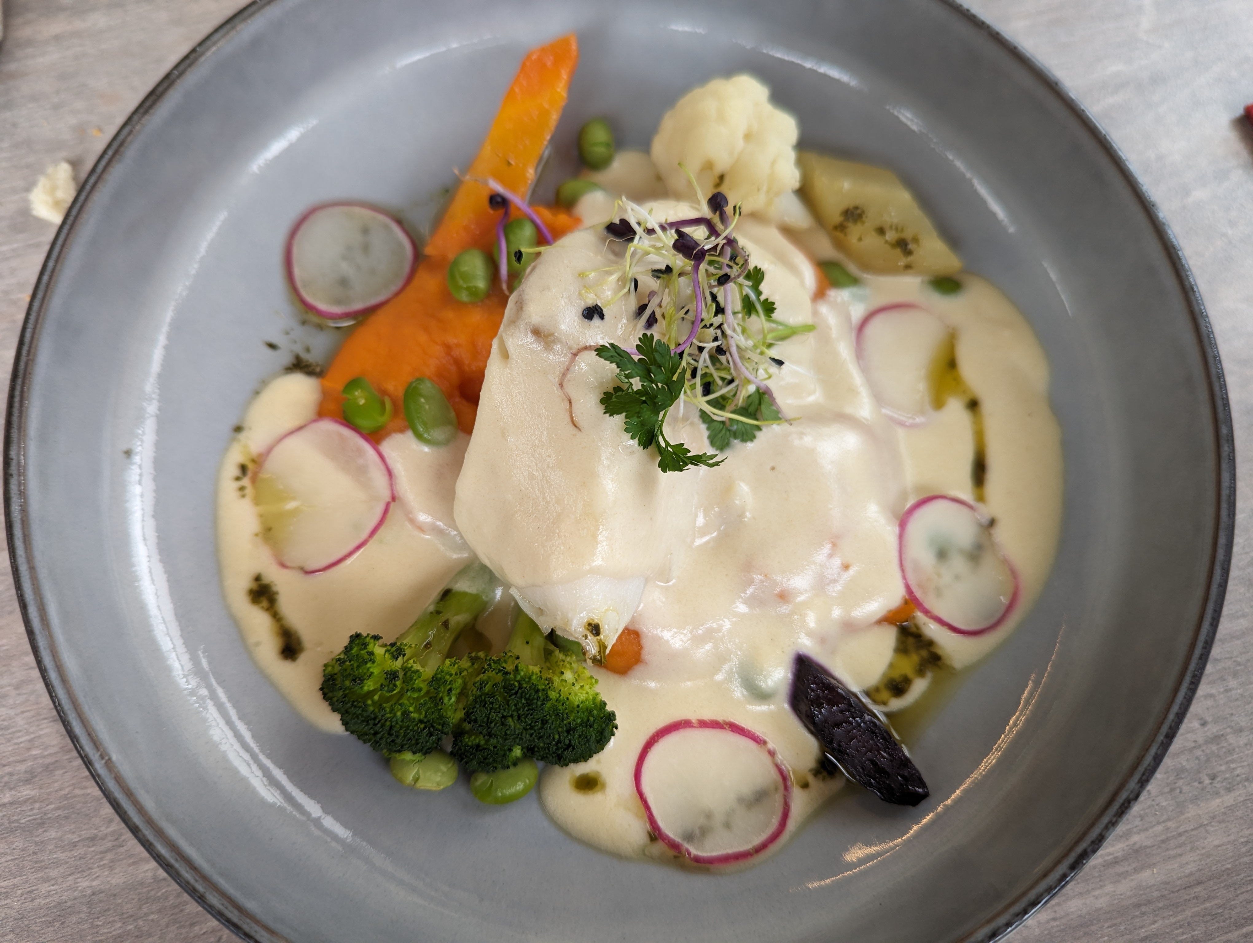 Très bonne découverte, j’ai pris un filet de bar à la carte et un cremet d’Anjou (a leur façon) , tout était parfait, le personnel au top malgré le monde. Je recommande