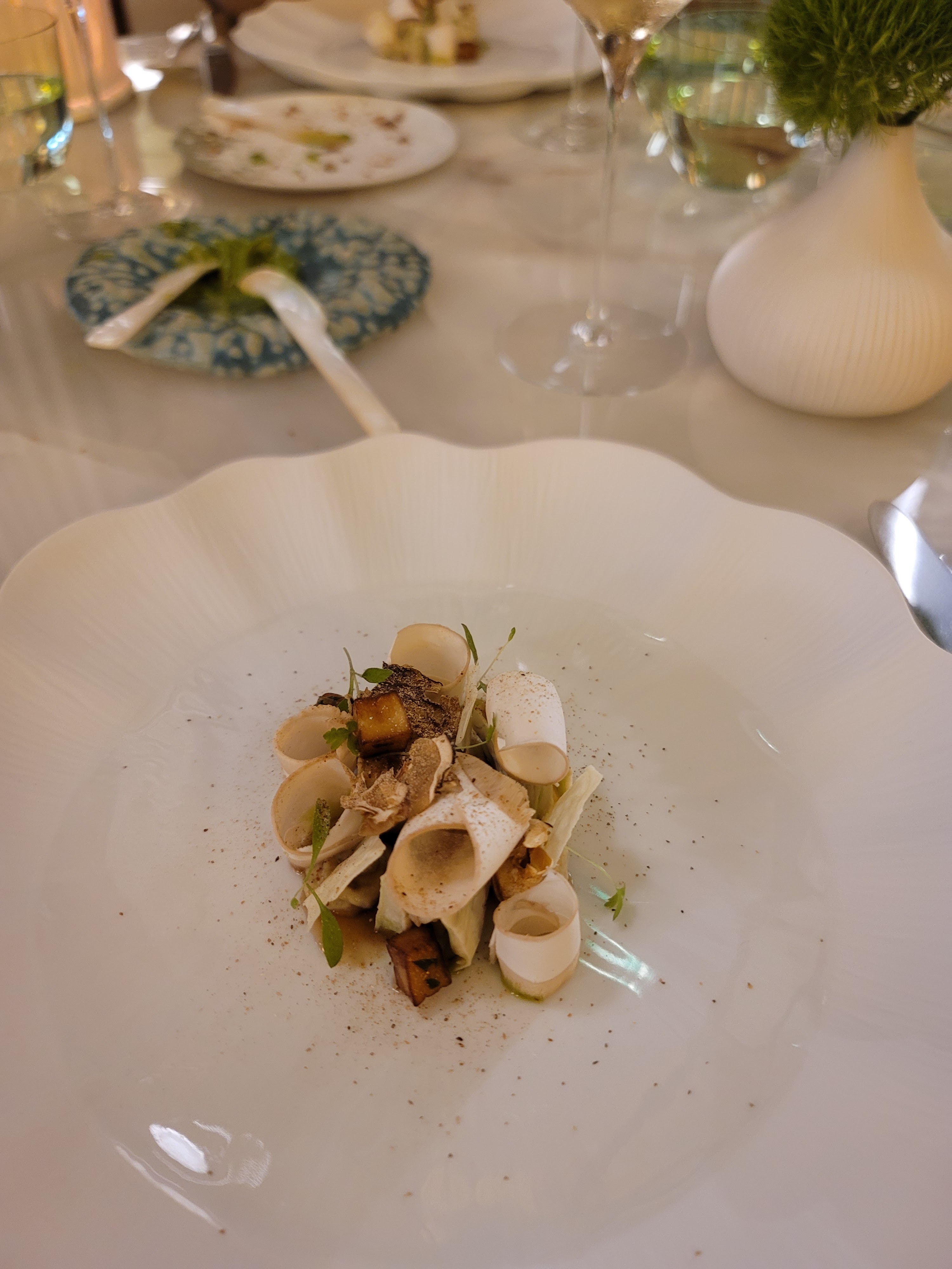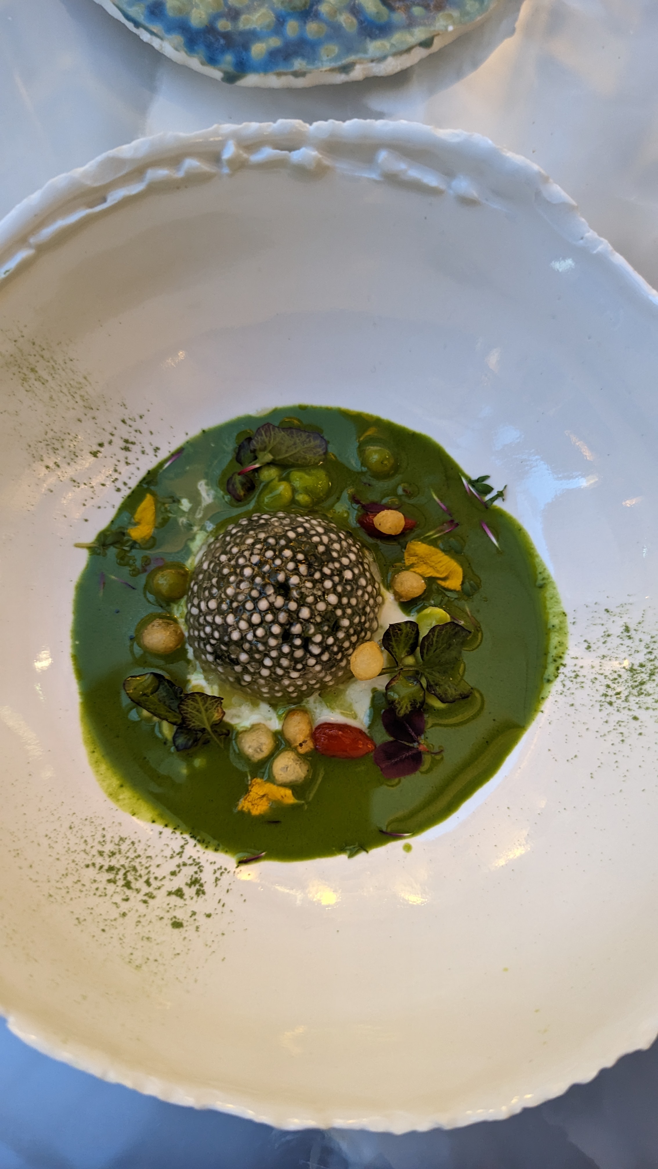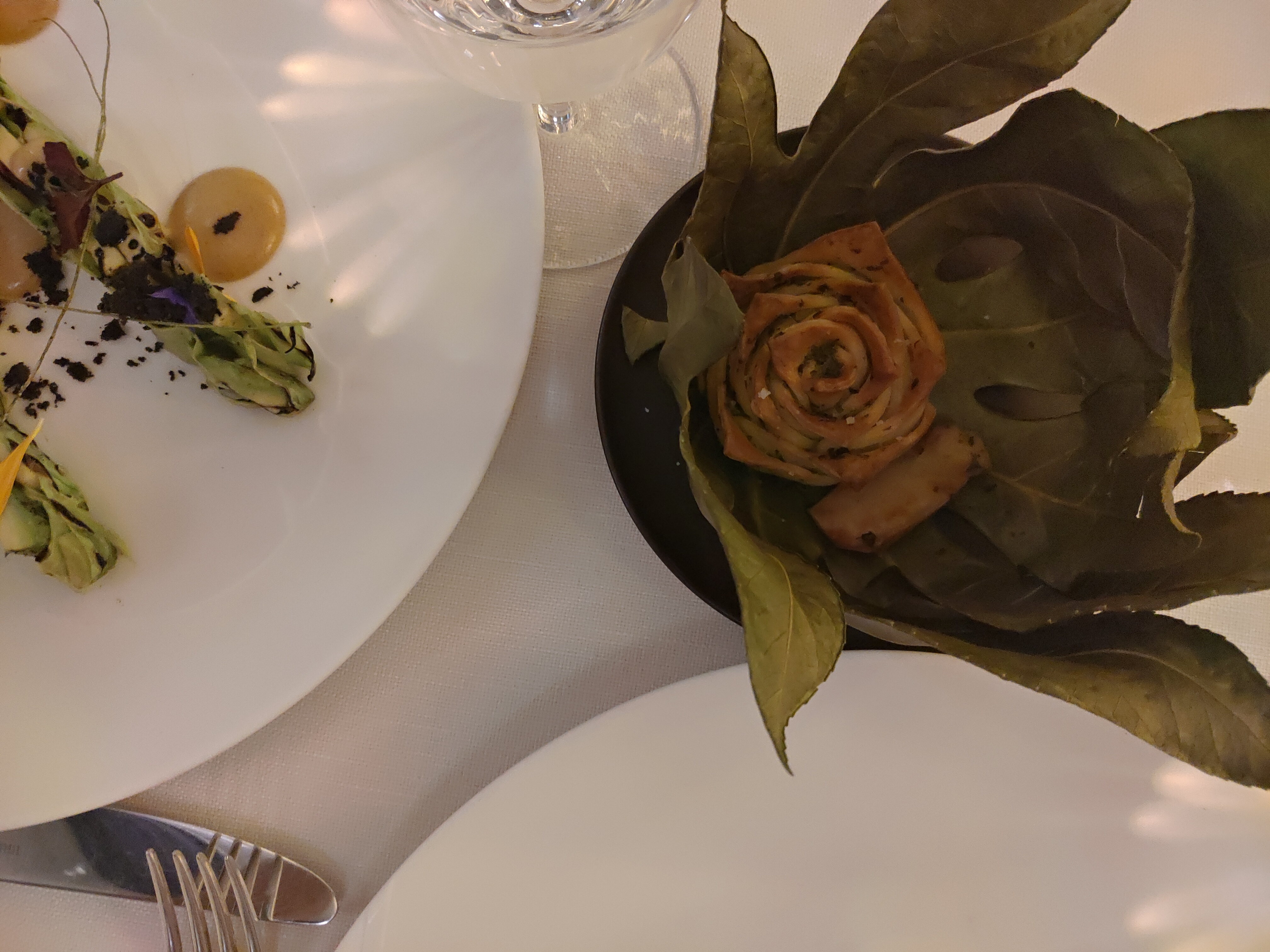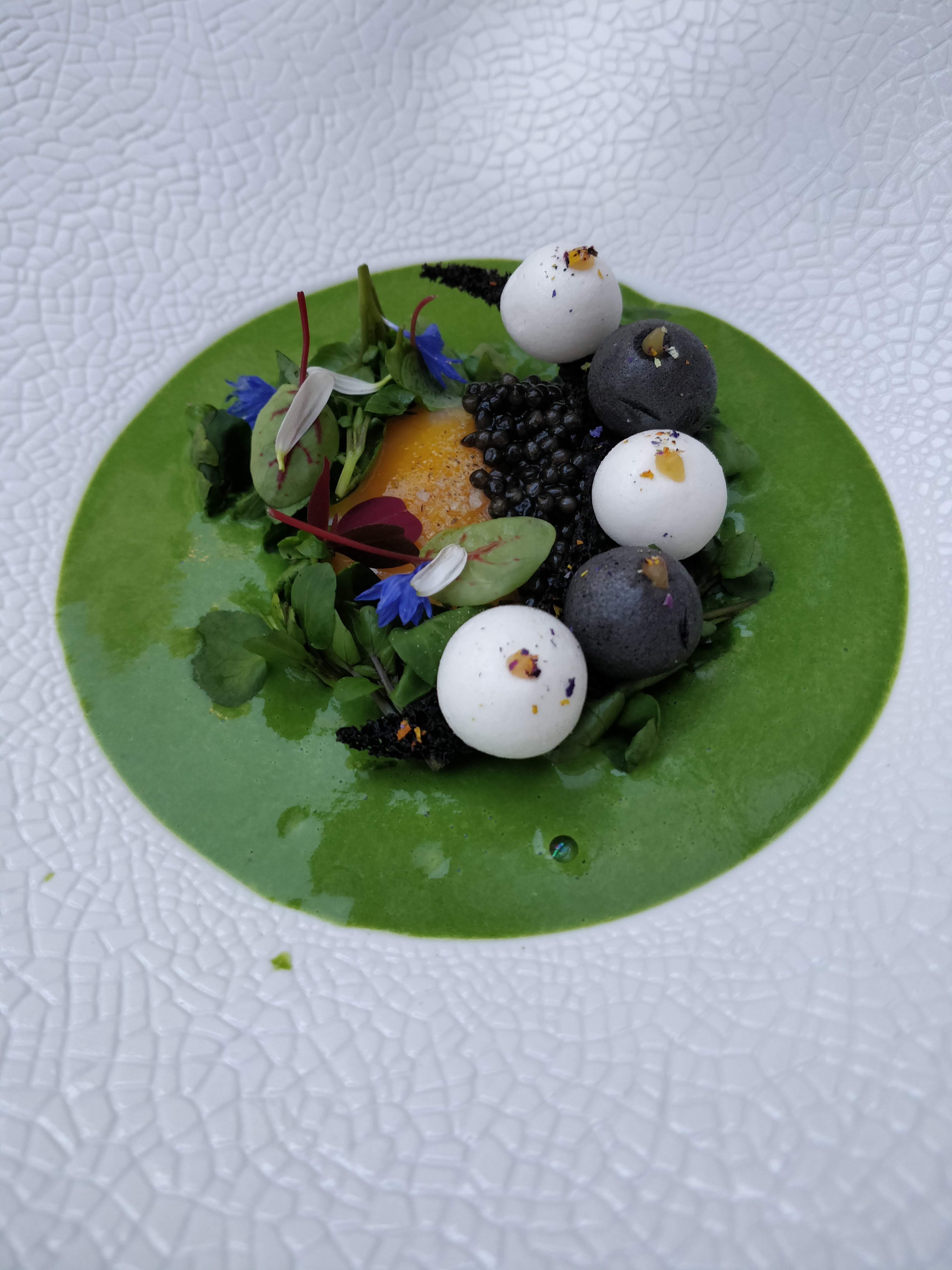Un dîner menu dégustation parfait. Cadre vraiment magnifique, tout sur la table était magnifique, la nourriture était inventive, délicieuse et saine et j'ai eu une excellente cuisine créative malgré mes allergies au gluten et aux produits laitiers. Je suis allé dans plusieurs restaurants étoilés Michelin et celui-ci fait partie d'entre eux à mon avis et mérite absolument plus d'une étoile. Un des meilleurs dîners de ma vie.