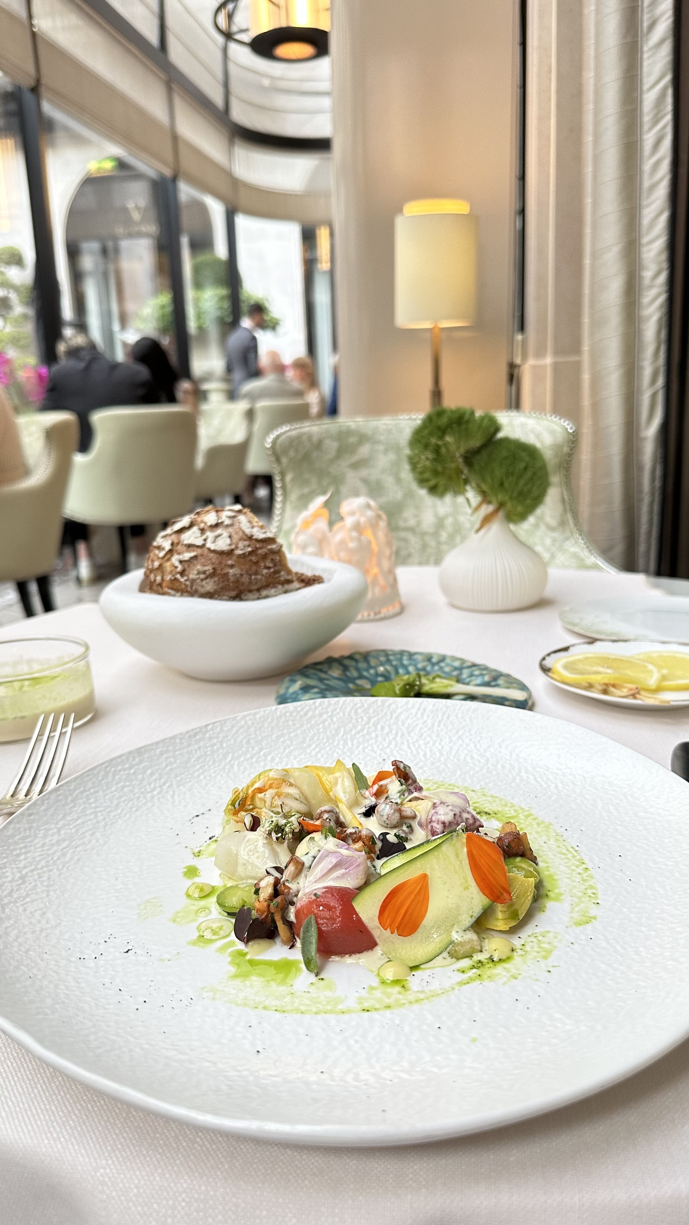 Service attentionné et une mise en scène bien interprétée par une équipe de serveurs et de serveuses dignes de ce palace Parisien. Côté cuisine le chef Alan TAUDON est une étoile montante avec une cuisine inventive et maîtrisée : il mérite ses 2 étoiles au Guide Michelin. Nous avons passé un délicieux moment dans ce bel établissement et les acteurs étaient parfaits.