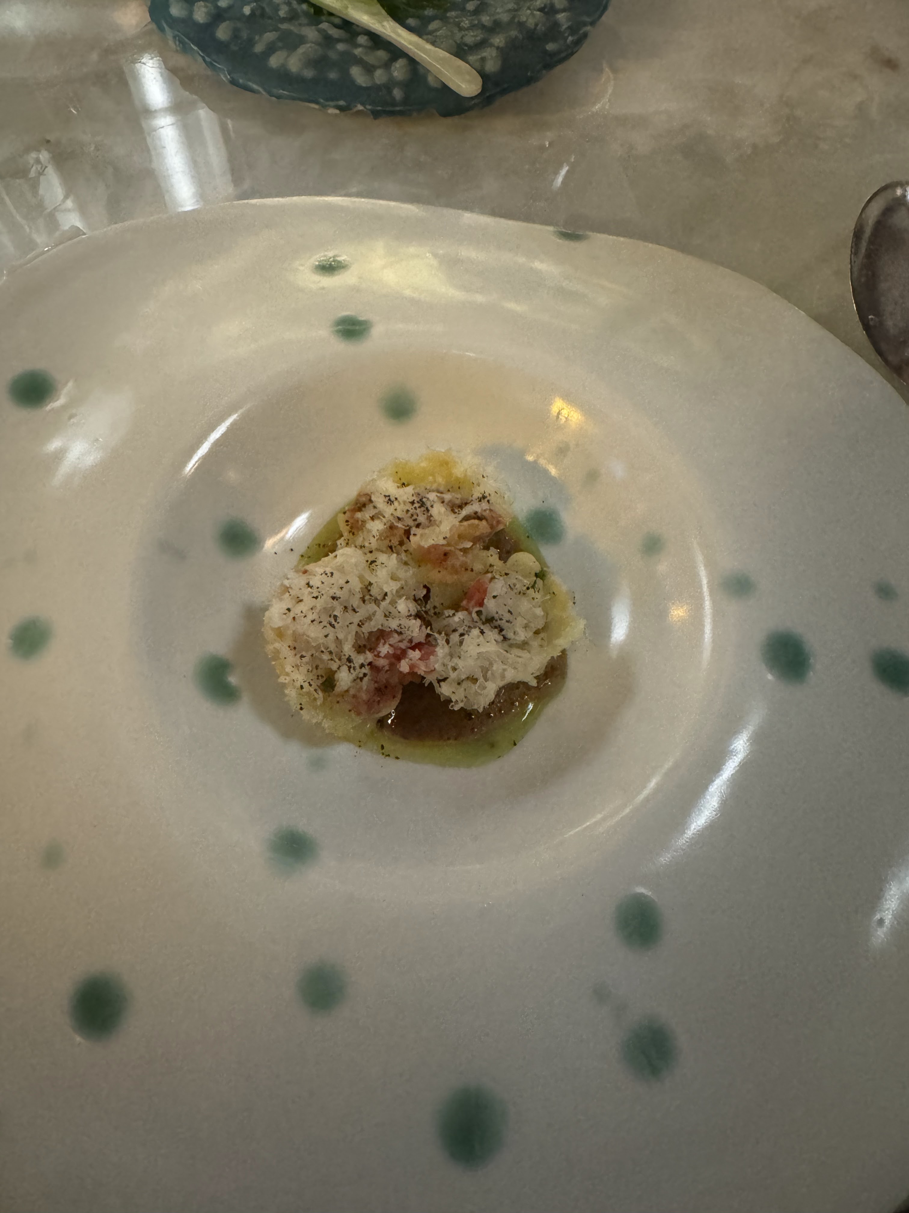 Mon premier déjeuner ici il y a plusieurs années était époustouflant par son exécution et sa valeur. Je suis revenu dîner l'année dernière et, même si tout allait bien, le prix a baissé. Non seulement cela, mais la plupart des sauces utilisées pour tous les plats de fruits de mer étaient plutôt lourdes (même l'apéritif crudo aux crevettes !), et le repas est donc devenu un peu lourd vers la fin. Cela dit, ce n'est que moi qui pinaille. La nourriture ici est toujours bonne en général et j'ai apprécié mon séjour ici.