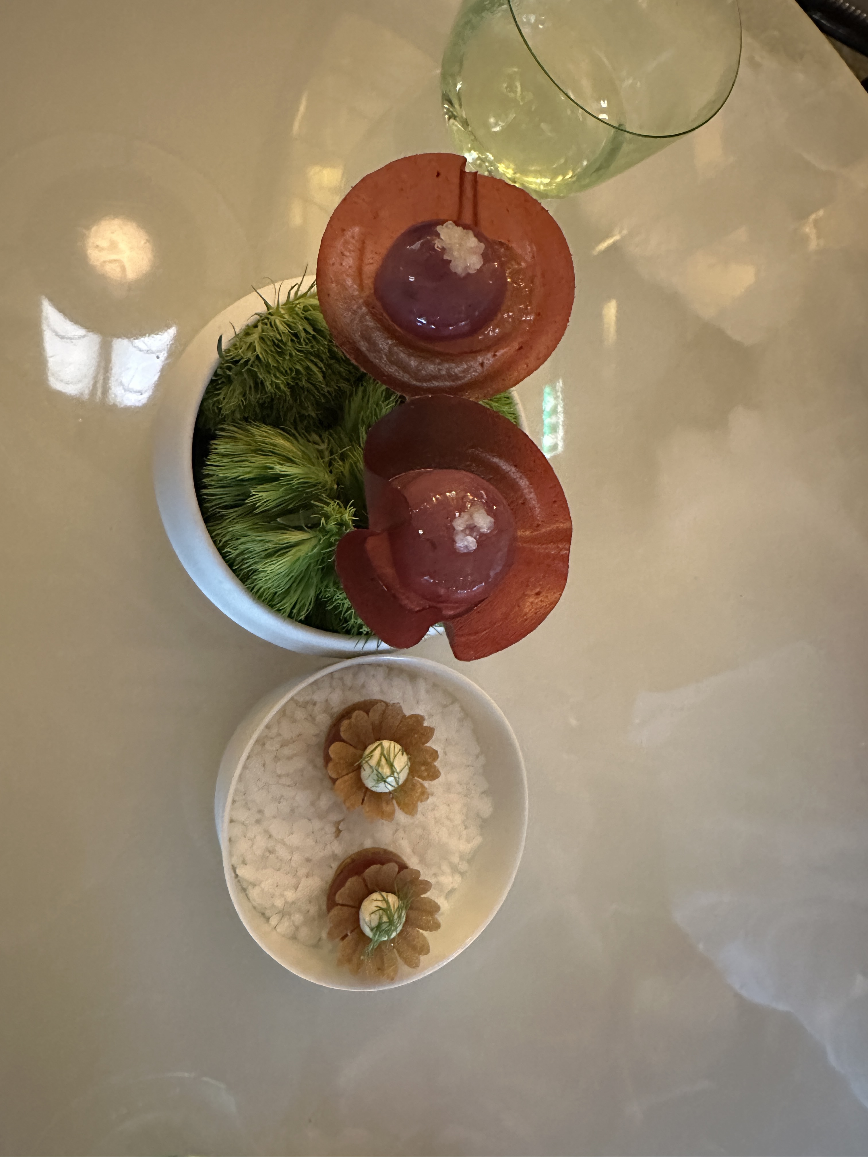 Expérience exquise! La première série d’entrées et de divers nettoyants pour palettes a été plus mémorable que l’un des plats principaux. Mais je ne vois pas cela comme un problème. Le service soigne chaque détail de l’expérience et constitue un véritable point fort du lieu. Nous n'avons jamais eu l'impression d'être seuls et le personnel prenait toujours l'initiative de partager des détails intéressants sur les plats.