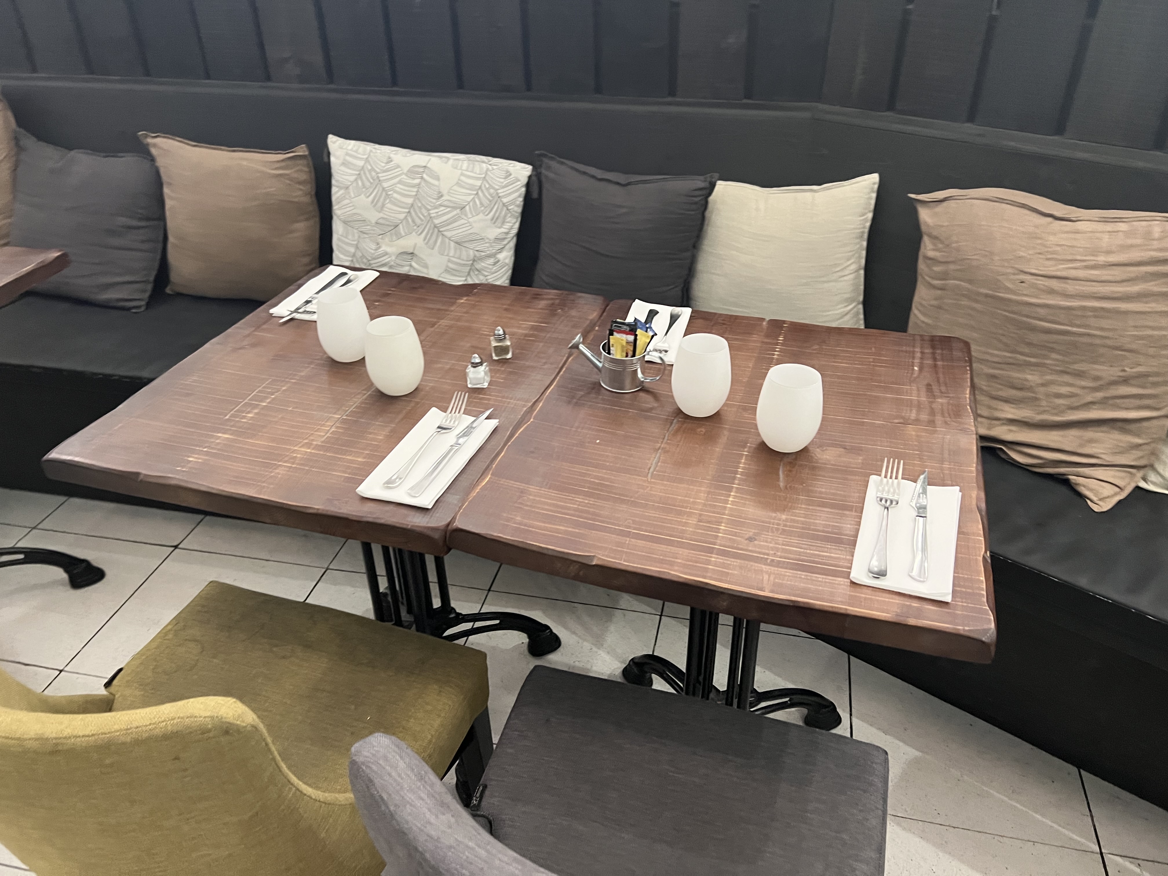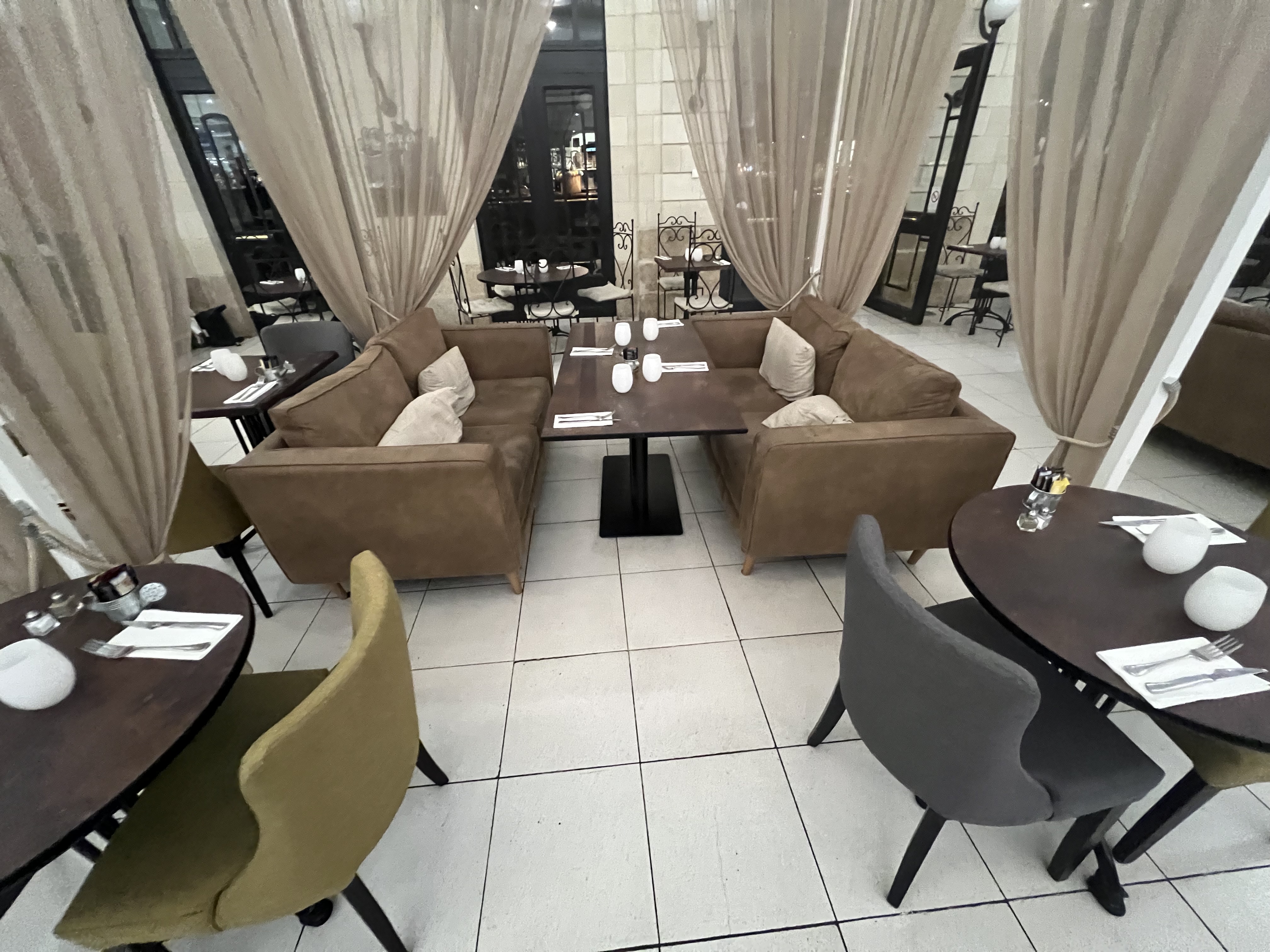 Le restau est joliment décoré, on y mange bien mais pas bcp de choix pour les végétariens c dommage. Qqch m’a cependant dérangé, c’est le fait qu’un serveur nous pique la bouteille d’huile depuis notre table sans même demander si nous en avions encore besoin! J’étais très surprise!