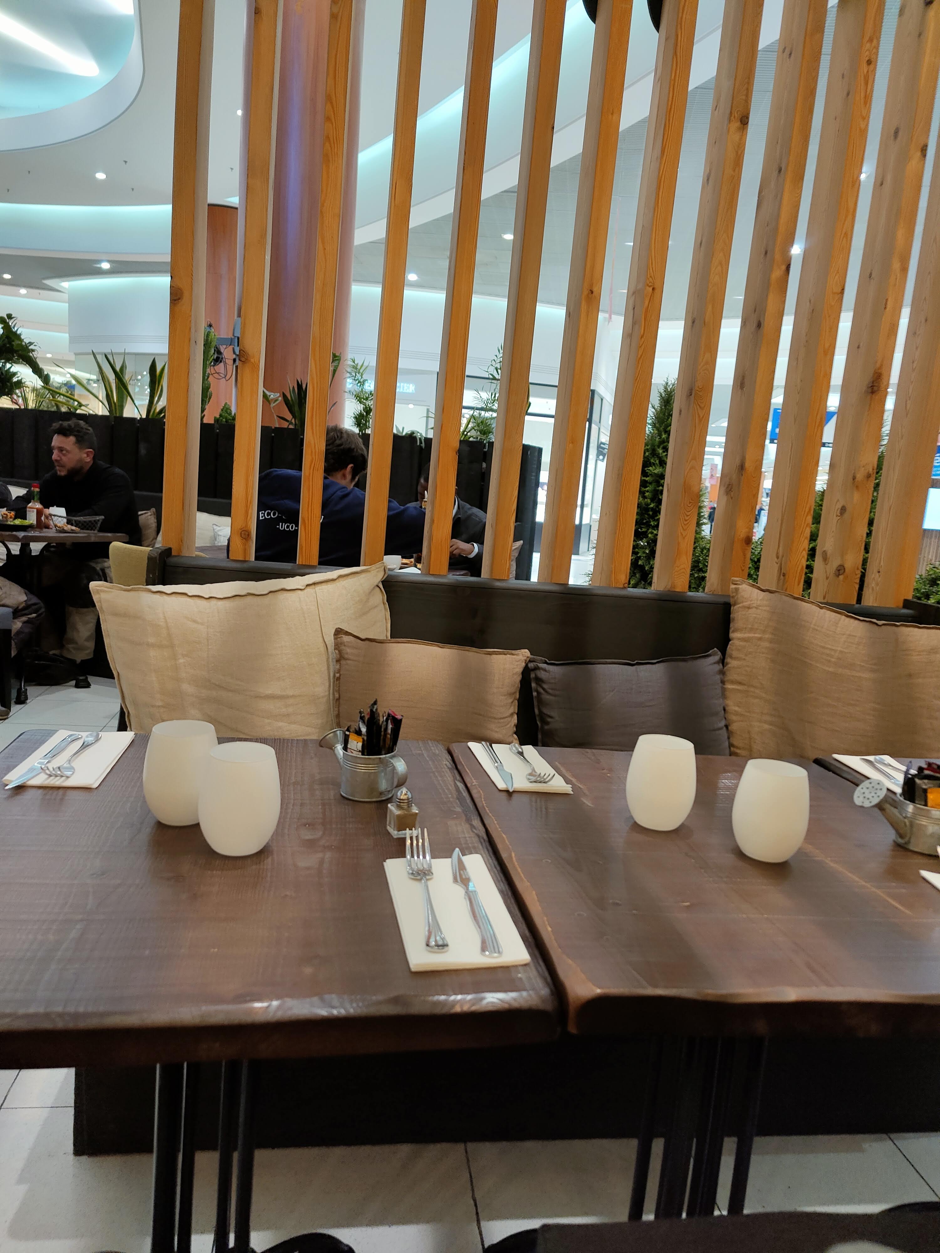 Lieu particulier en galerie marchande mais avec un décor qui nous en extrait le temps d'un repas sympa, accueil sympa, service efficace et chaleureux, carte diverse et appétissante, jamais déçue