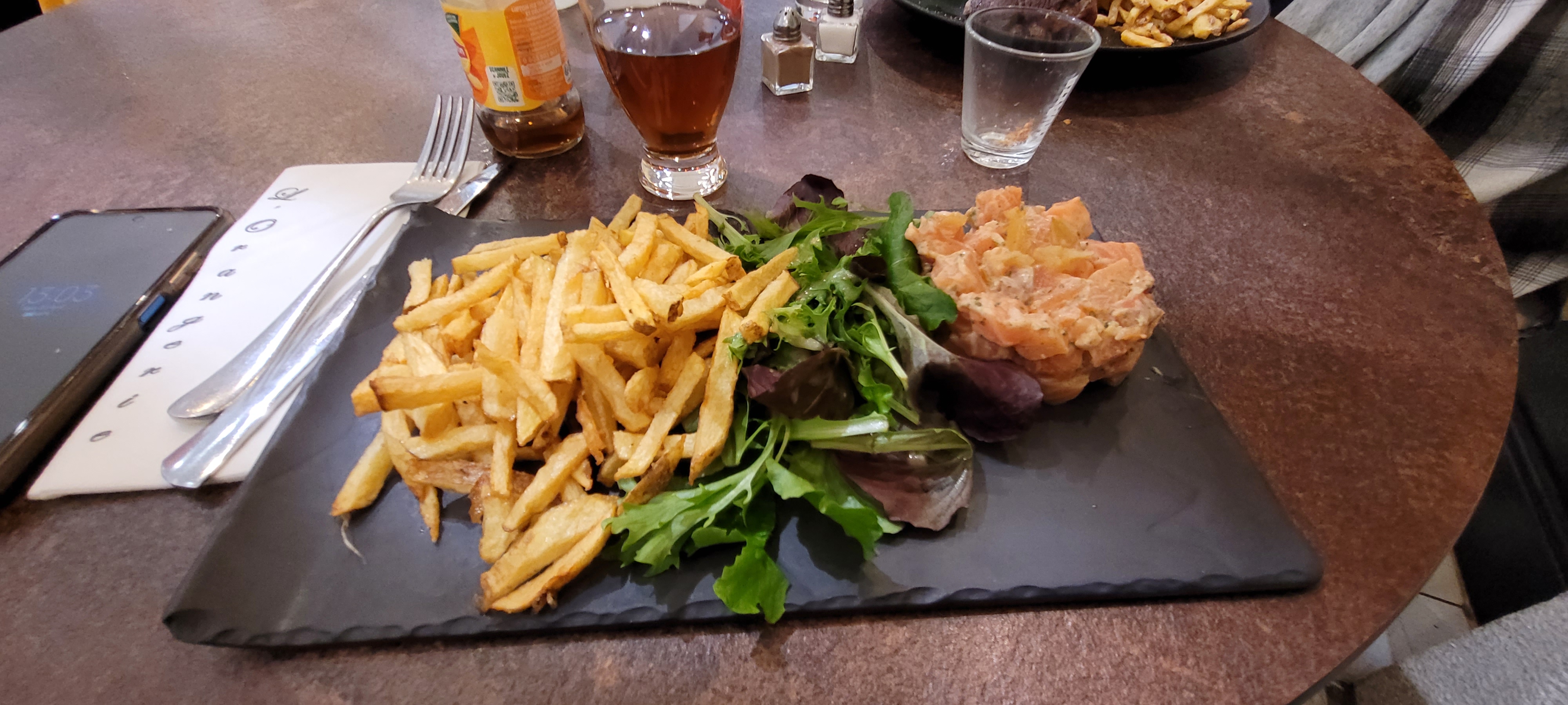 Les burgers étaient bien garnis, la pièce de boeuf était très tendre et l'accueil agréable avec des serveurs souriants. Points à améliorer : le pain était sec et la sauce pas étalée, les frites pas terribles. Nous avons eu froid sur la terrasse (près des picks up Amazon)