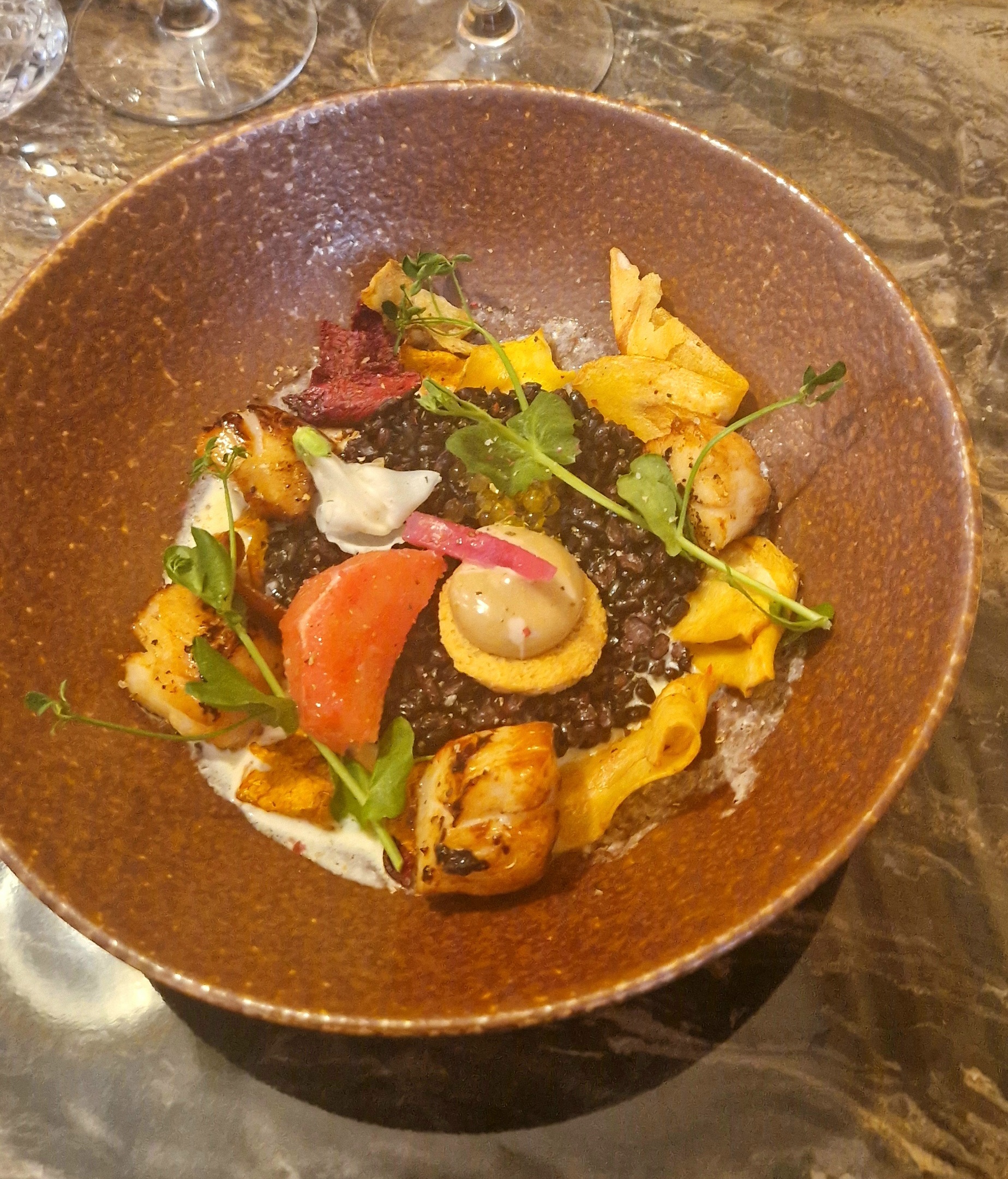 Excellent moment. Gros travail dans les assiettes, avec un résultat tout en finesse et du goût Personnel très souriant et détendu Bravo et merci