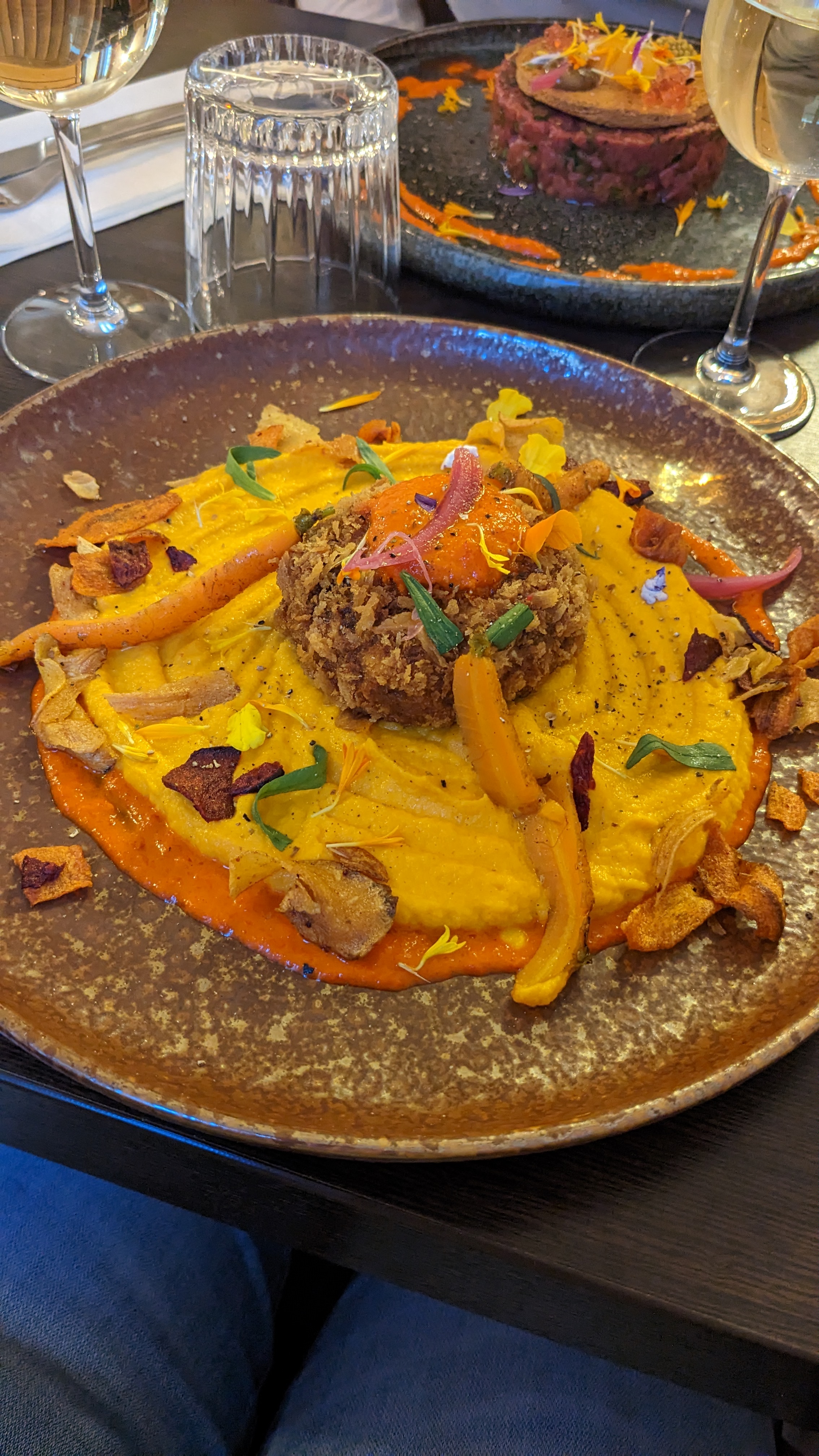 Repas gastronomique original, seul bemol la présentation des frites en dessous du reste. Acoustique de la salle a l'étage difficile quand il y a du monde. Peut être un traitement des murs et plafonds pourraient y remedier. Cela reste un joli lieu , nous y retournerons bientôt.