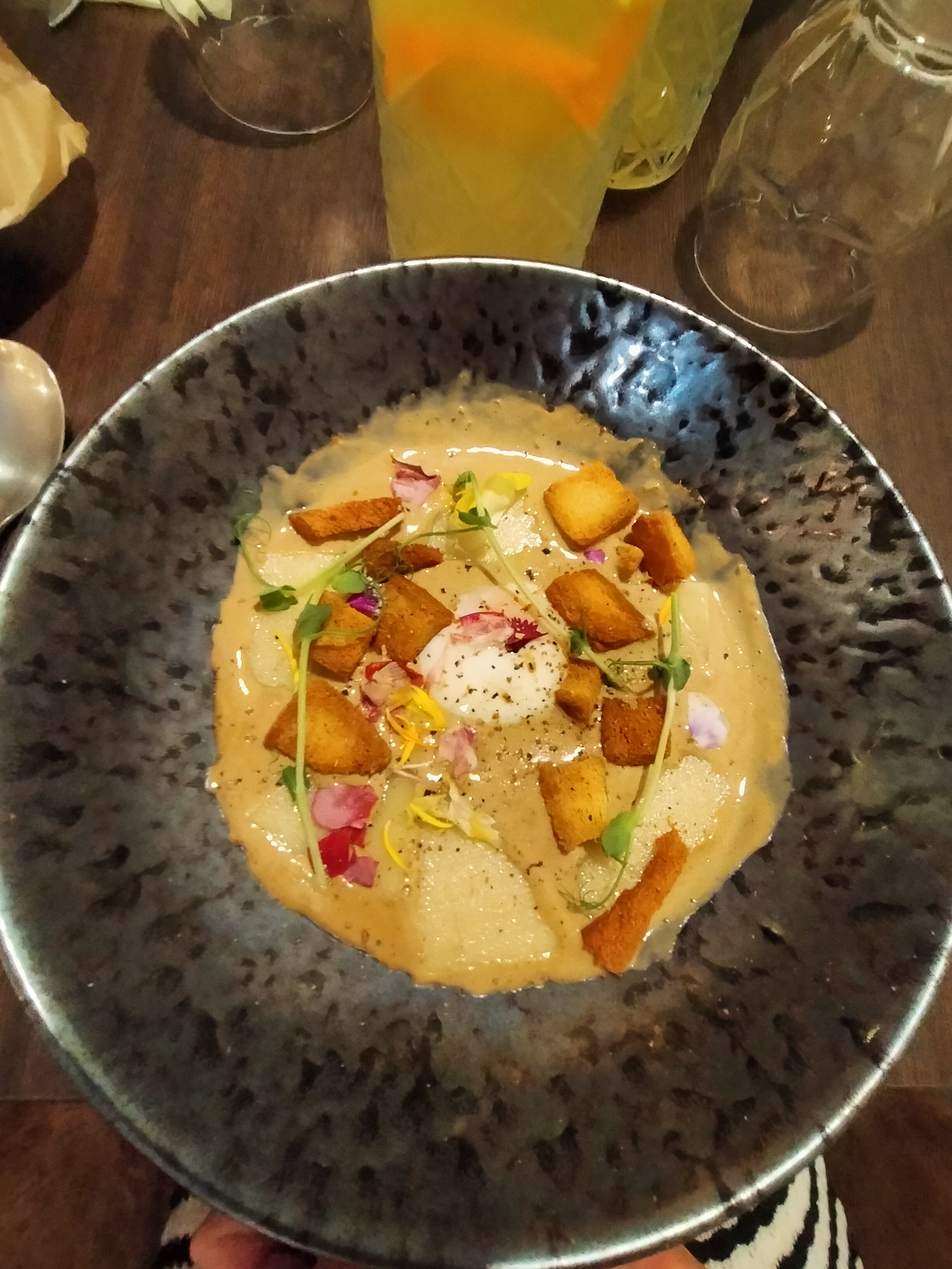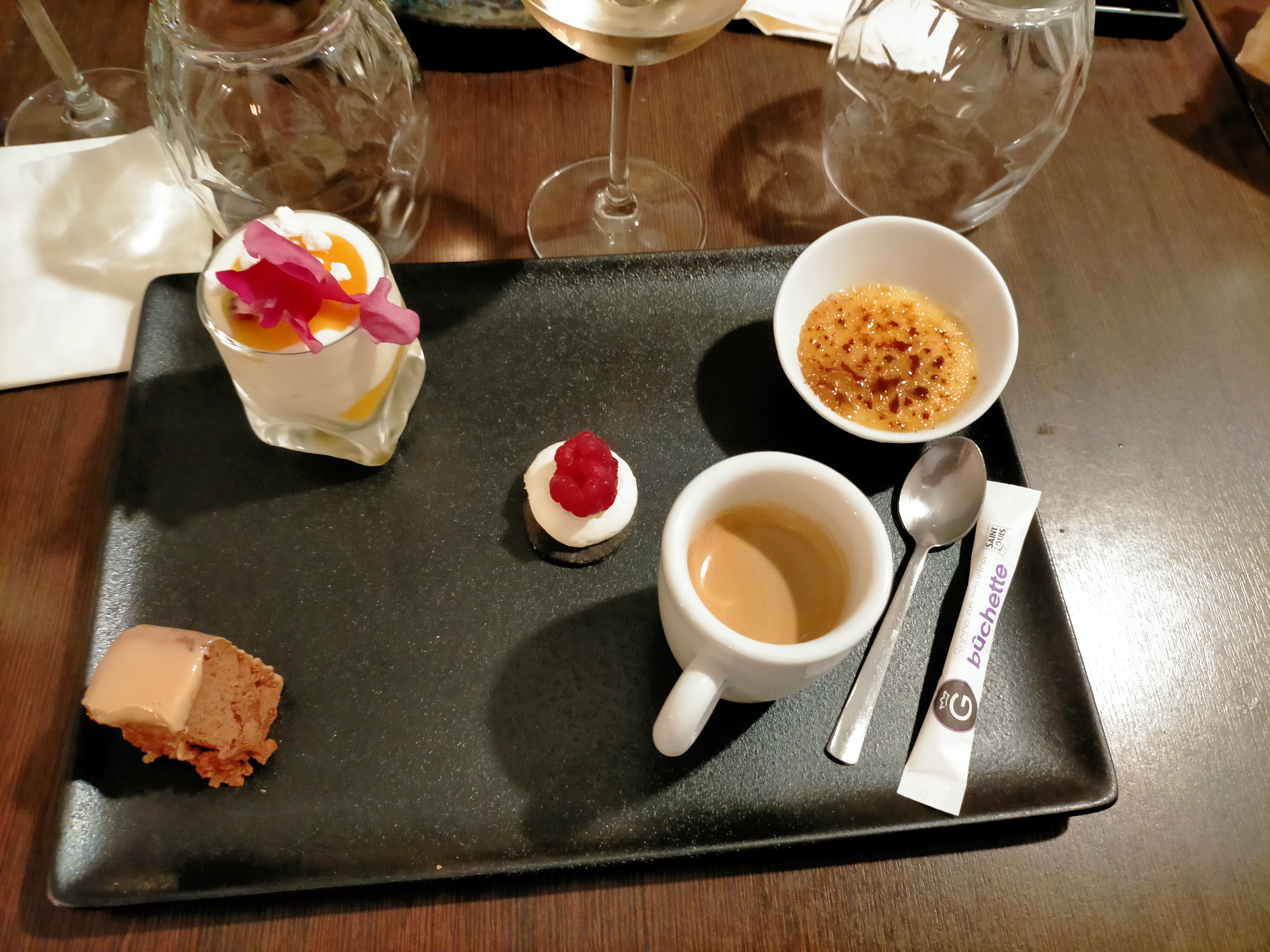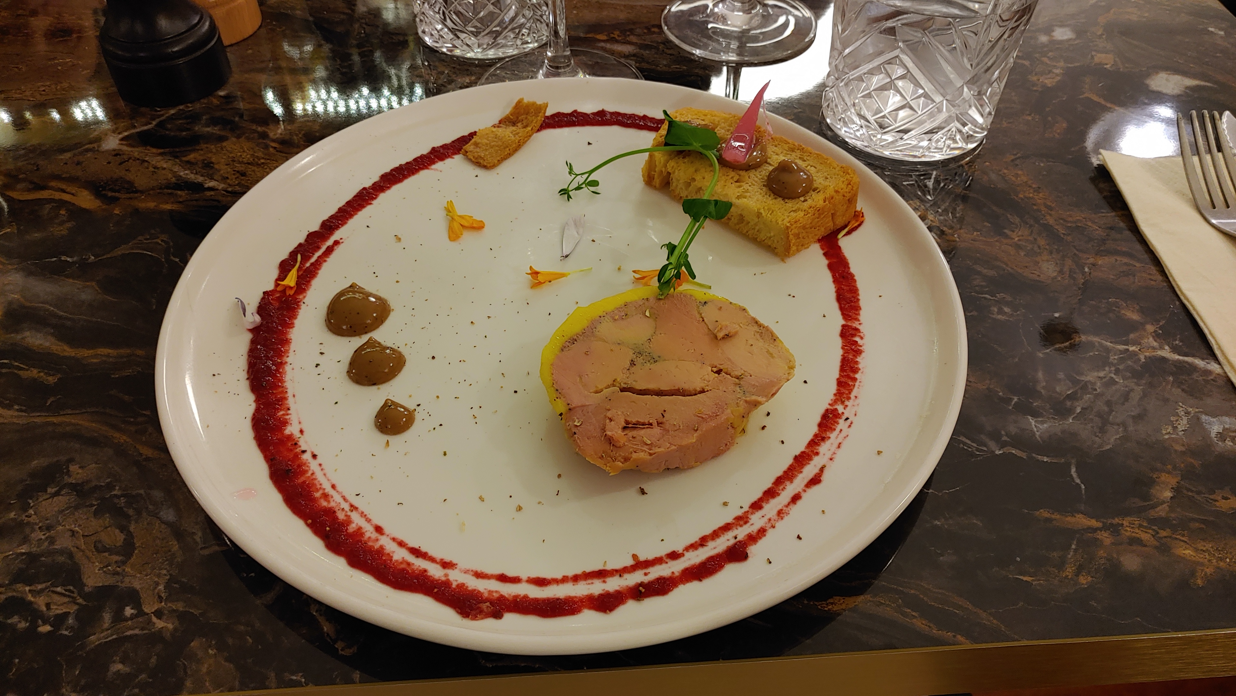 Chute d’un gros parasol sur une de nos têtes et sur la table heureusement sans conséquence Plat enfant demandé à l’entrée des adultes , arrivé après relance ….au moment des deserts adultes. Pluma de cochon ibérique rosé donc à peine cuit , pas recommandé pour du porc ( risque de ténia) Etc.. Des amateurs malgré des plats aux titres ronflants Dommage car ce repas avait pour objet une découverte dans la perspective d’un banquet familial