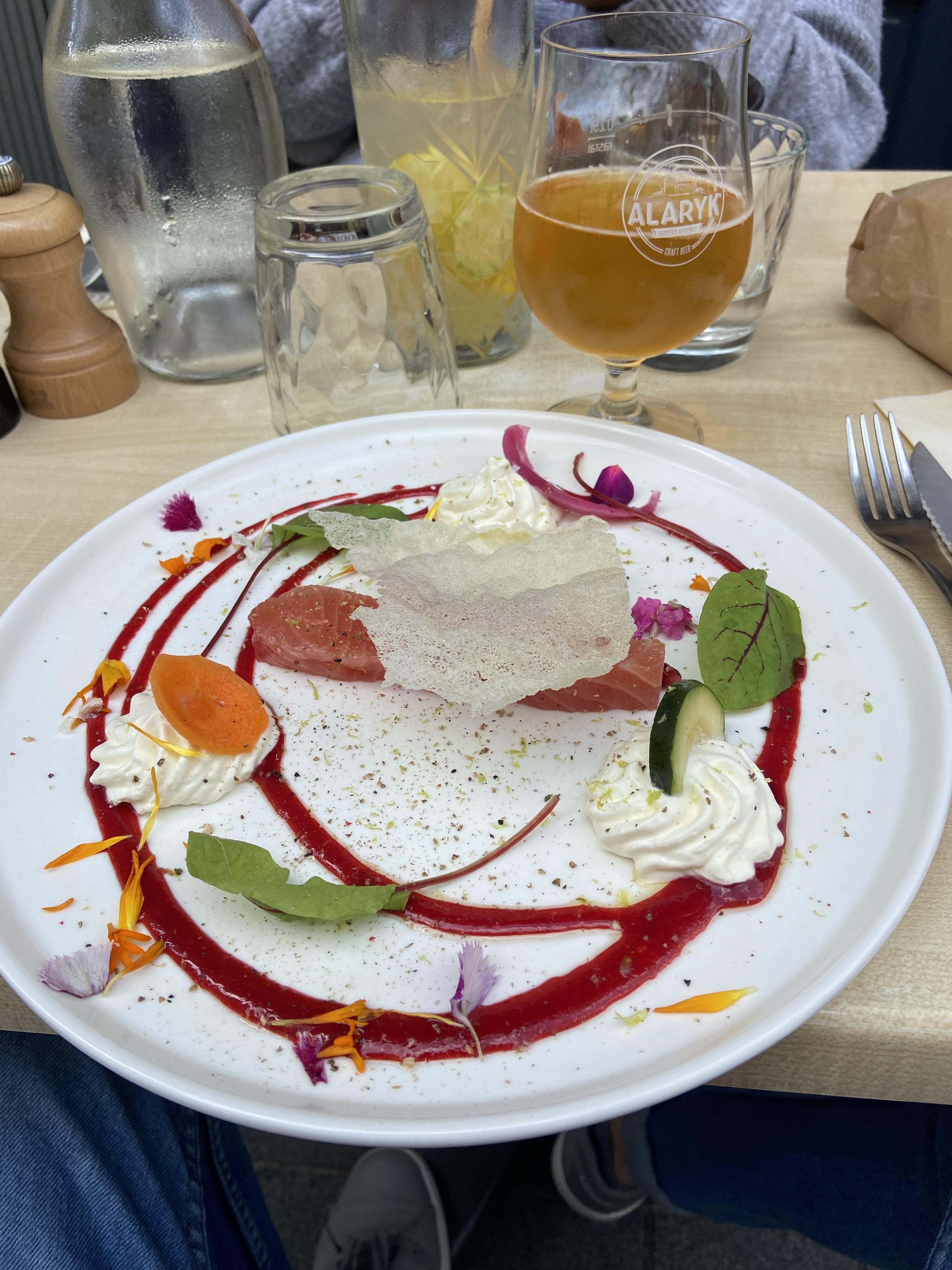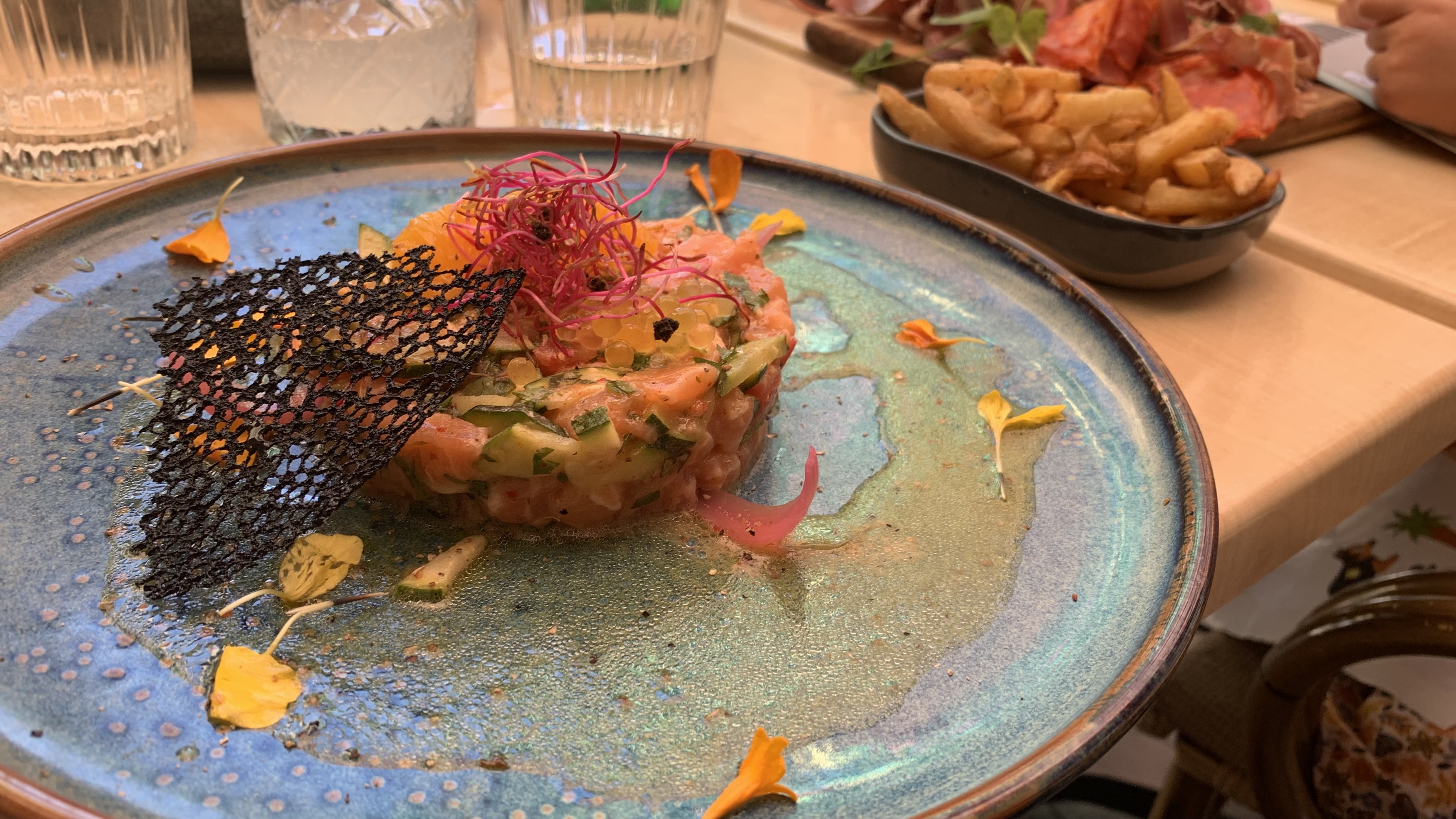 Nous sommes arrivées devant la terrasse ombragée et bien aménagée dans cette petite rue calme. L’intérieur est splendide. Les plats sont délicieux, bien présentés avec des produits de qualité (mais pas très copieux). J’ai pris un tartare de saumon et l’assaisonnement était particulièrement réussi ! J’adore et je recommande par contre penser à réserver !