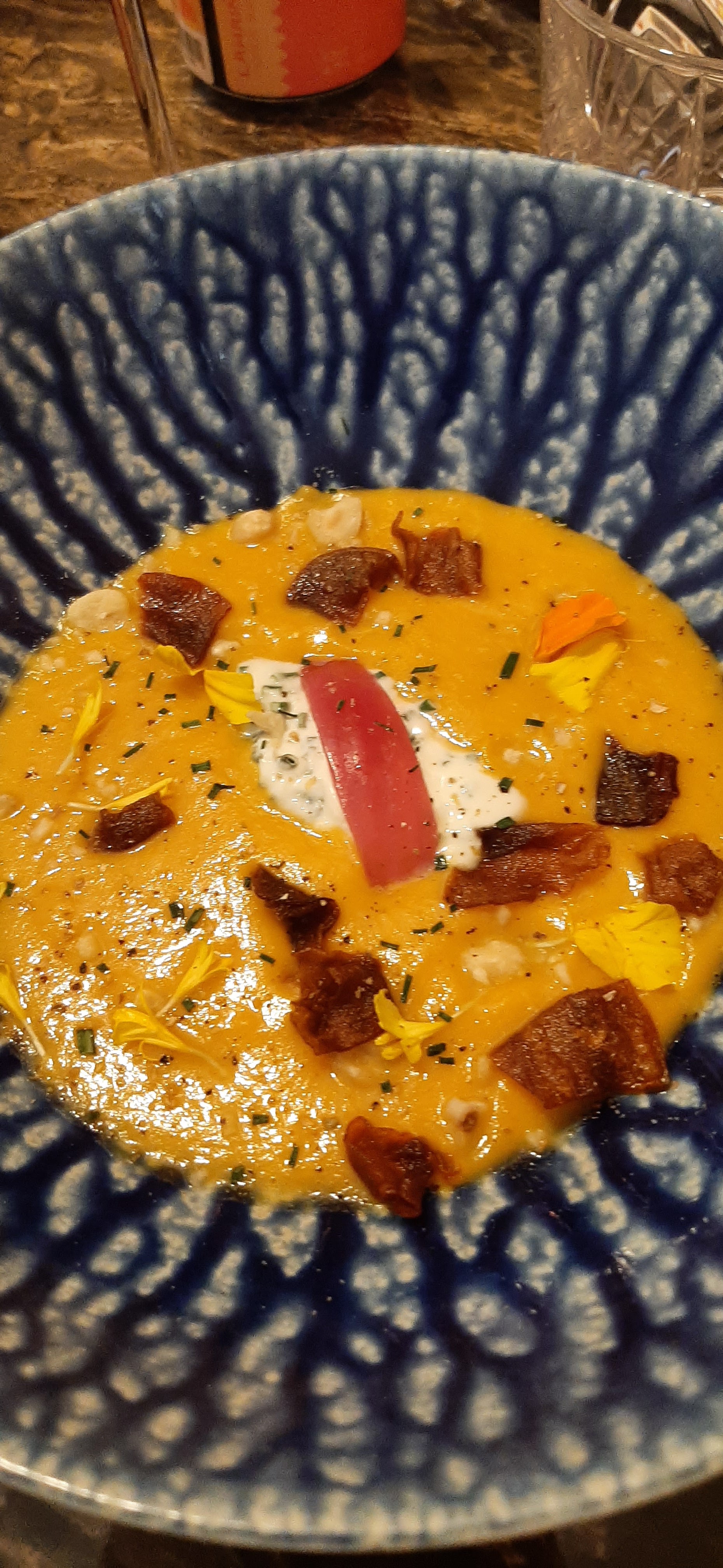 Repas très bon et original malheureusement on n'a pas pu s'entendre car trop de monde dans la petite salle... 3 groupes.