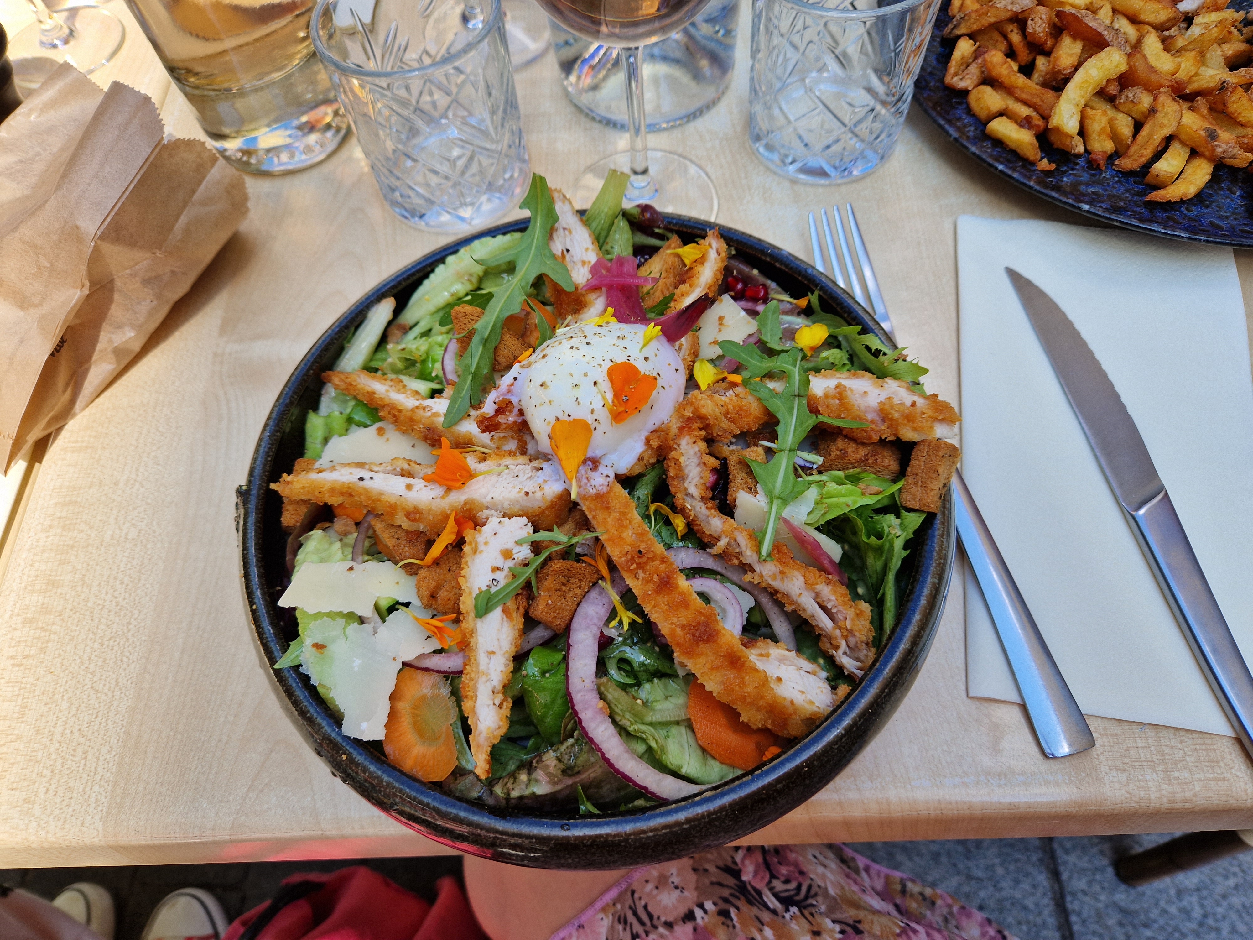 Bien dans l’ensemble. Terrasse agréable, plats bons. Dommage que nous ayons dû tout demander (le pain, l’eau, les glaçons dans les cocktails…) et que le burger avec uniquement du fromage (pain+fromage) nous ait été facturé le prix d’un burger complet (~18€).