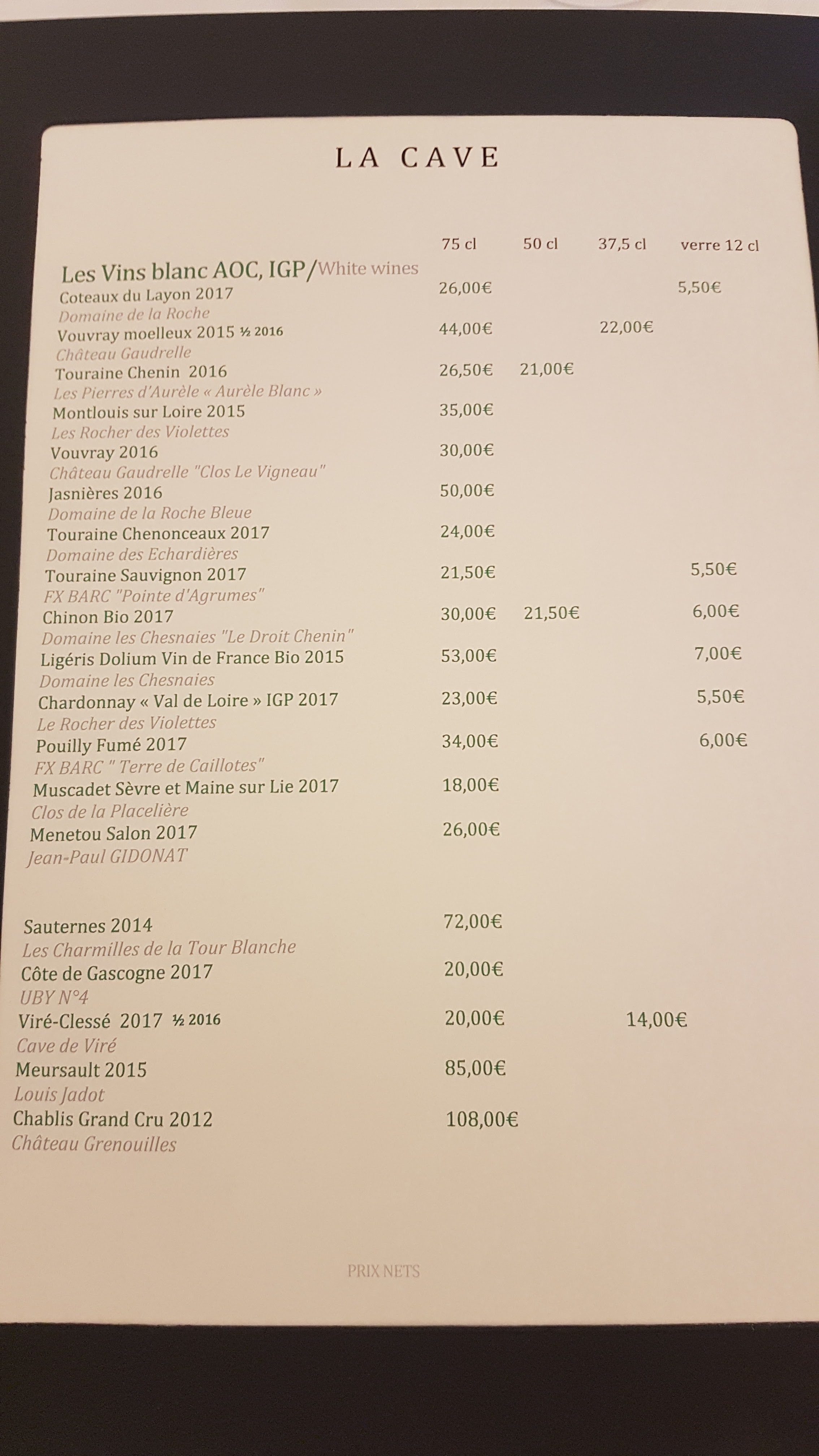 Excellent repas dans un cadre magnifique et raffiné. Un menu saveurs de Touraine avec un excellent rapport qualité. Le service est impeccable et le staff est au petit soin et de bon conseil. Un petit moment de perfection !