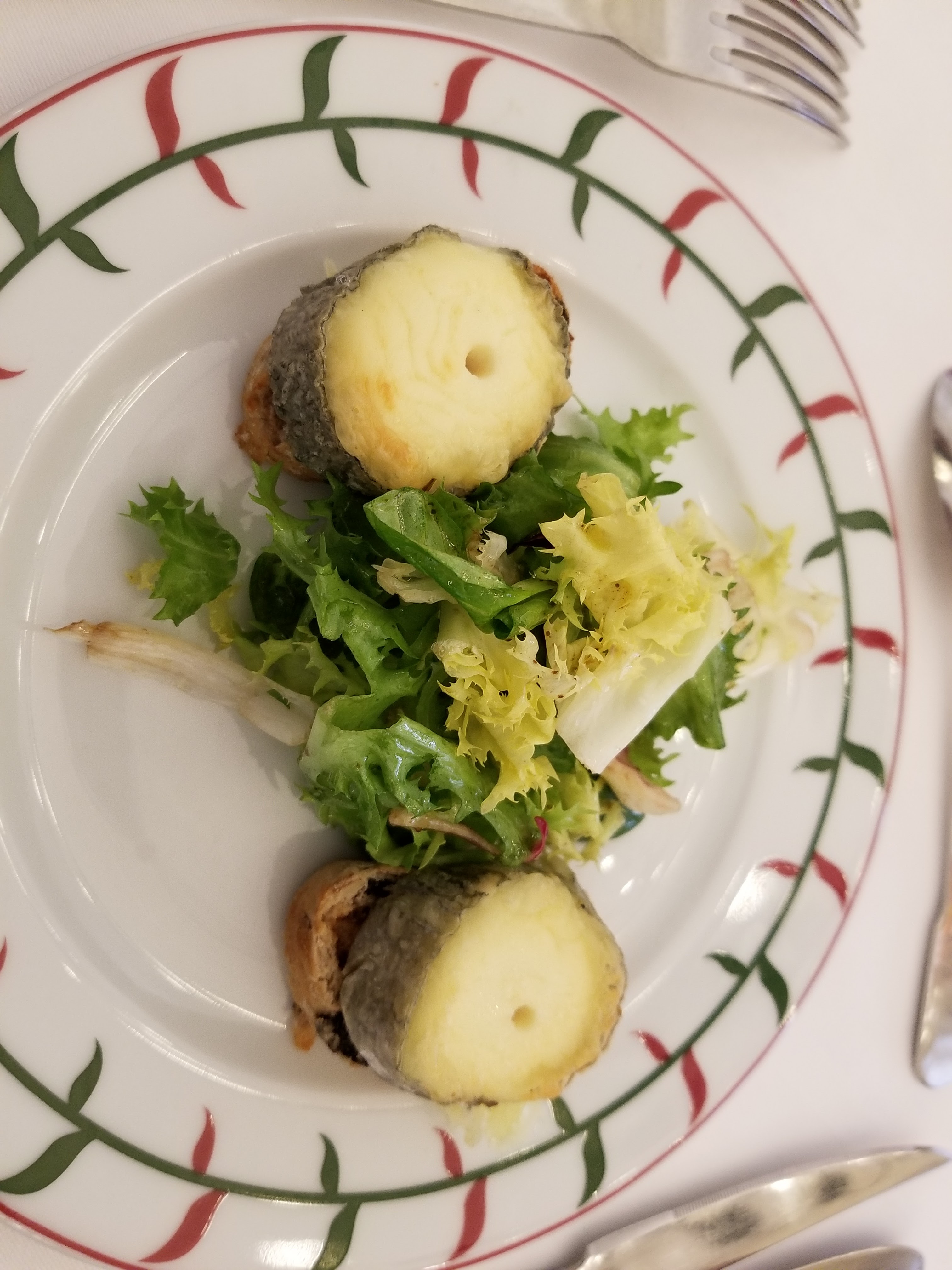 Beau restaurant. De bons crostini au fromage de chèvre pour commencer. Puis poitrine de poulet et fraises et vanille de l'Alaska cuites au four.