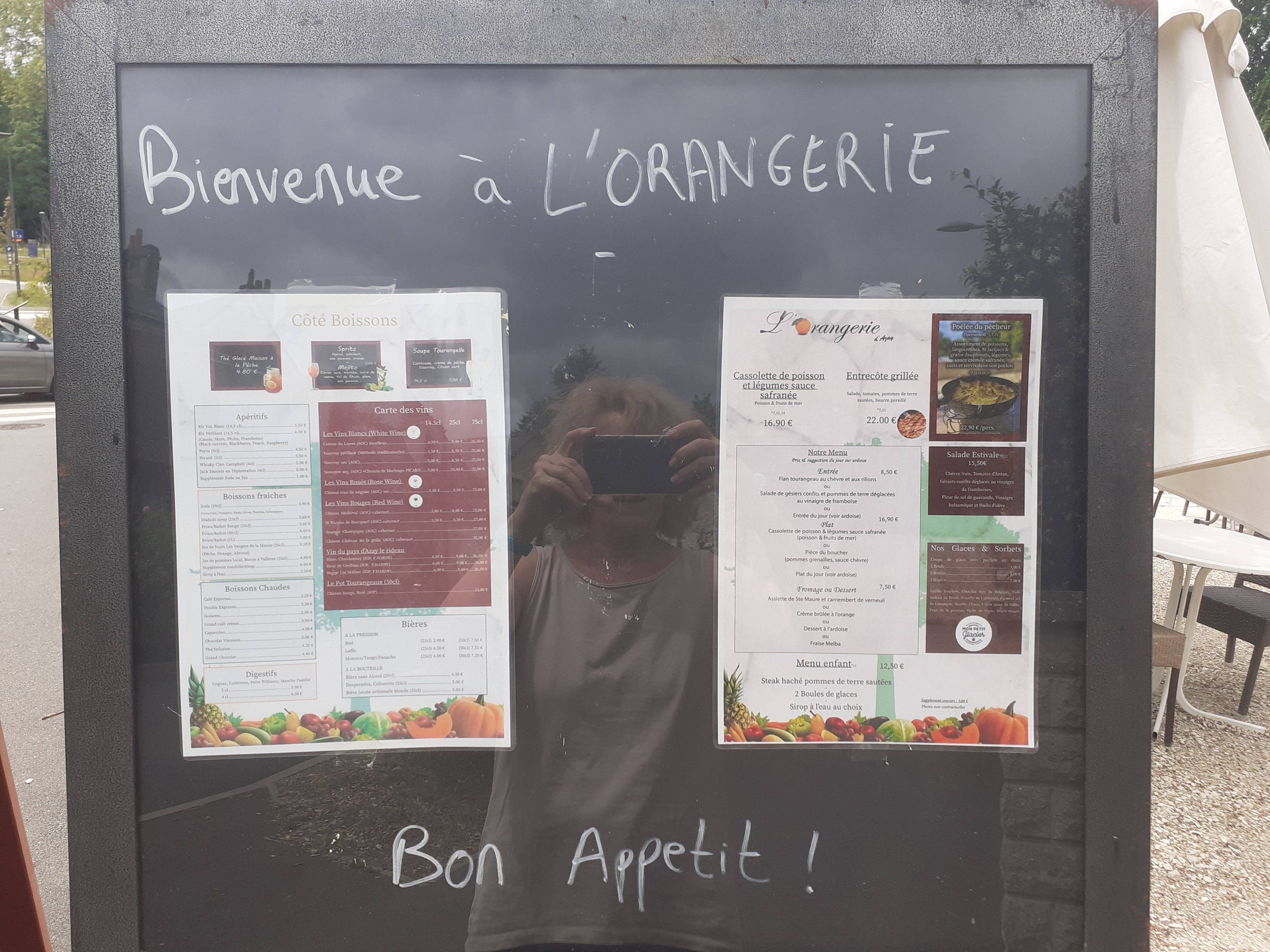 Un peu déçu : cadre pas fou donnant sur le parking du château d'Azay et très peu le château, les desserts ne sont pas maison et sont à priori des desserts indus' vraiment trop sucrés notamment. La matière première est bonne (viande, légumes), mais l'exécution approximative (trop salées, trop simple). Les plats font chics mais sont trop simples. Menu enfant unique steak haché... C'est très correct mais le rapport qualité / prix n'est pas le meilleur du coin. Vin de Chinon consigné peu cher par exemple. 4.3 en note au moment où j'écris ce commentaire donc je suis peut-être un peu dur ? Bon moment malgré tout !
