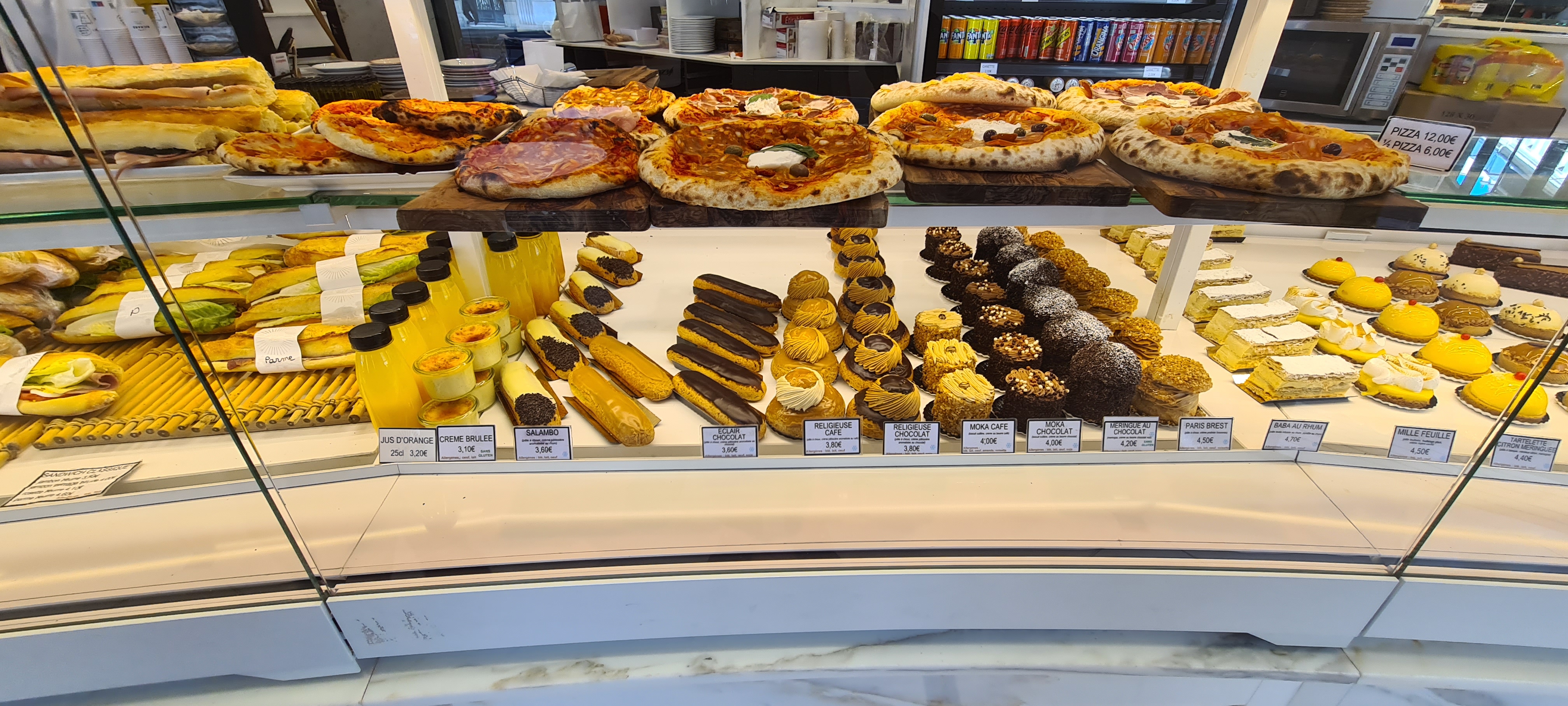 Bon accueil. Un choix intéressant de pâtisseries notamment. Un peu cher. Situé à côté de la gare. Je recommande