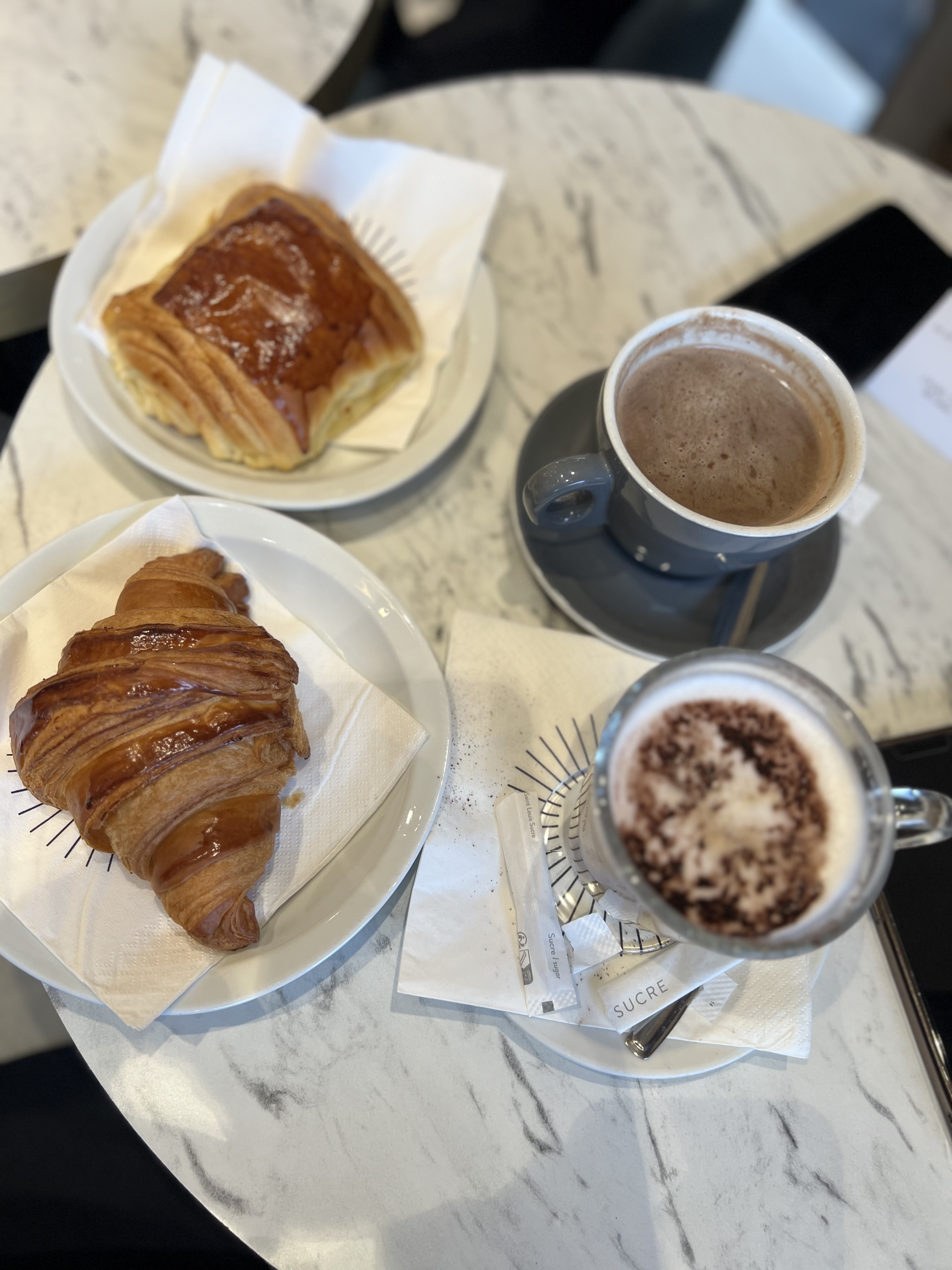 Pris 2 cafés un dimanche matin, très bons, le lieu est très accueillant et joli, le personnel gentil, je n'ai pas eu le temps de prendre un croissant, donc pas d'avis sur la nourriture, mais lieu où on a plaisir à rester