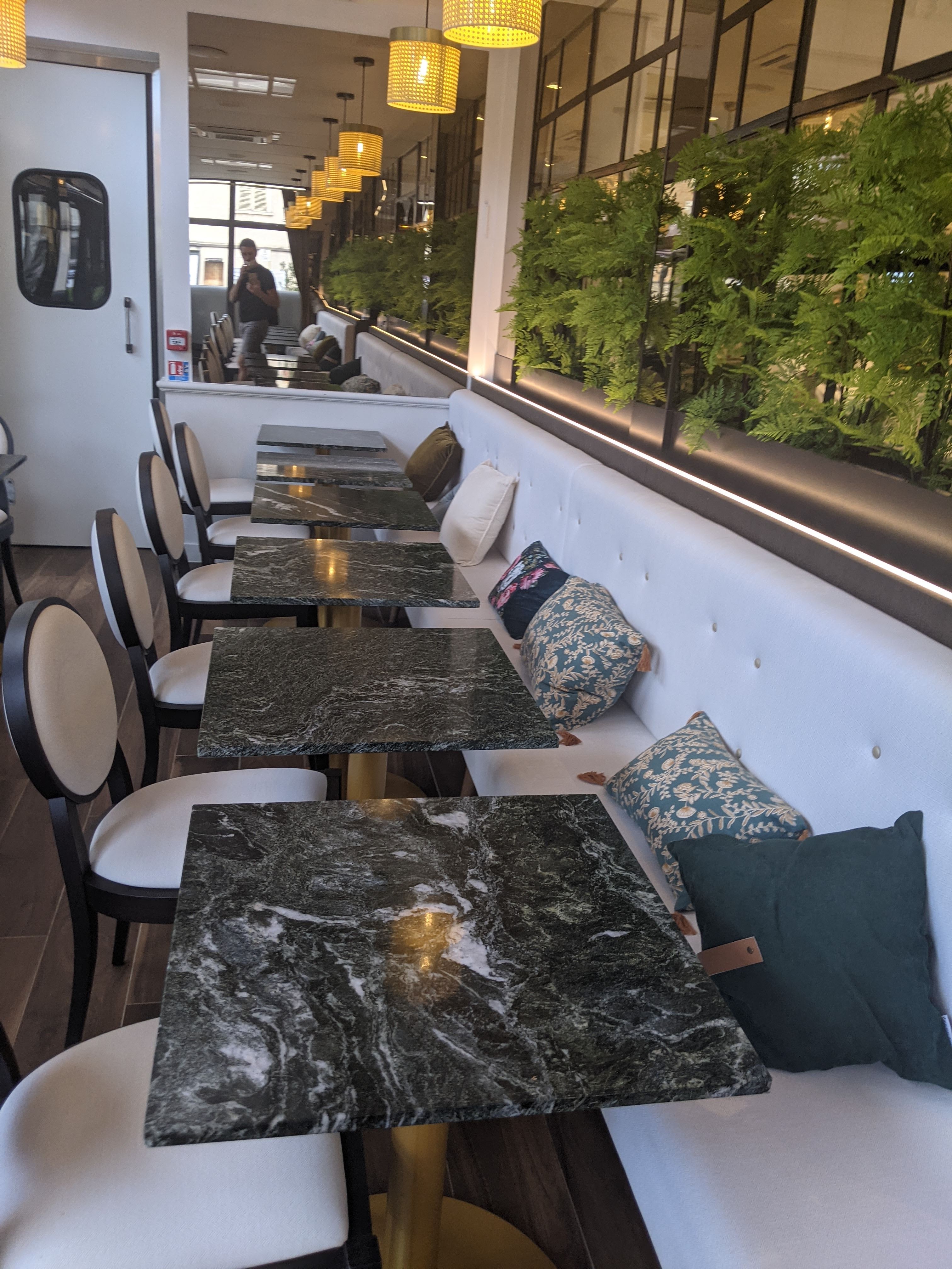 Bel endroit juste à l'extérieur de la gare avec de très bonnes options pour le petit-déjeuner. Le design intérieur est époustouflant. Le personnel est sympathique et surtout Emma qui nous a fourni un service exceptionnel.