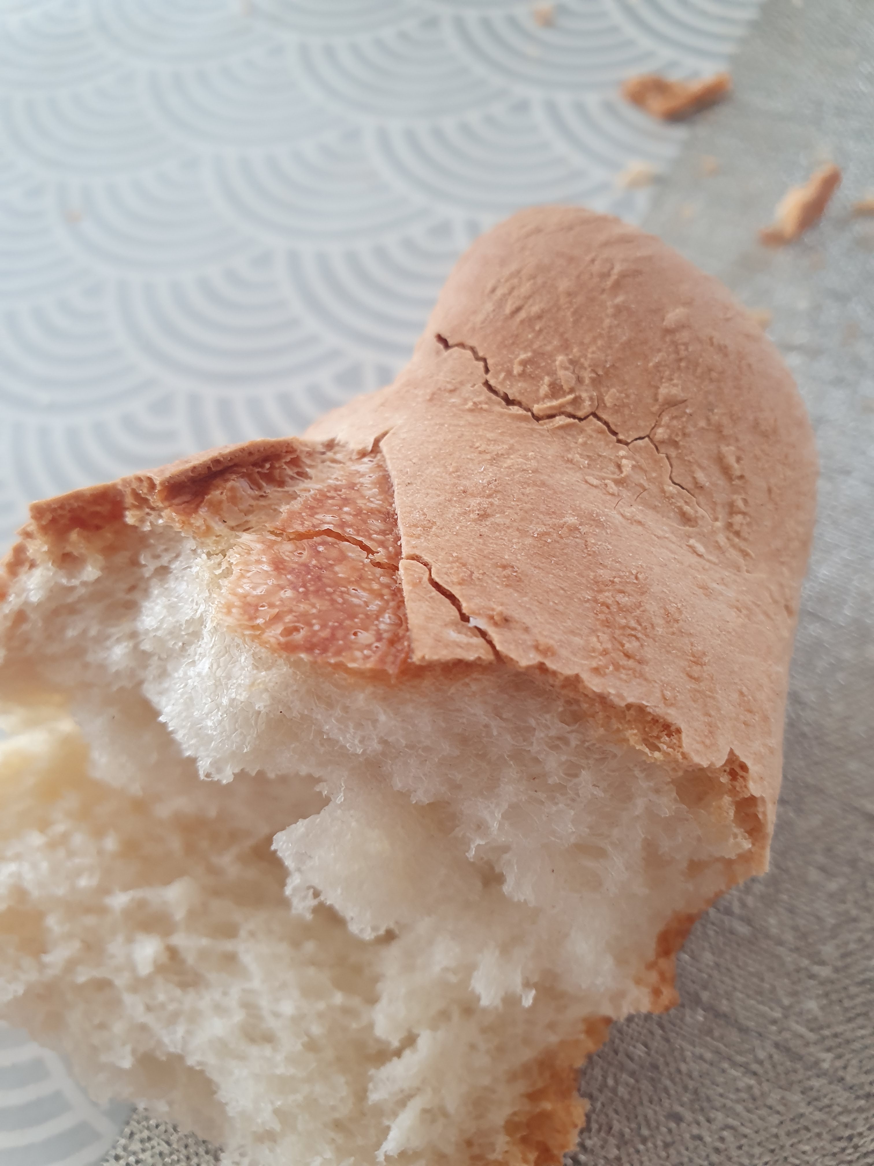 Une baguette tradition du matin vendue le soir. Dure et sèche. Après une remarque à la vendeuse, j'ai seulement reçu un hochement des épaules.
