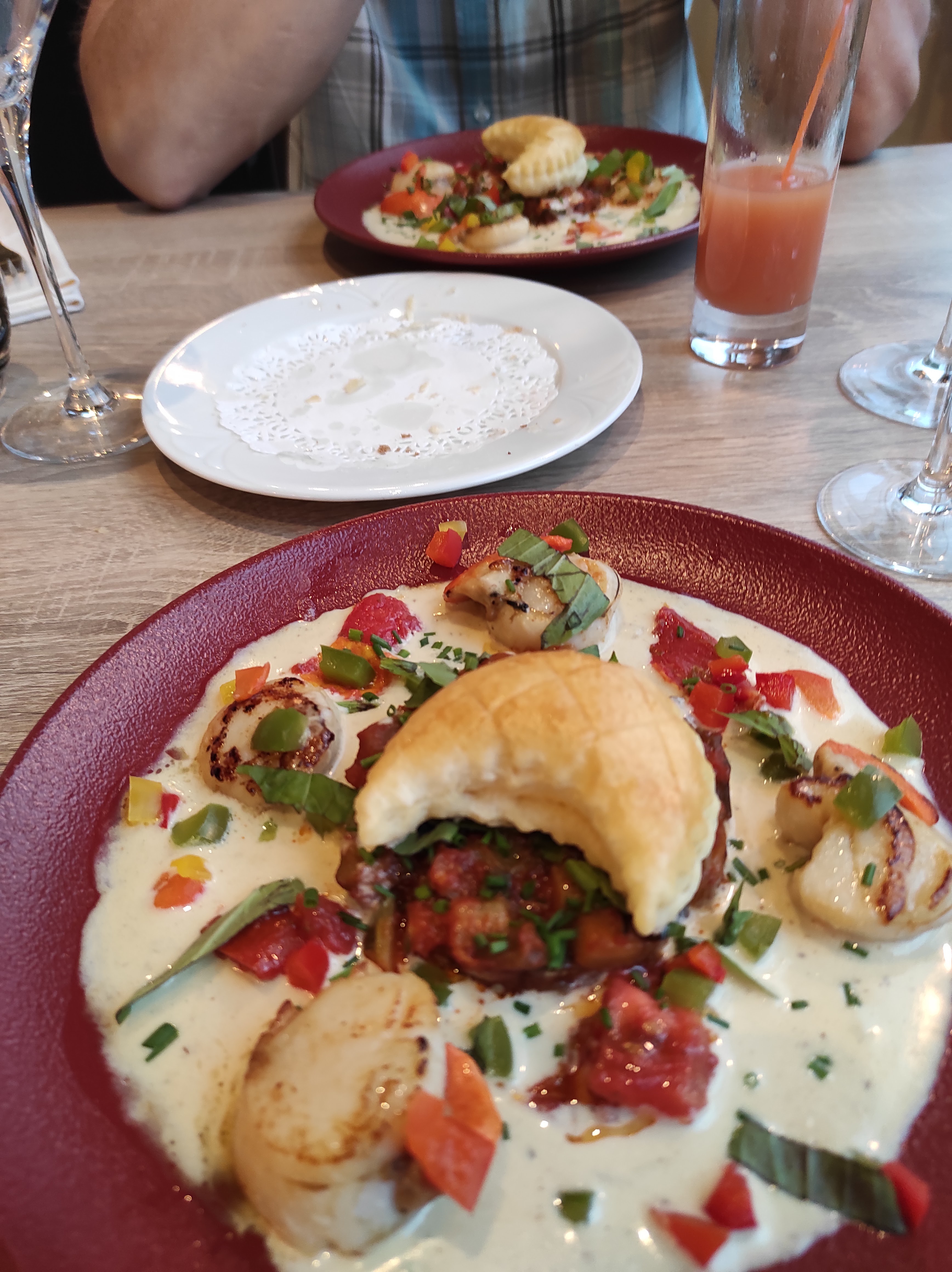 accueil ambiance service et surtout les plats. je recommande les saints Jacques et le magret et en dessert la crème brûlé à l orange. réservation obligatoire surtout si vous souhaitez être côté baie vitrée car peu de tables de 2 ou 4. Y venir au moins une fois . j y retournerai. bravo à toute L’équipe