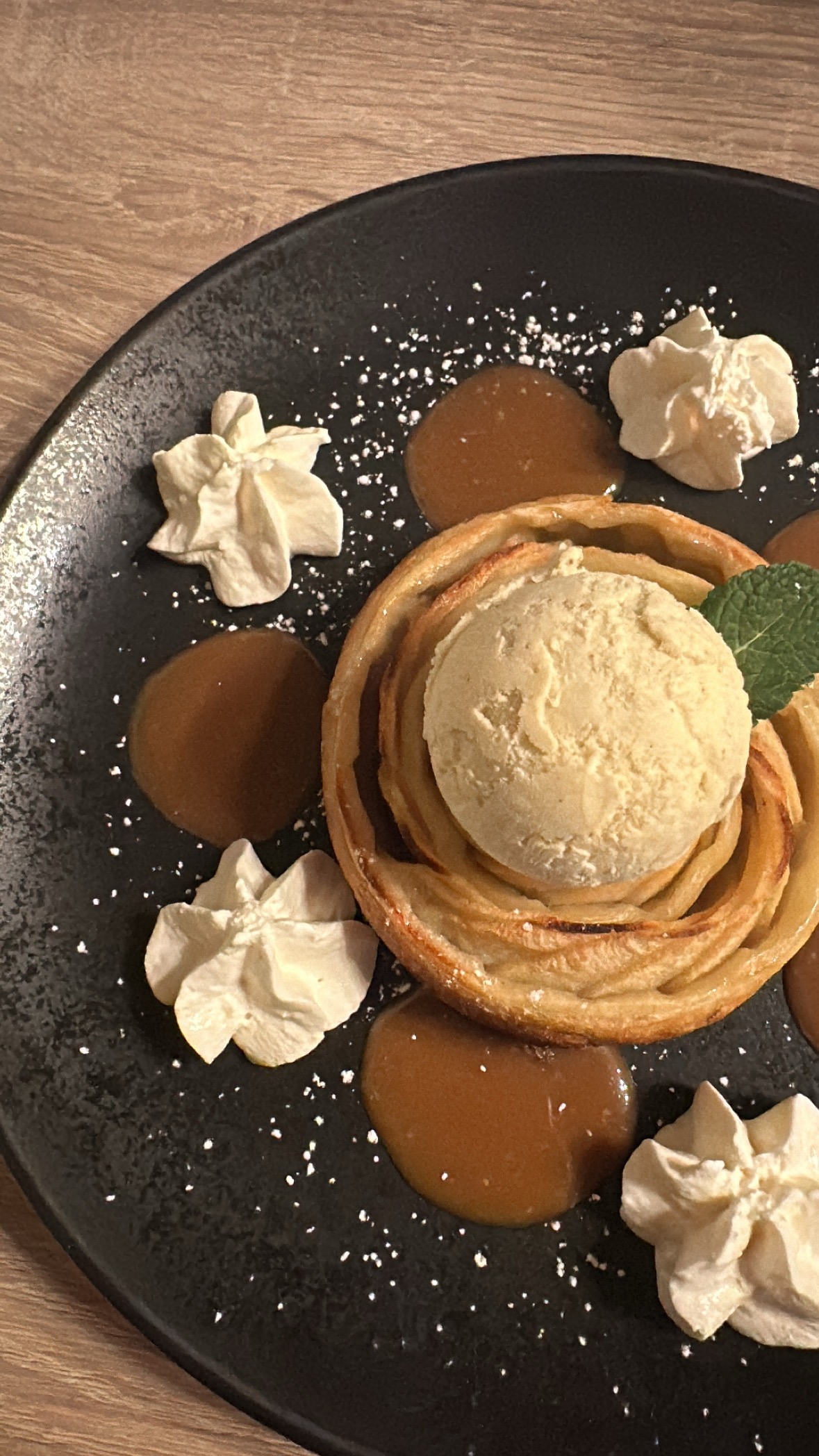 Bon repas. Juste une surcuisson du feuilletage du millefeuilles aux fraises. Une erreur non reconnu par la propriétaire. Aurait donné une meilleure note, si la fin du repas, n'aurait pas été gâché par un égo surdimensionner.