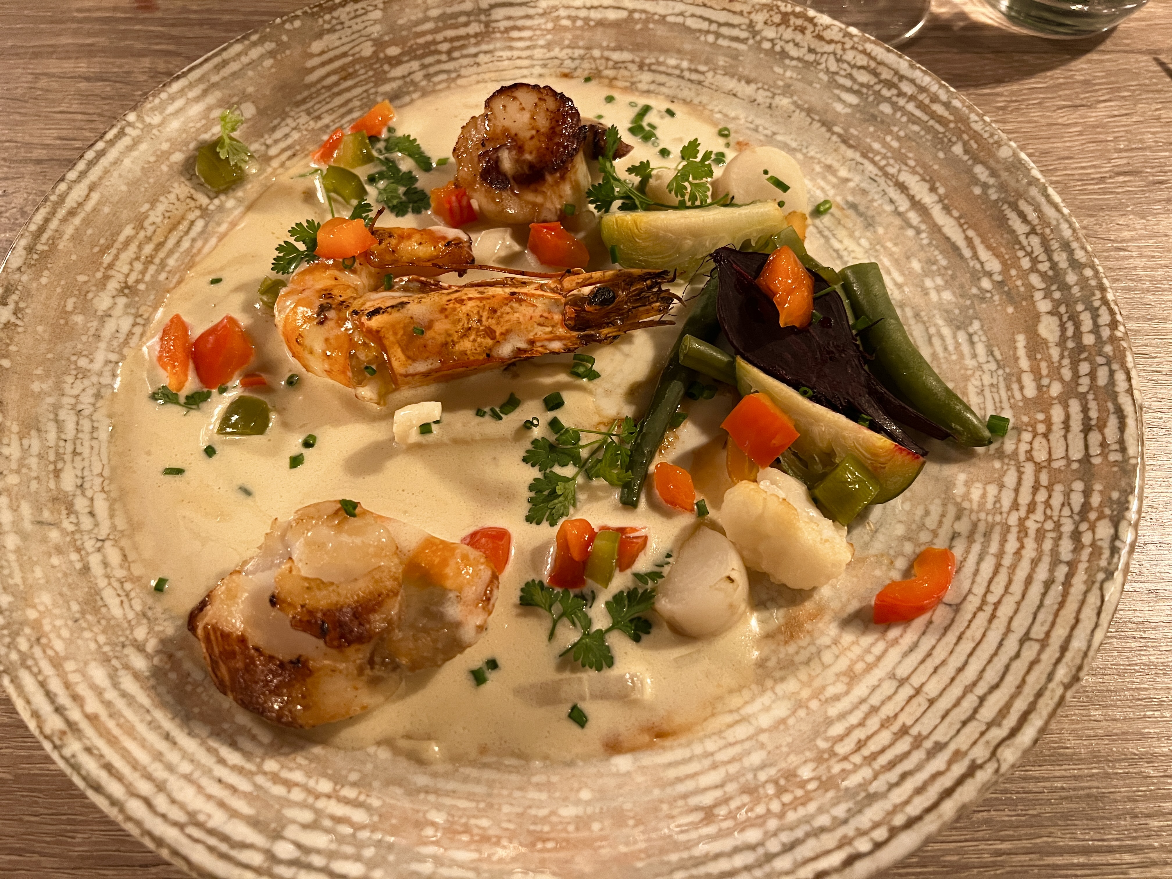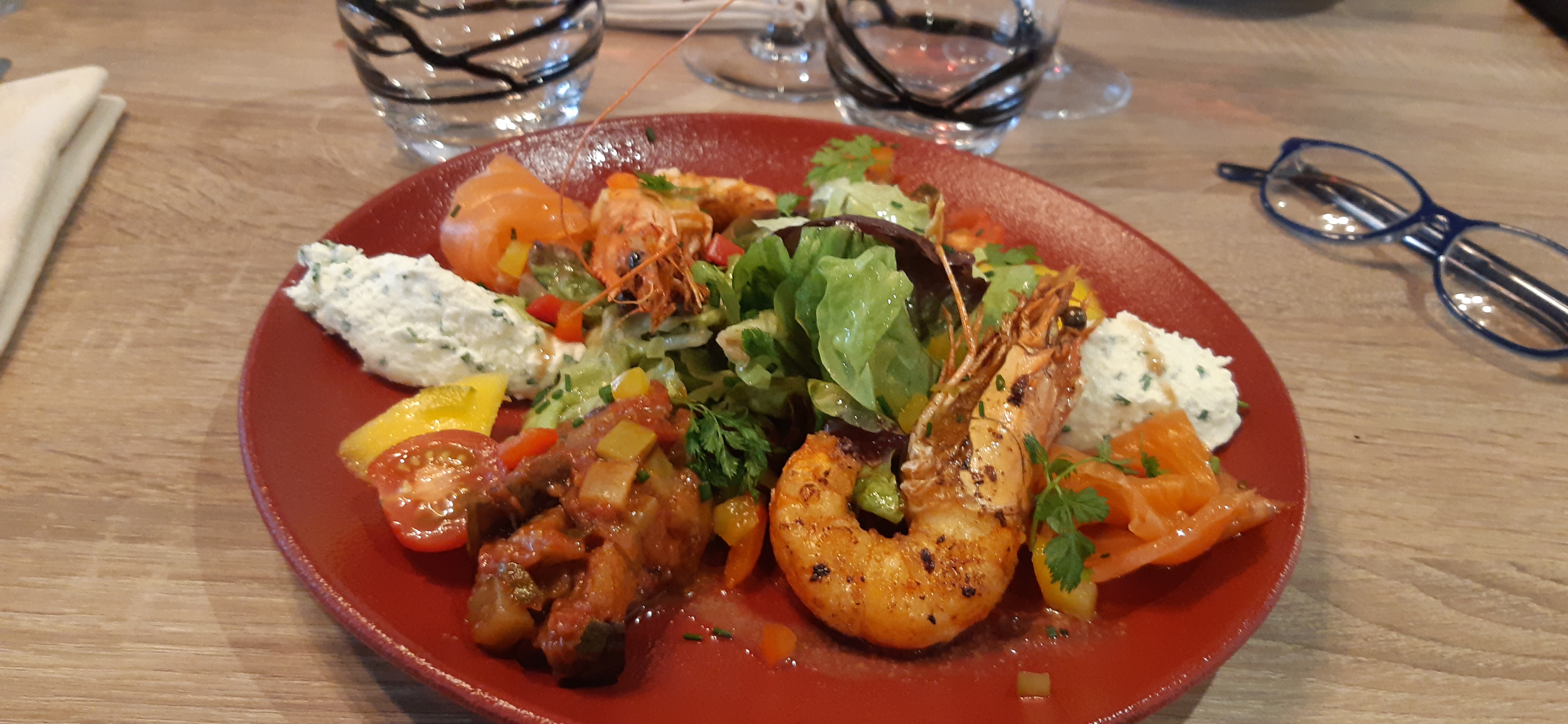 Assiette de la mer avec du poisson qui a un goût de flotte, donc du décongelé au prix du menu, vous m'avez vu une fois et bien c'était la dernière !