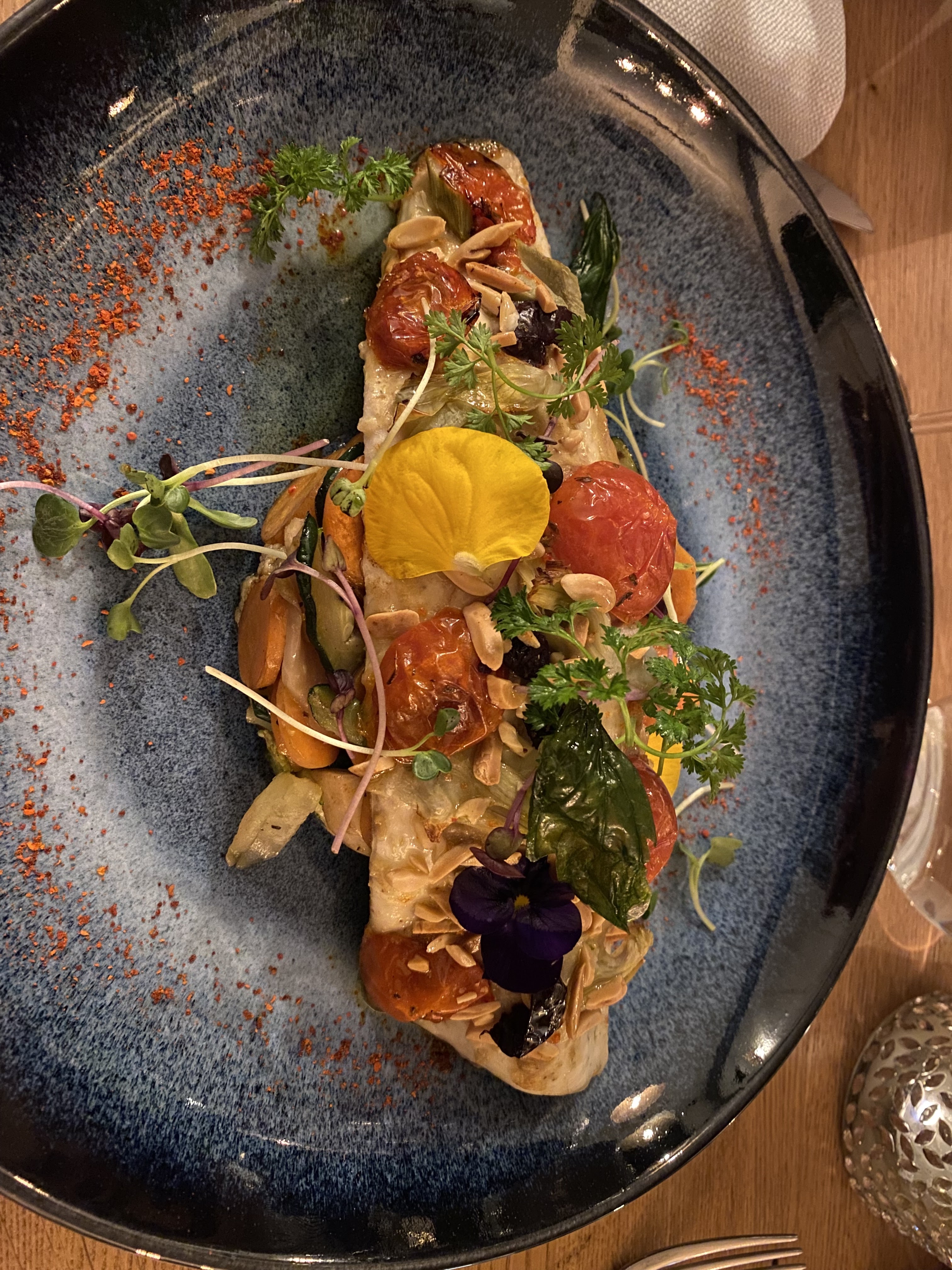 Il faut goûter un poisson 🐟 absolument. La cuisson était parfaite et il était couvert par des petits légumes délicieux. Je recommande 👍
