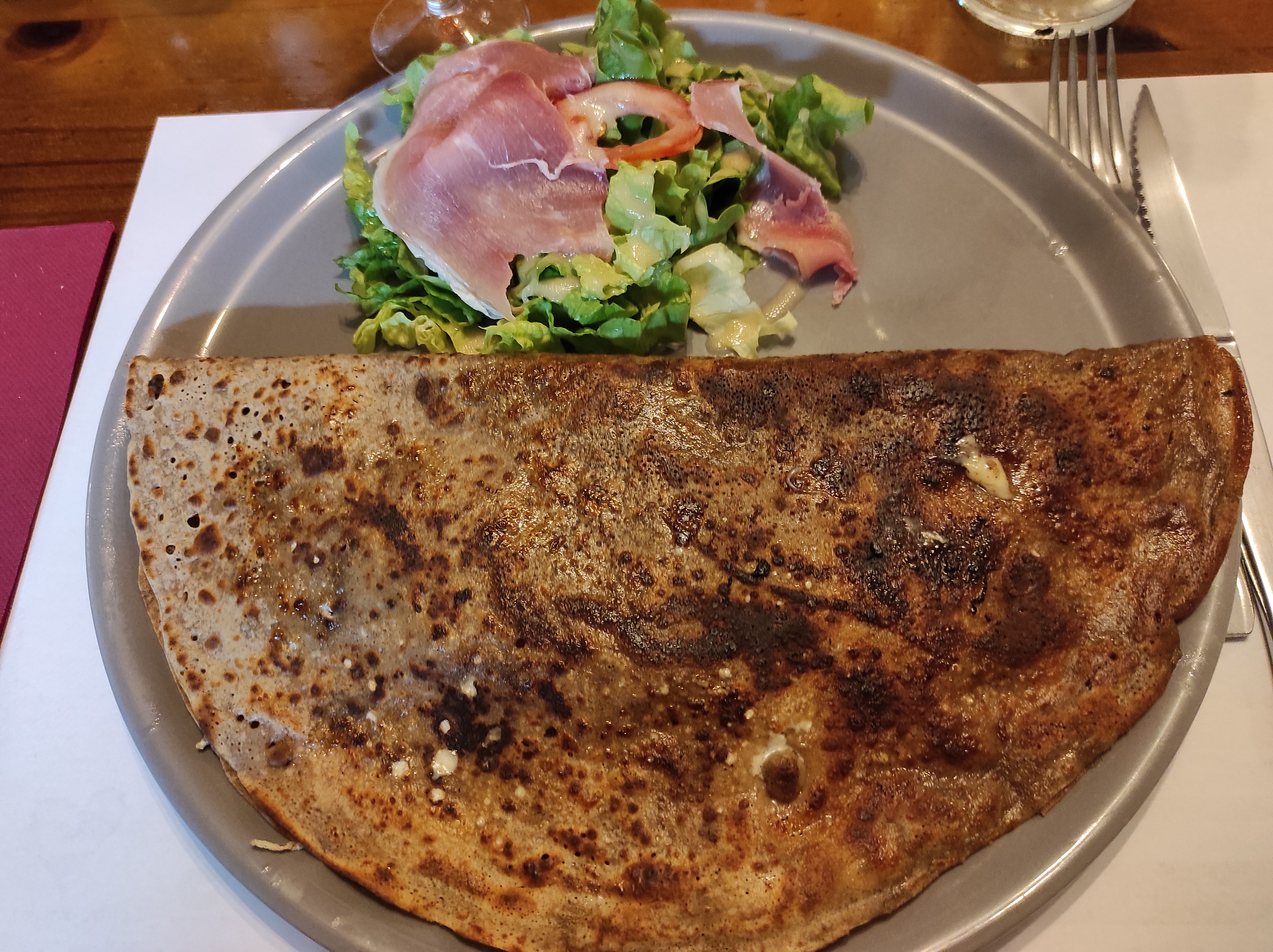 Galettes très bonnes, camembert aussi :) formule à 14€ comprenant entrée, plat, fromage, dessert, c'est vraiment pas cher, service rapide. Seul bémol, le coulis de fraise n'était pas assez sucré, il avait le goût d'eau. Je recommande !