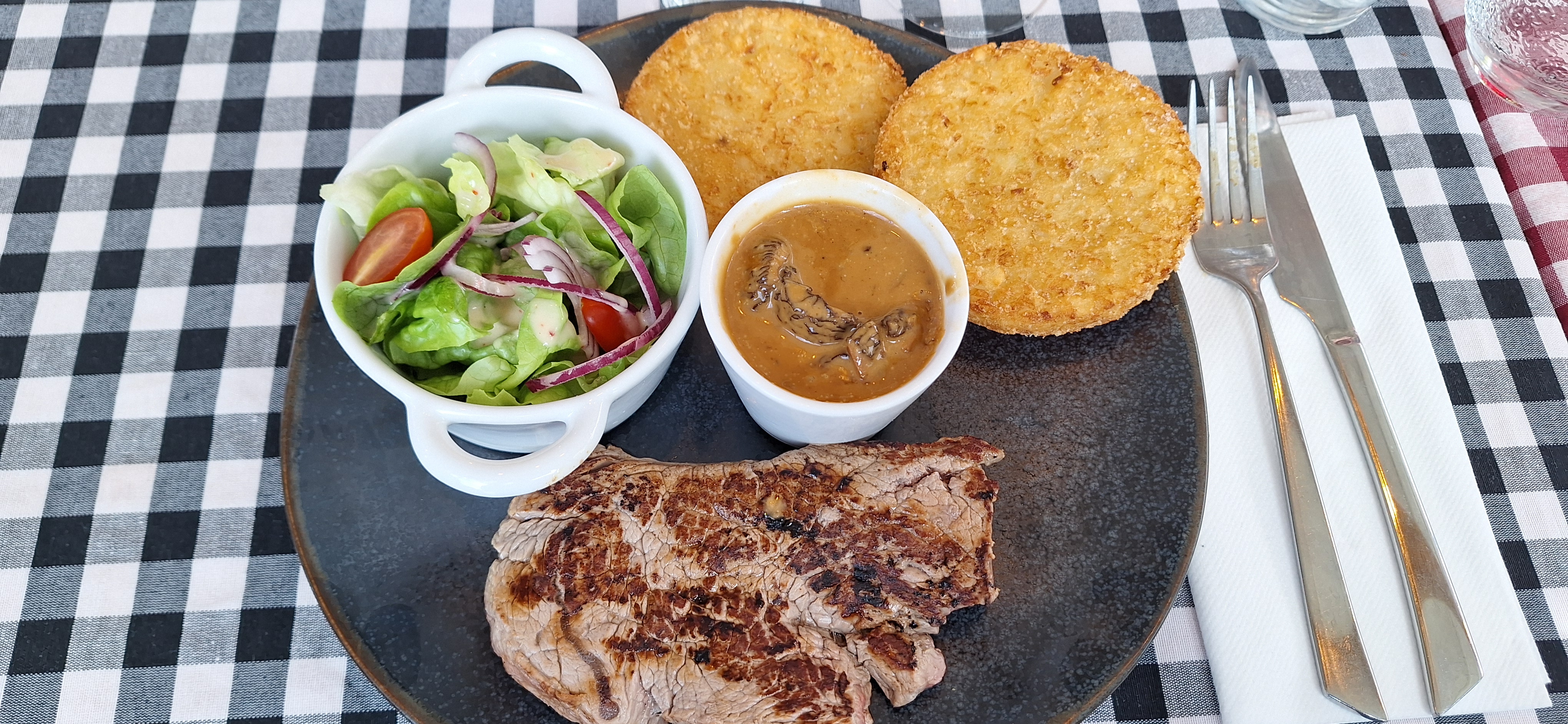 Très bonne cuisine,, juste une petite remarque qui ne change pas la qualité de la prestation sur la carte est noté beignets de roestis et que l'on de serre des galettes de pommes de terre mais qui était très bonne.