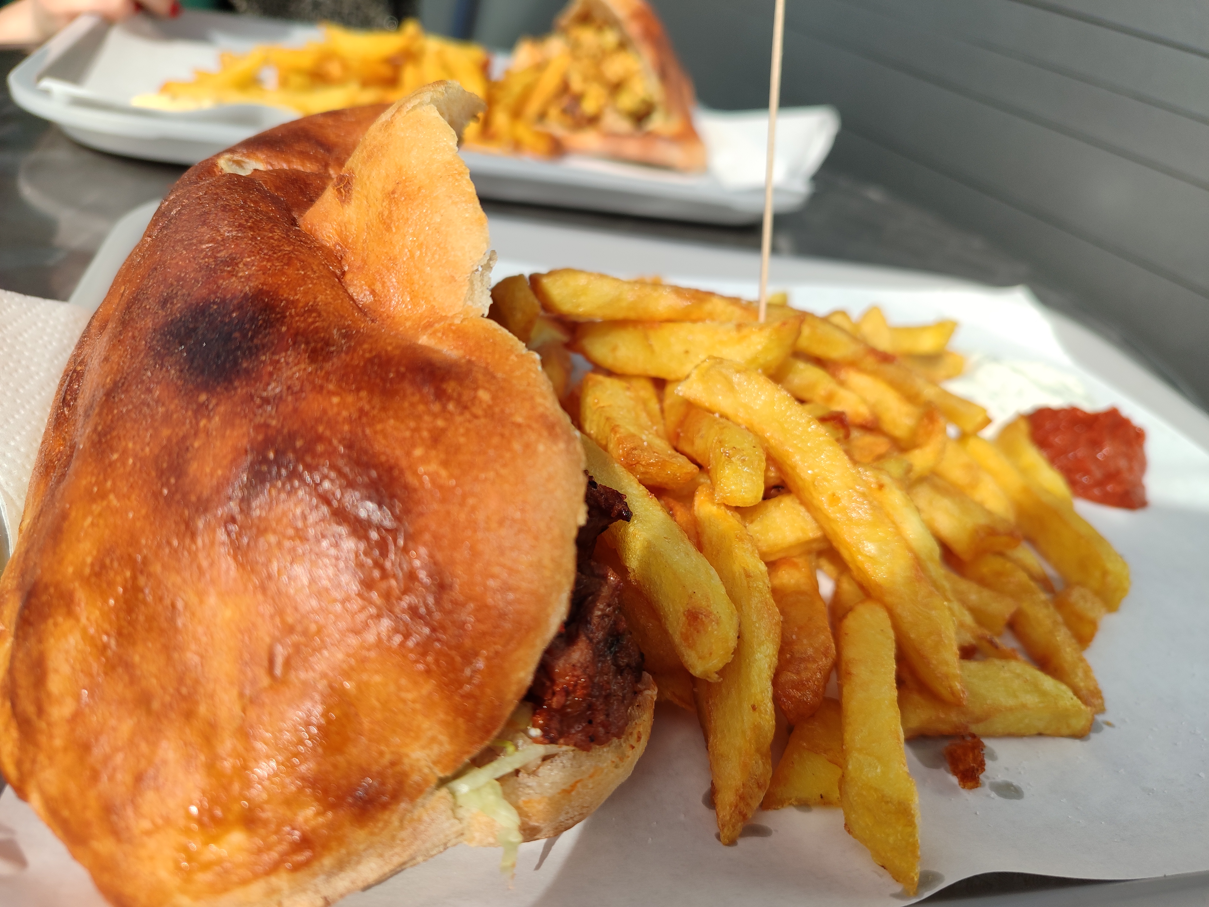 Pain et viande maison, frites fraîches. C'est bon et le prix est très correct. En un mot : foncez !