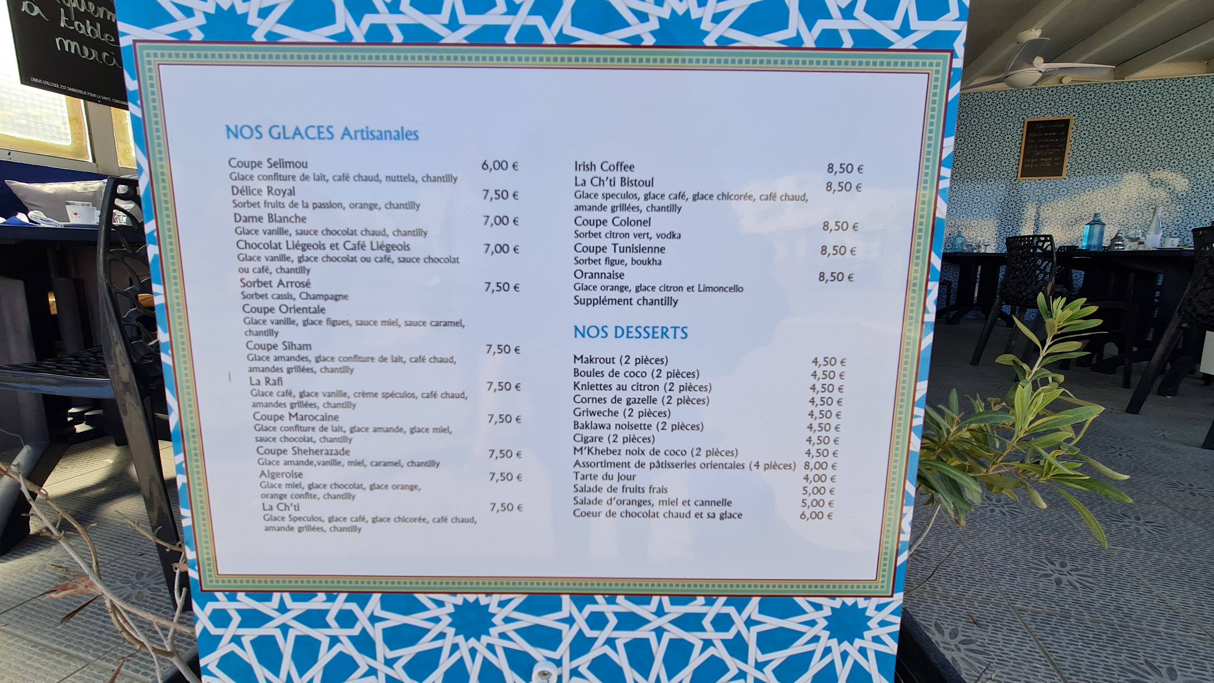 Client occasionnel s'est un restaurant ou on est toujours très bien accueillie par tout le personnel, cotés cuisine les différents couscous ainsi que les tajines sont vraiment de qualités très coûteux et copieux, et riche en viandes. Leurs glaces artisanales sont dignes d'un maitre glacier ( dommage pour la chantilly en bombe ) et leurs pâtisserie orientales faites maison le jour même sont tout simplement meilleures qu'au pays, ne pas oublier de prendre un thé à la menthe pour la digestion il est juste parfait. S est un restaurant à ne pas manquer.