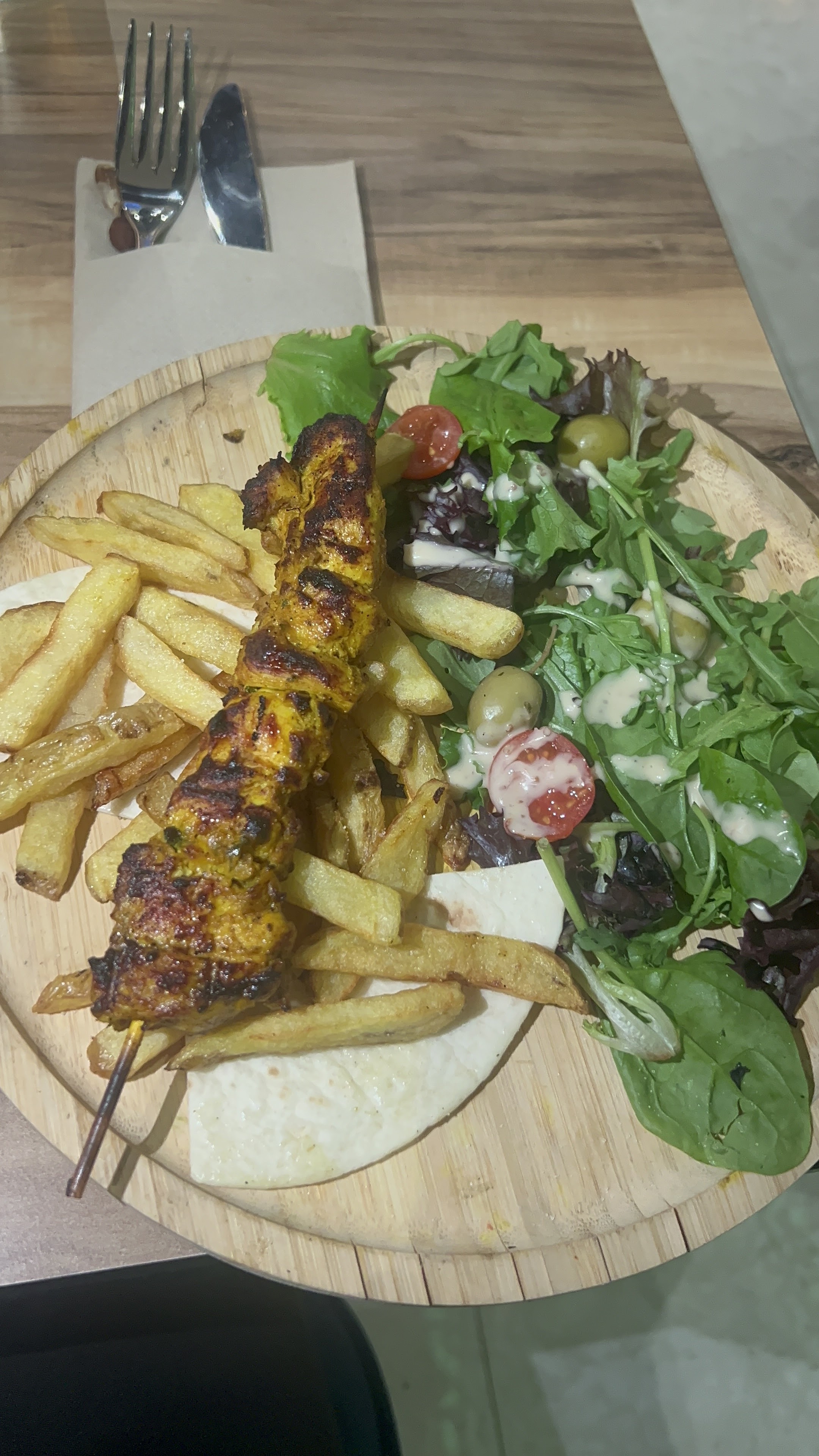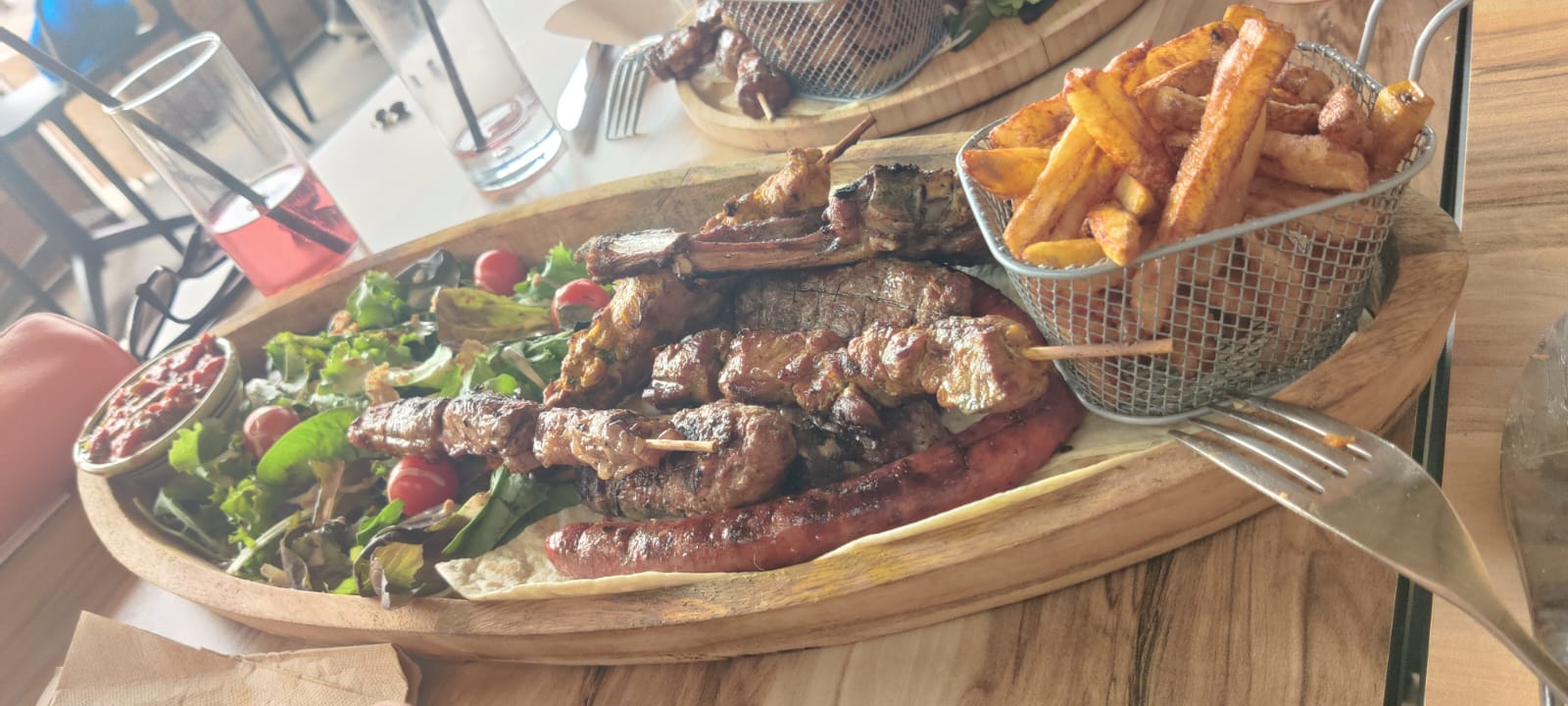 On s’est rendu au hasard avec mon neveu , C’était le plus proche , et franchement c’était excellent, les brochettes très goûteuse, et les petite pâtisseries du café gourmand. Un Régal !!