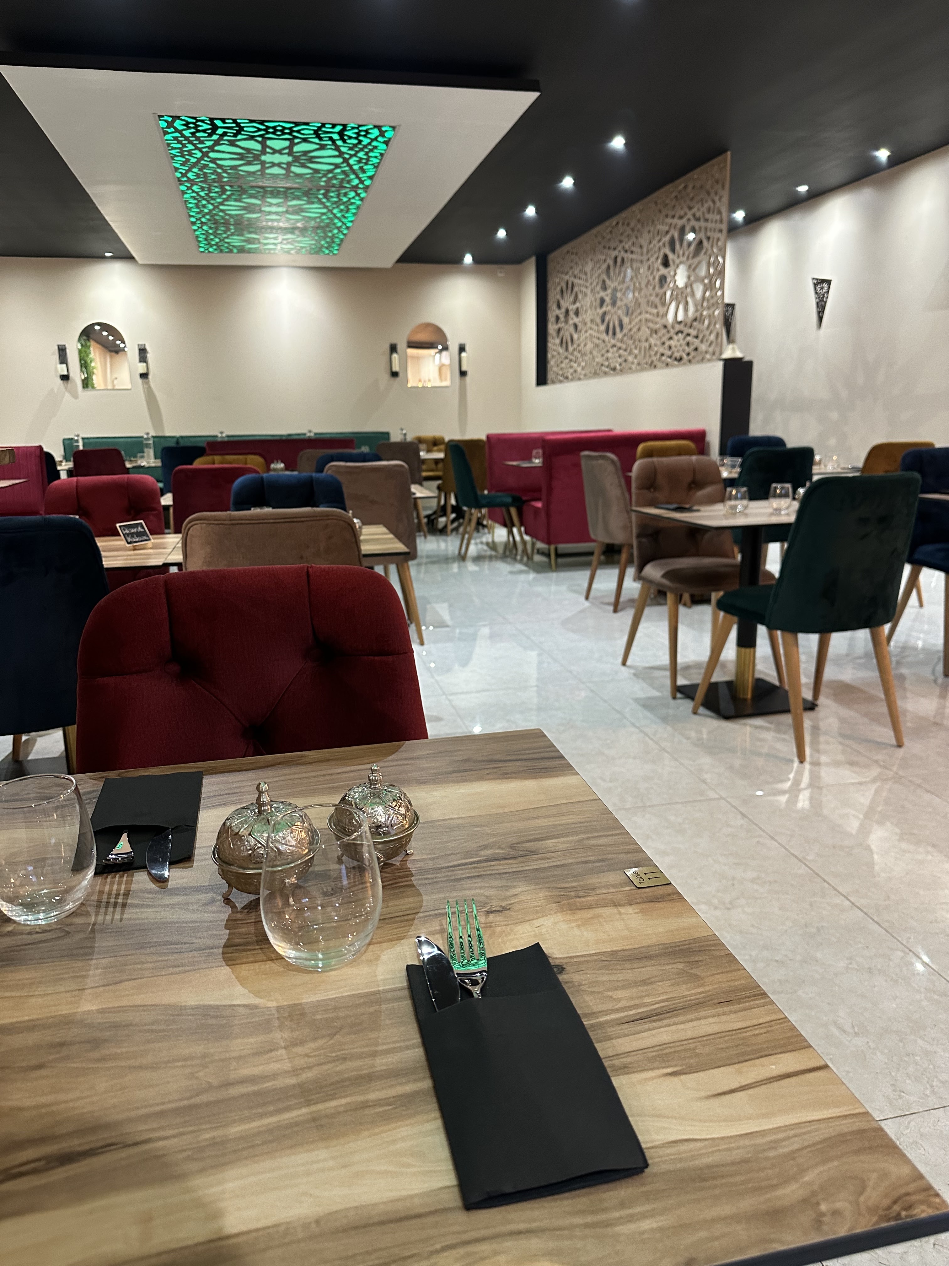 Très bonne adresse sur Nîmes, exactement le genre de restaurant qu’il manquait (belle déco, bonne assise, belle vaisselle, tout est propre). Nous étions 2 adultes (avec une enfant de 2ans et demi à qui une chaise haute à tout de suite été proposé ) et nous avons été très bien accueilli et servi tout au long du repas (pour un iftar avec buffet à volonté). Les différents plats proposés répondent au goût et au envie de chacun, la qualité des produits est à souligner (tout est frais ça se sens). Merci également à l’équipe pour la petite attention pour ma fille (lui faire croire que c’est son anniversaire avec chanson, gâteau et bougie), le genre d’attention qui fait la différence. Nous reviendrons in sha Allah pour goûter votre carte servit à l’année qui donne tout aussi envie. Souhaitant réussite à ce nouveau restaurant qui le mérite, qu’Allah vous facilite.