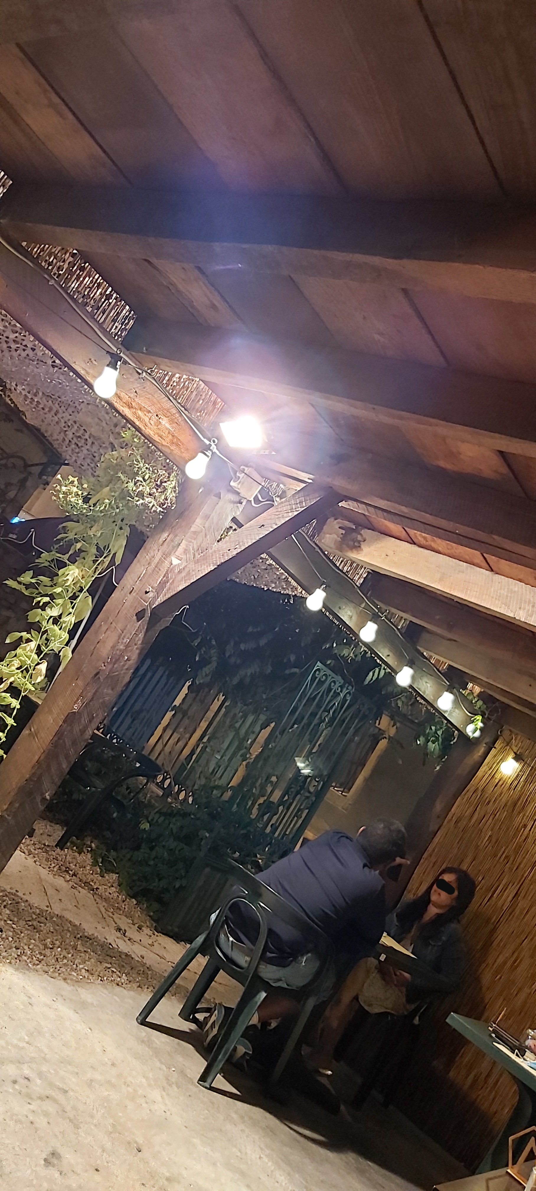 La terrasse était magnifique avec les feuilles au-dessus. Des gens sympathiques et des burgers délicieux !