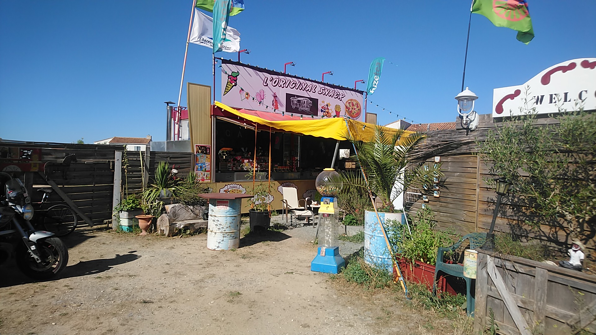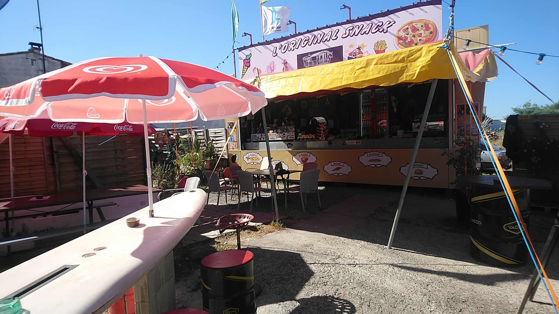 L'original Snack est une super endroit où venir manger... Pendant que Franky nous régale de sa bonne humeur en attendant nos vrais plats on peut se poser sur sa terrasse atypique. Cet endroit nous a été recommandé par un local. C'est un super endroit où déguster les meilleures frites fraîches de l'île de ré et pas que... Les pommes de terre sont issues de l'agriculture de l'île ! Tout est fait maison et les produits sont locaux : de la région ou français. Les burgers sont généreux. Très bons rapport qualité prix. Merci Franky ! Les + : les goodies en vente sur place notamment des mugs clown et des toilettes.