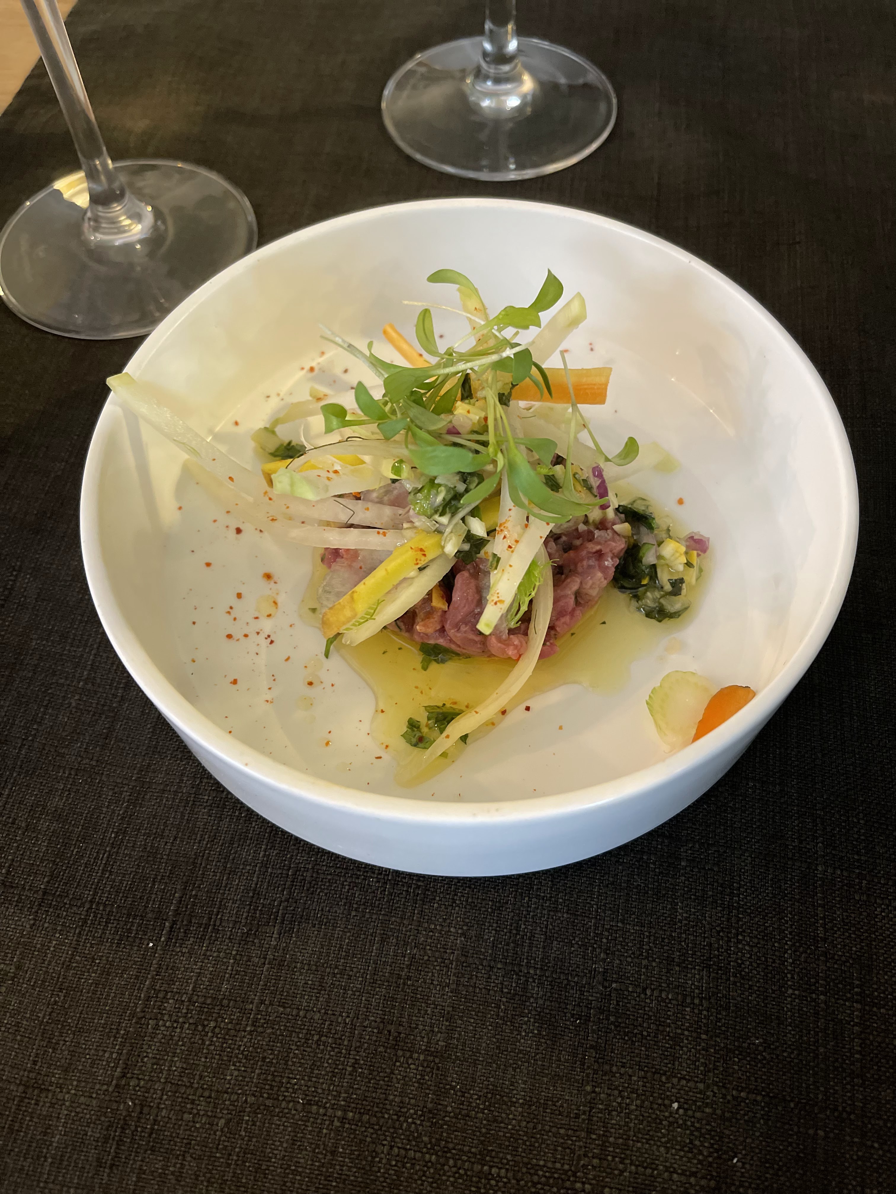 Expérience intime vraiment incroyable. Le serveur a suggéré un excellent vin. C'était un menu fixe avec des options. et très savoureux. cet endroit est génial.