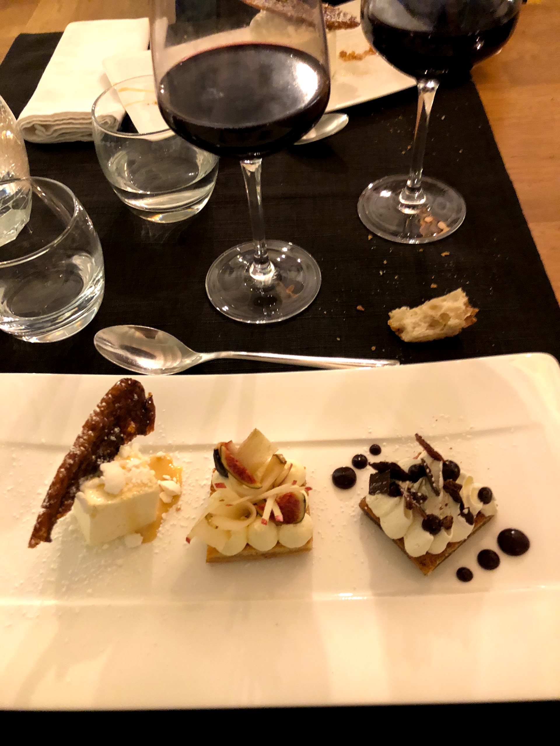 J'ai eu un carpaccio de poisson du moment, retour de chasse (plat principal) et dessert chocolat noir. Ils étaient délicieux. J'ai été surpris que le chef gère lui-même la cuisine pour servir 7 tables par soir.
